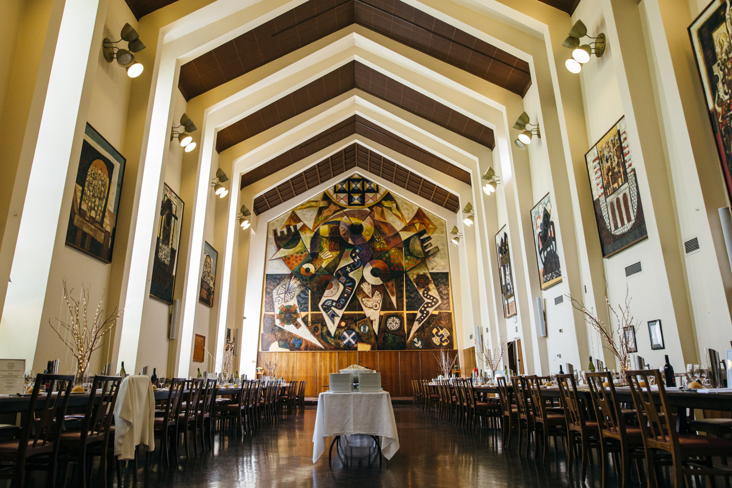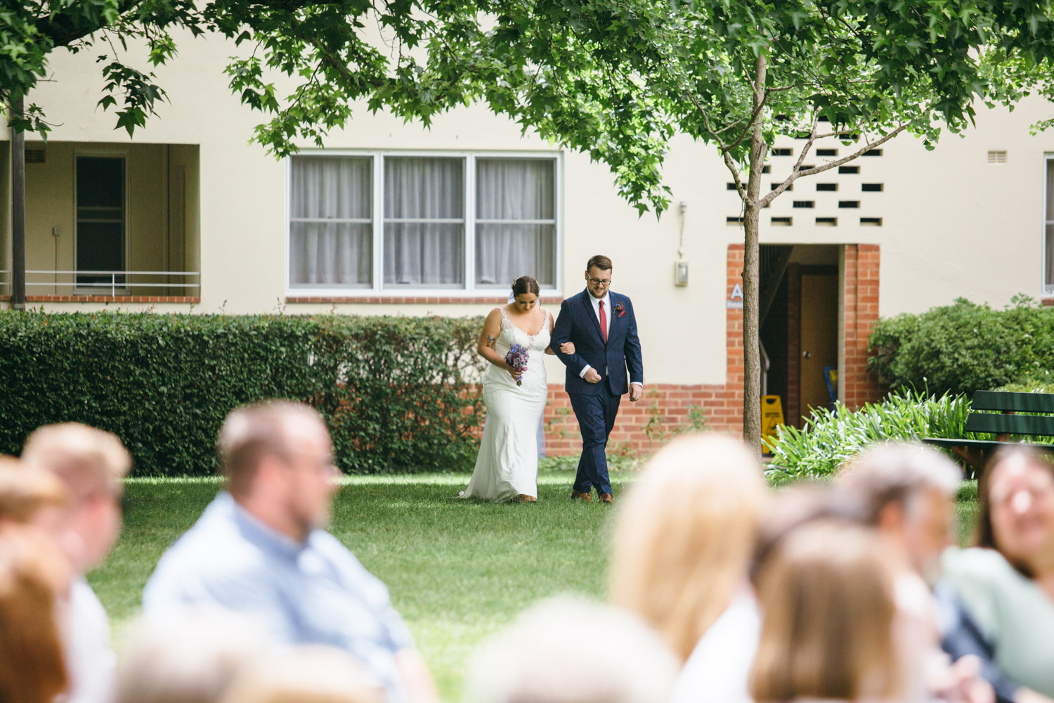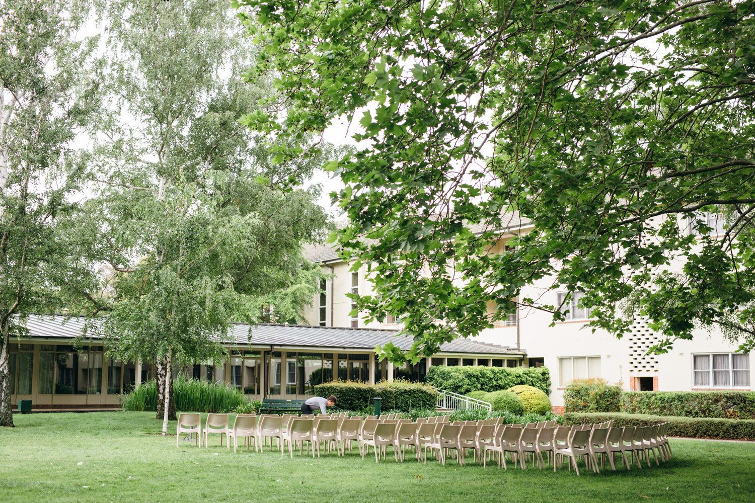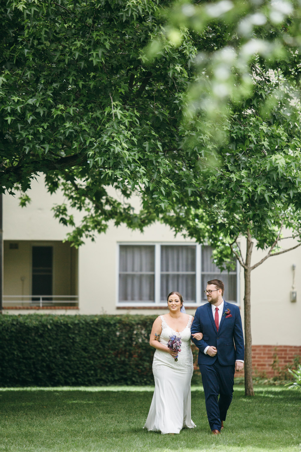 I was in the town of Lithgow to the west of the Blue Mountains, when Skye gave me a call. Skye and Matt had planned their wedding in Canberra at the Australian National University. University House, ANU, is significant to Skye because her parents had a long history with academia, and ANU was a large part of their lives for several years. Skye and Matt’s wedding would be held in buildings with prominent architectural brilliance, and so challenged me to include the architecture of the buildings in their wedding photos.