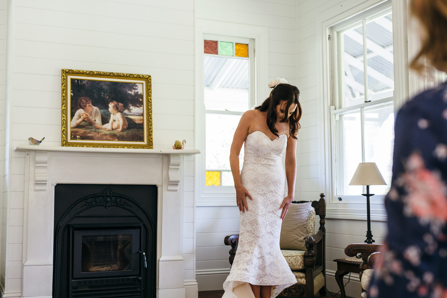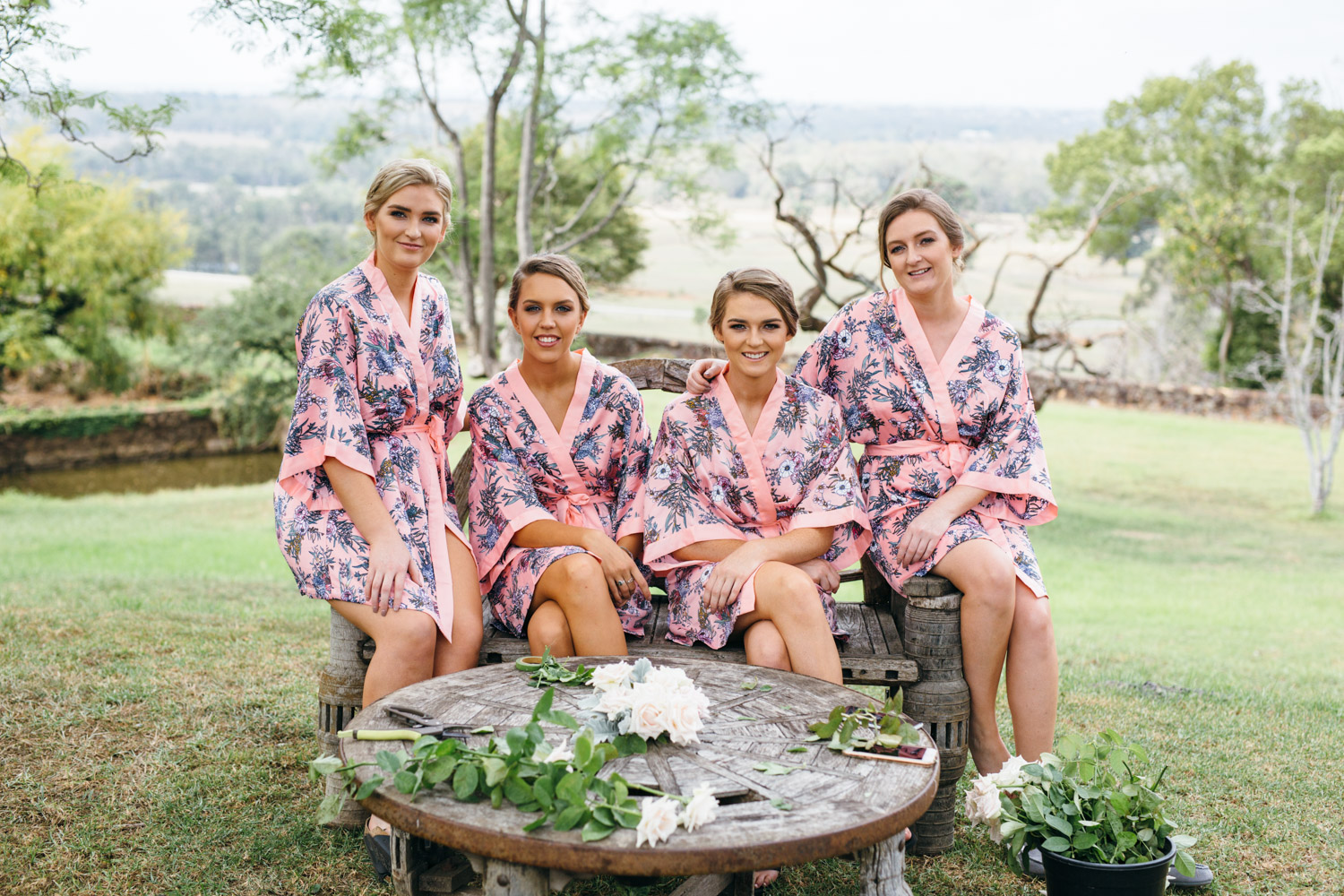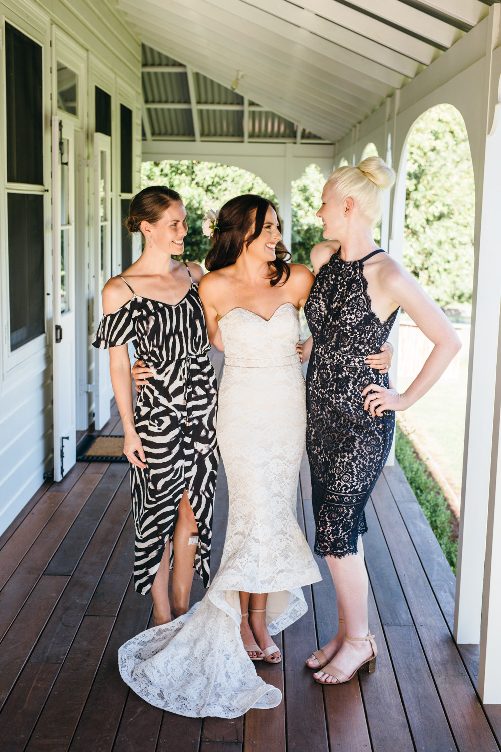 I left Hollydene at around 11 am, to go photograph Steph’s bride preparation. I drove over to Steph and Kurt’s property, around 15 minutes down the road in Jerrys Plains. Steph was getting ready in their lovely weatherboard cottage with their daughters and bridesmaids. We captured a few portraits with the girls before heading back for their wedding ceremony at Hollydene Estate.