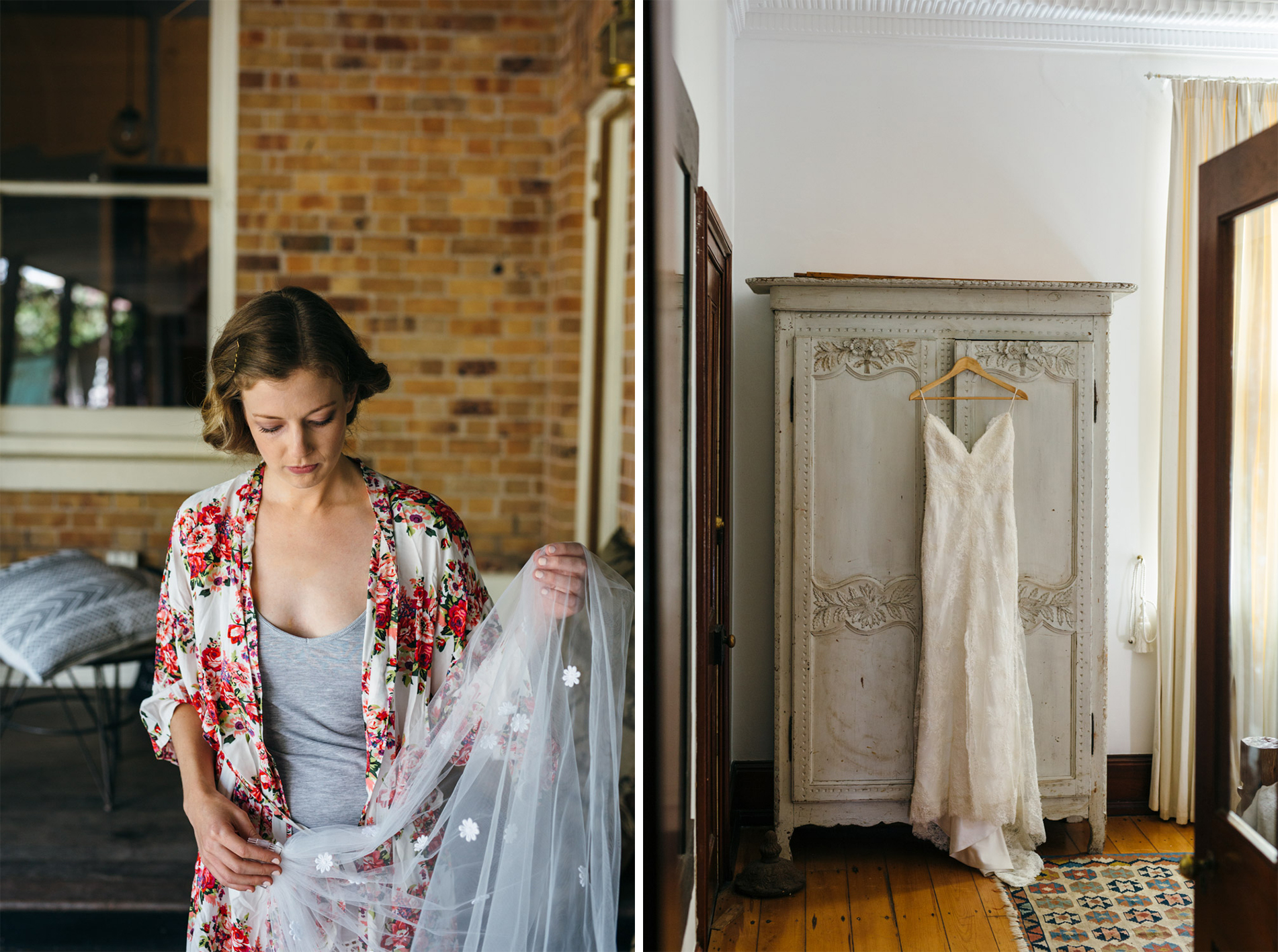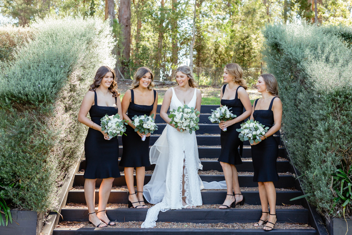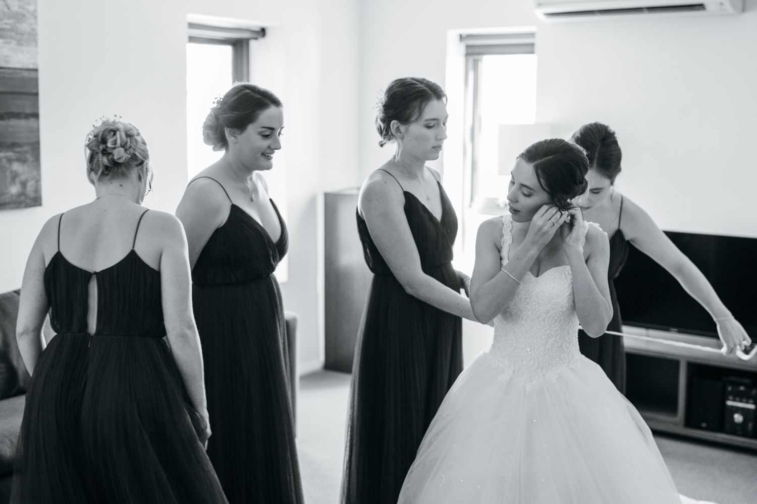 I left Hollydene at around 11 am, to go photograph Steph’s bride preparation. I drove over to Steph and Kurt’s property, around 15 minutes down the road in Jerrys Plains. Steph was getting ready in their lovely weatherboard cottage with their daughters and bridesmaids. We captured a few portraits with the girls before heading back for their wedding ceremony at Hollydene Estate.