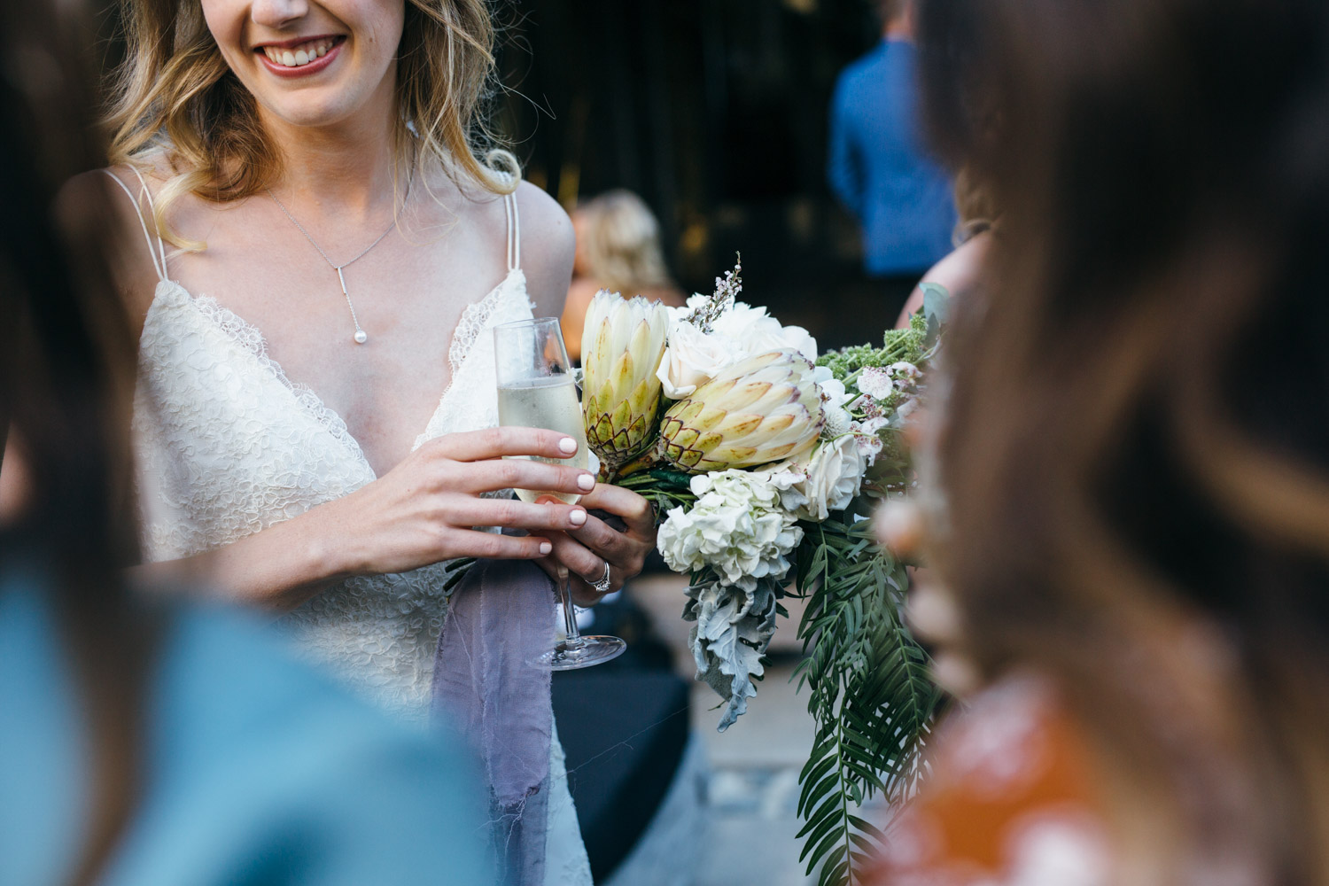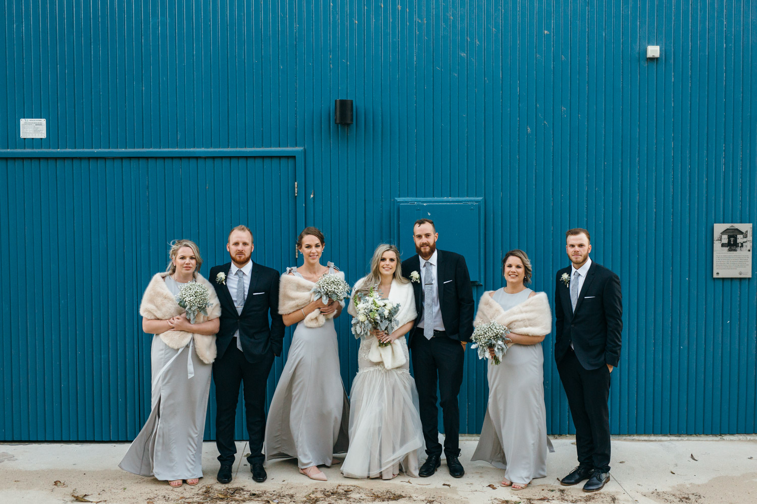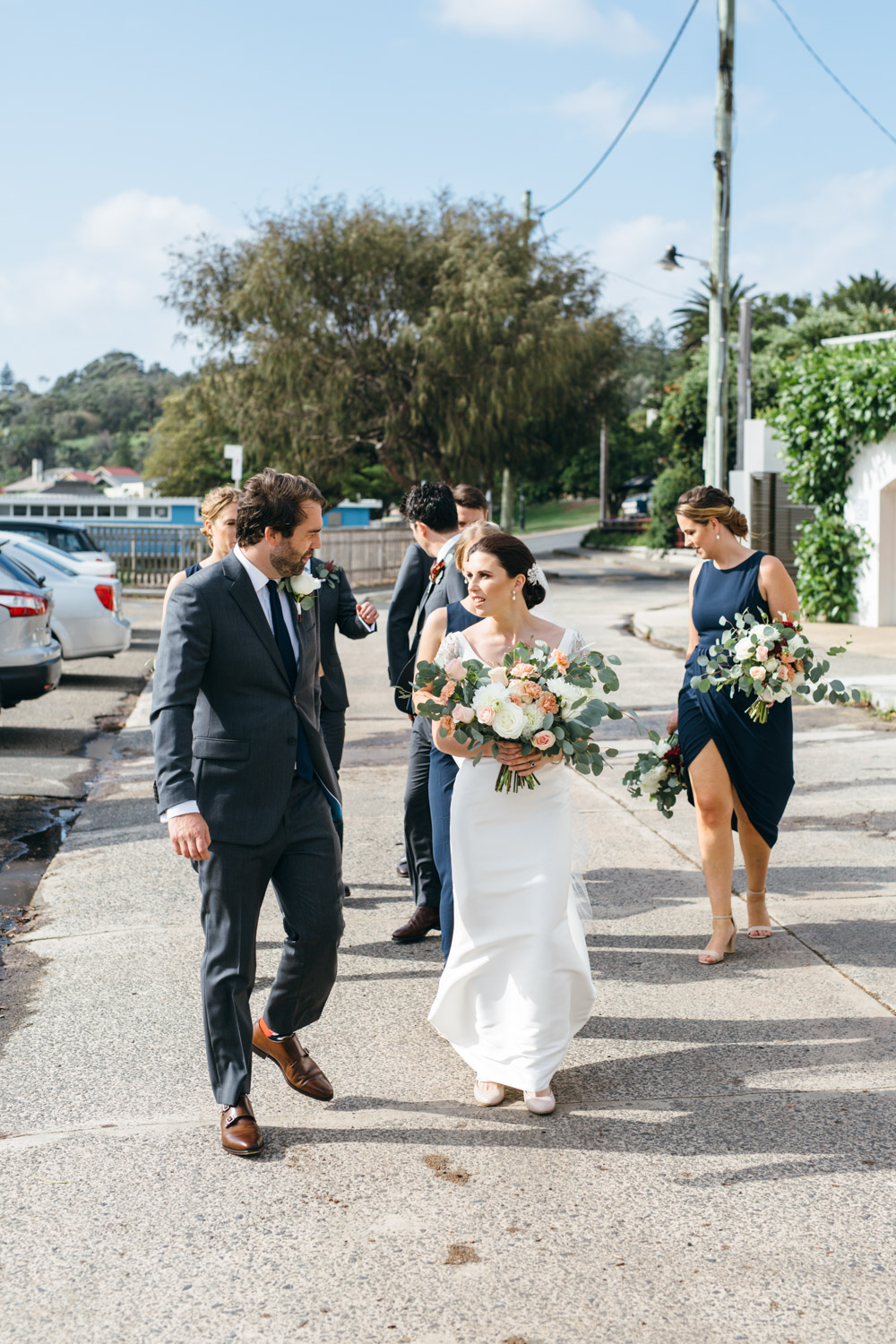 After the ceremony, we walked along Marine Parade for a few portraits with Casee and Harley, and also ventured west of the Ferry Wharf to the Watsons Bay Baths and Gibsons Beach (there is a blue corrugated shed that creates a cool backdrop and also shelters from the wind right near the baths). The blue corrugated backdrop gives an alternative look to wedding photographs, which I think is nice. Variety is key! Check out this Dunbar House wedding featuring some additional shots of the same blue corrugated shed.