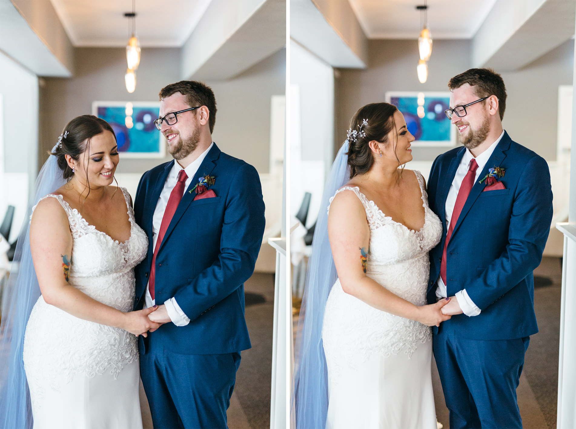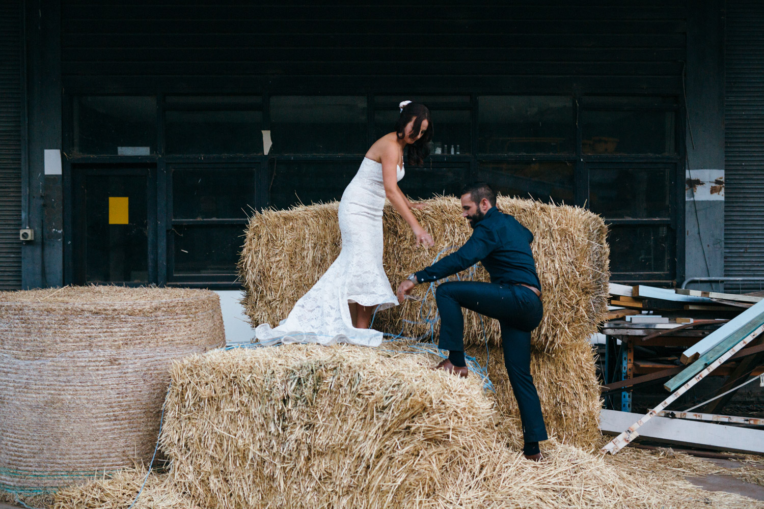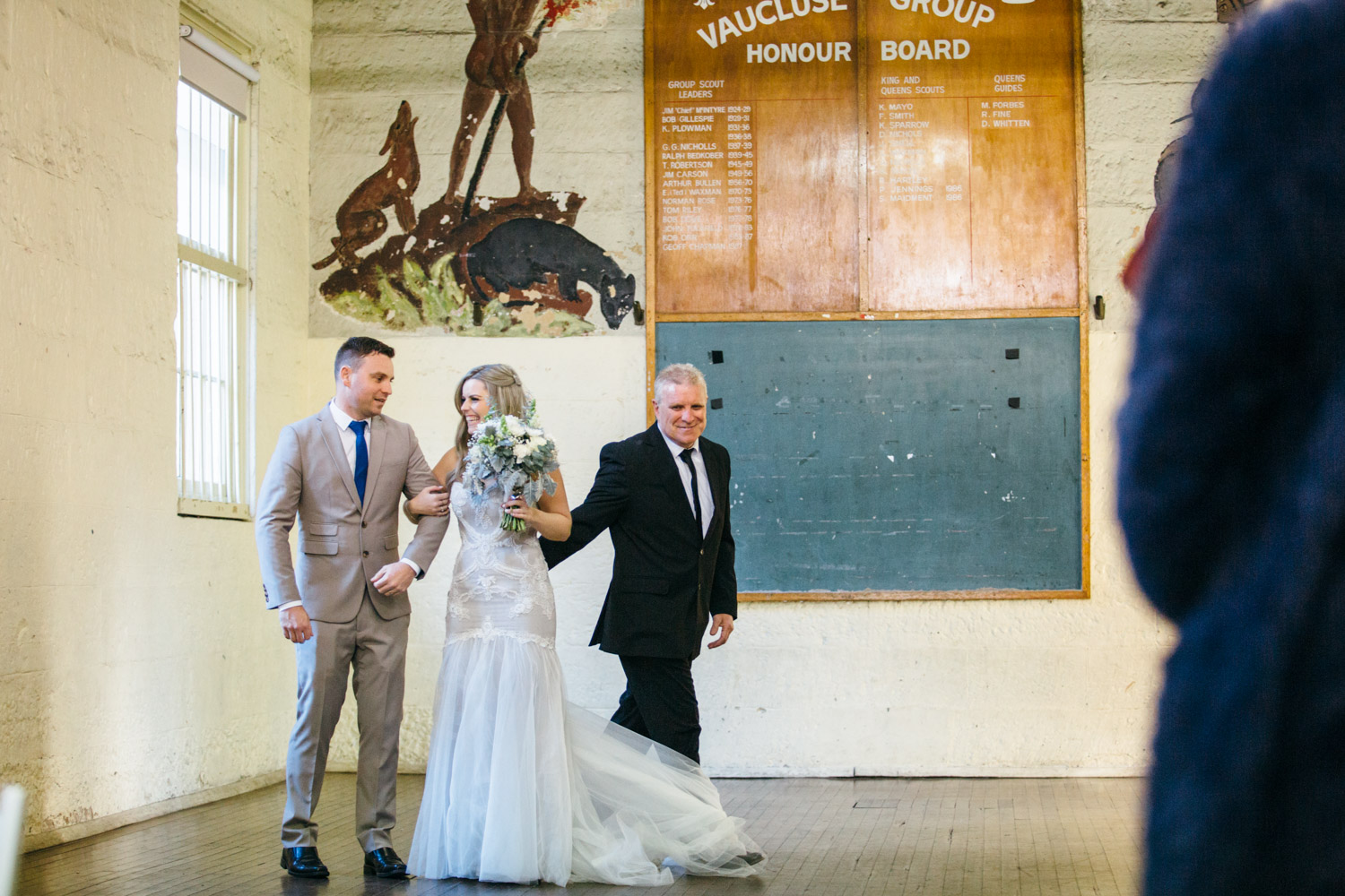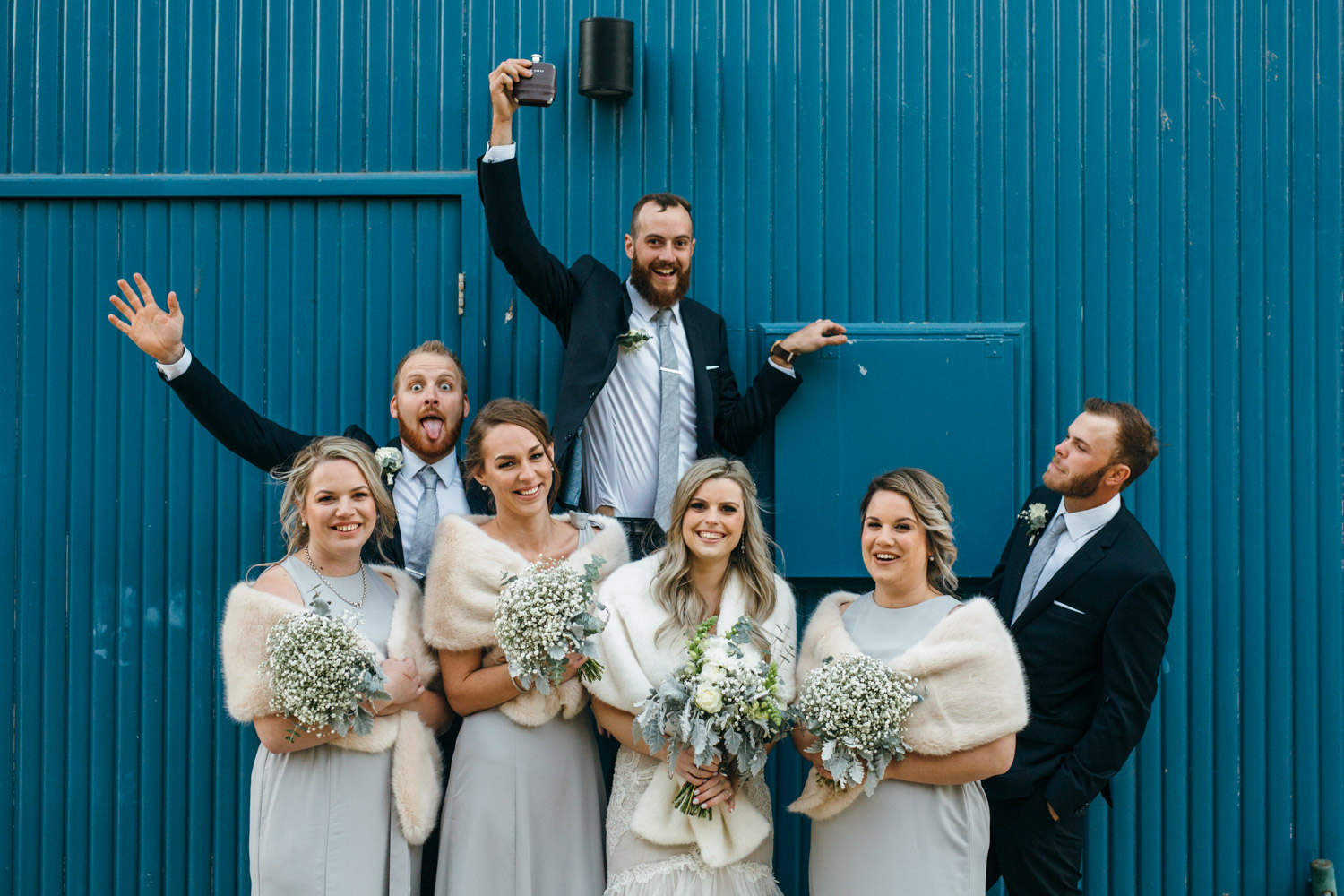 After the ceremony, we walked along Marine Parade for a few portraits with Casee and Harley, and also ventured west of the Ferry Wharf to the Watsons Bay Baths and Gibsons Beach (there is a blue corrugated shed that creates a cool backdrop and also shelters from the wind right near the baths). The blue corrugated backdrop gives an alternative look to wedding photographs, which I think is nice. Variety is key! Check out this Dunbar House wedding featuring some additional shots of the same blue corrugated shed.