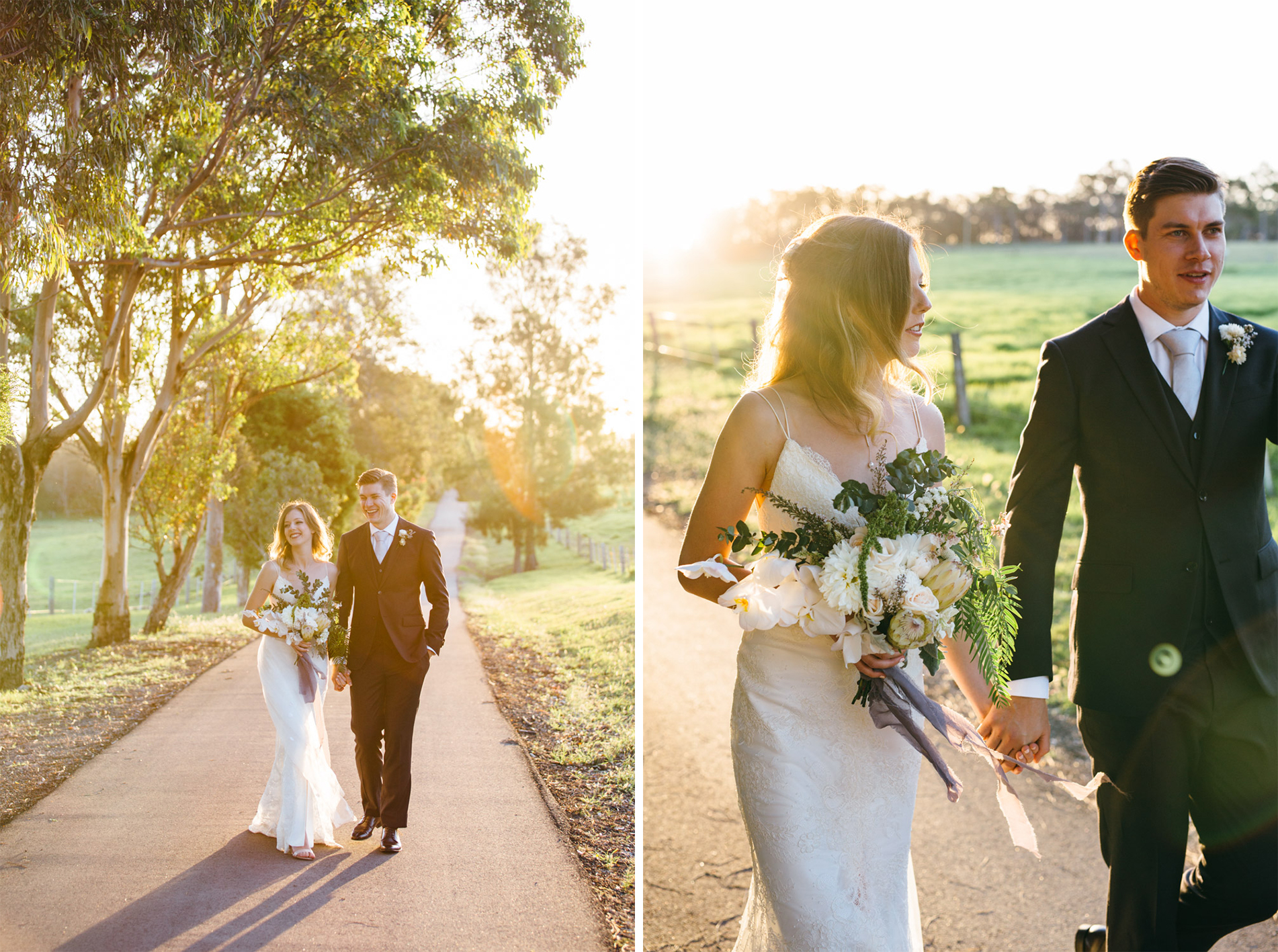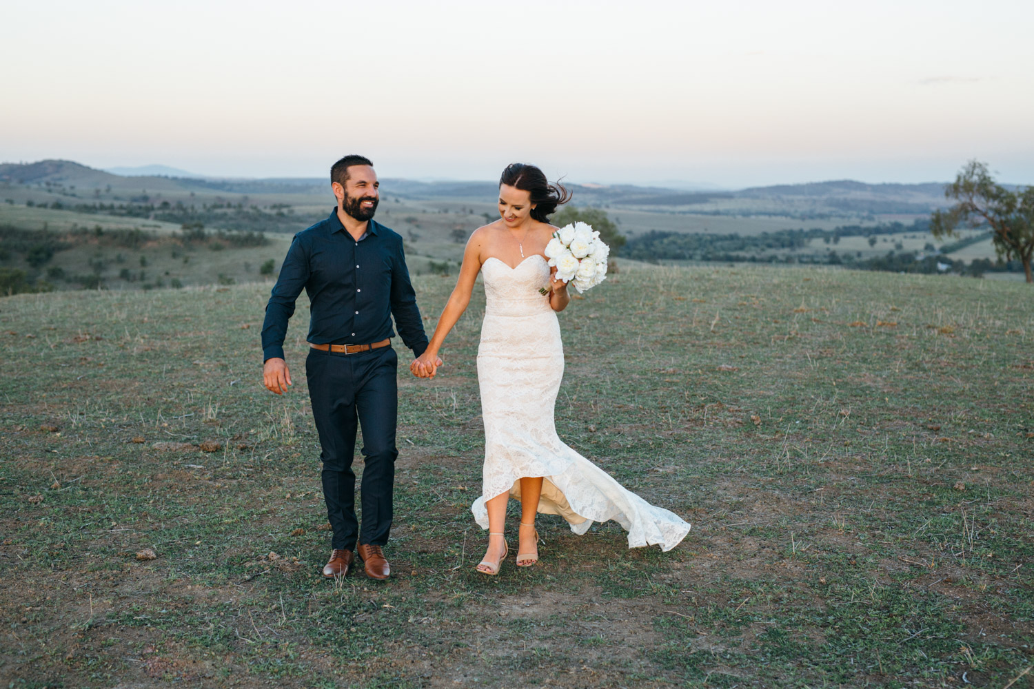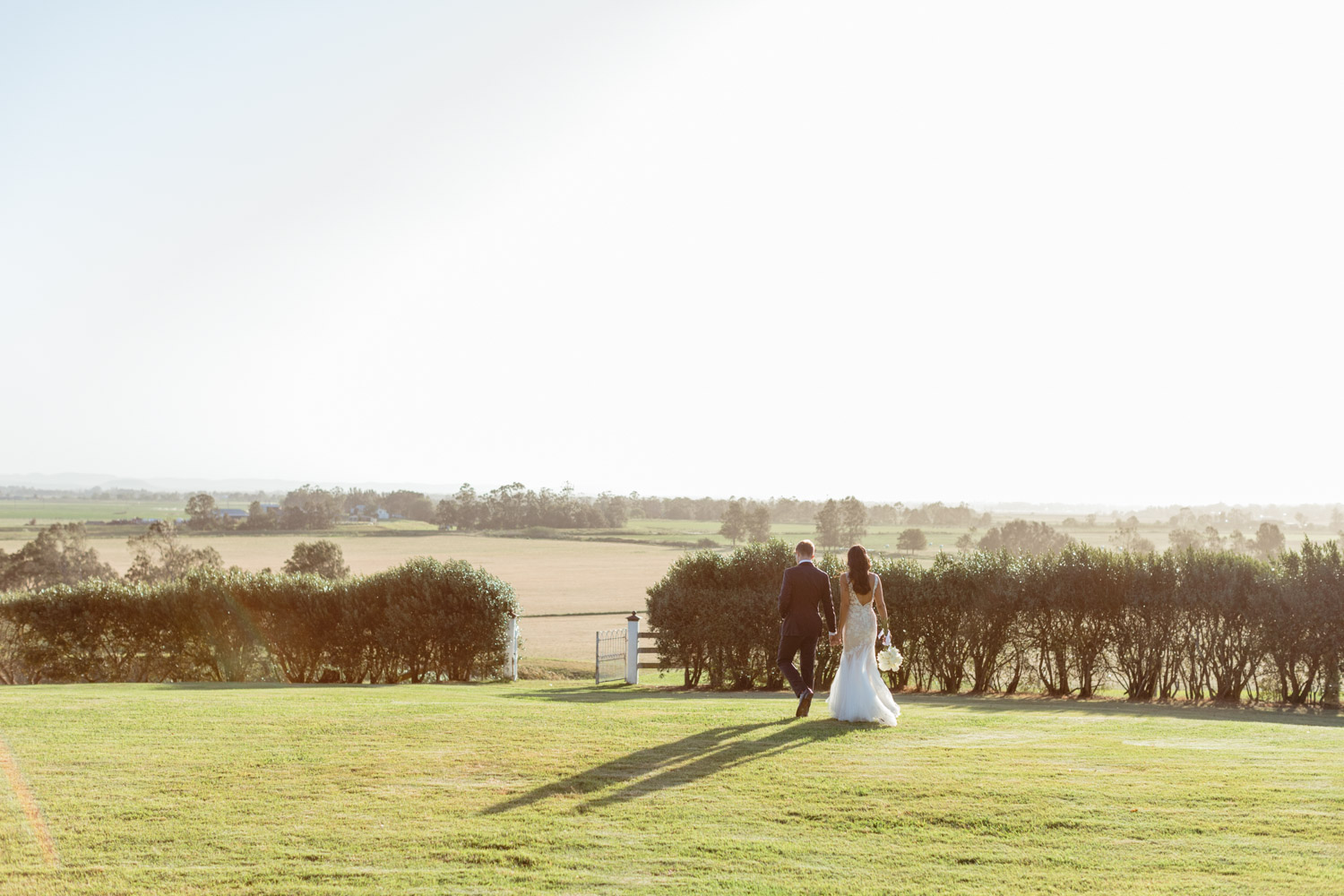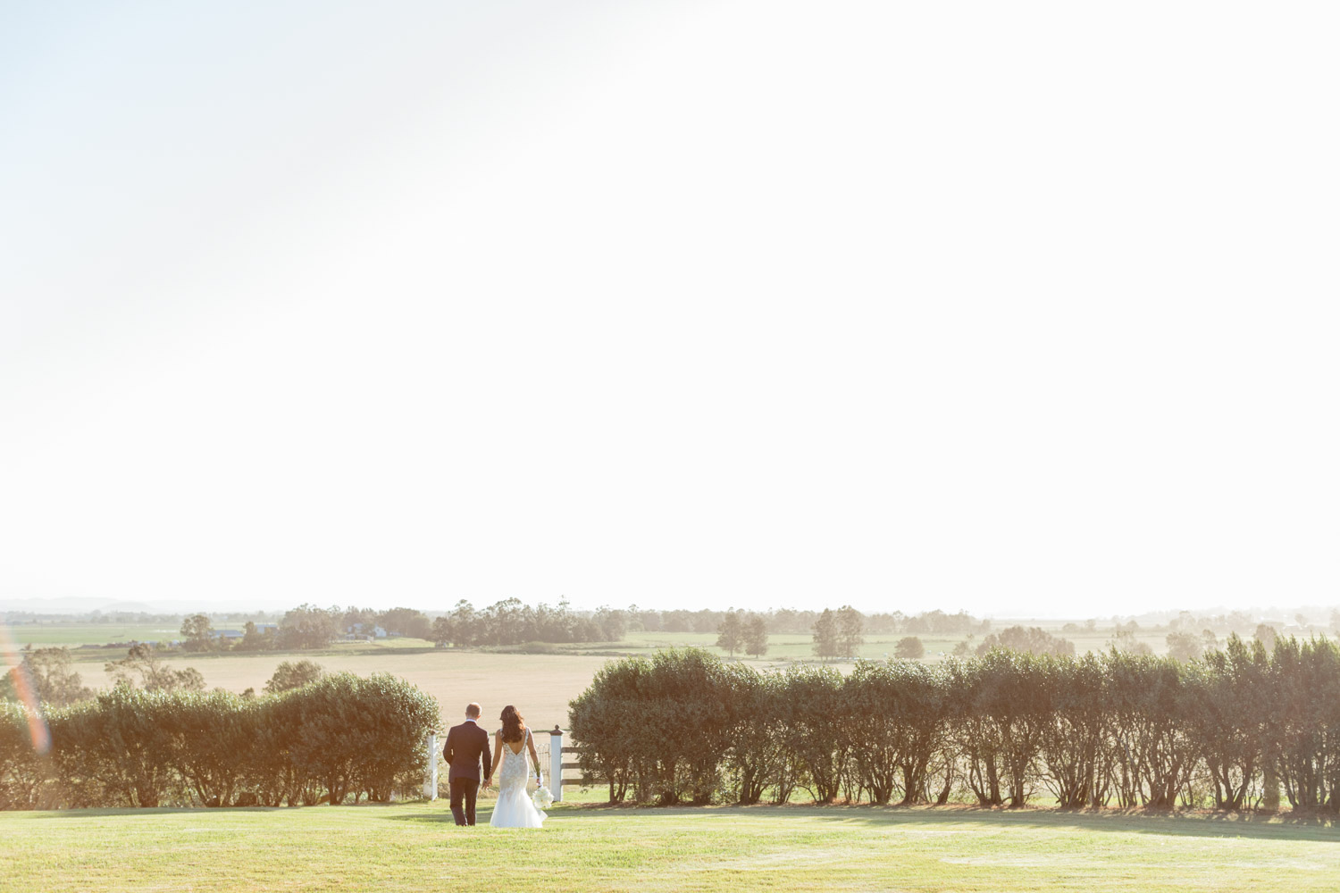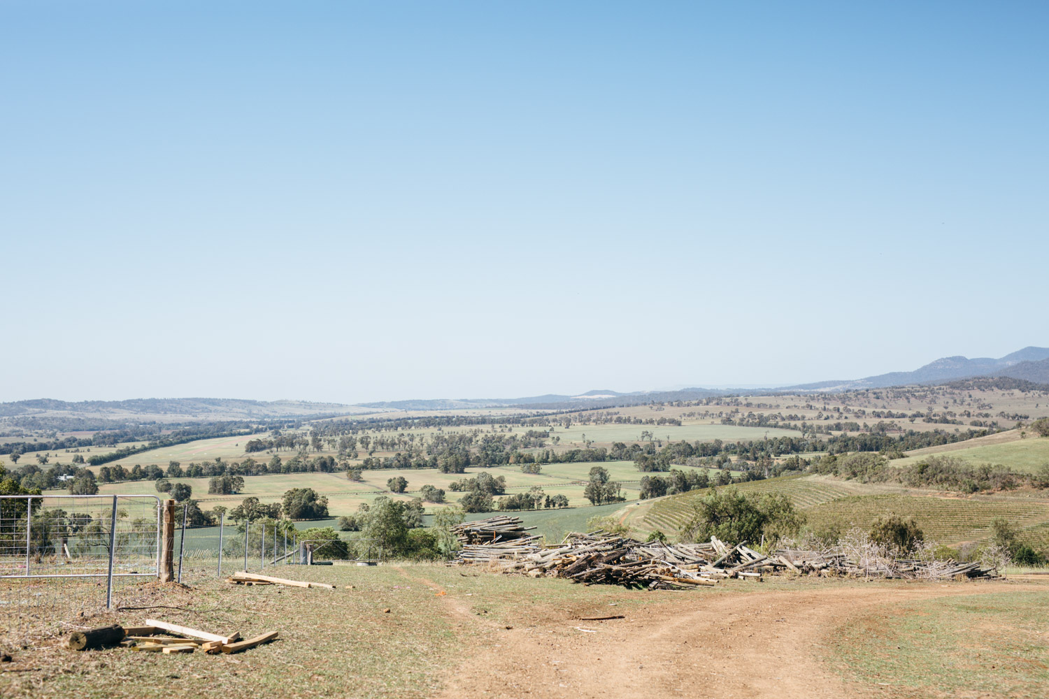 Usually, if I’m photographing a wedding at a new venue for the first time, I like to arrive early to scope out the location and identify some nearby wedding photography locations. I feel that this is important because I like to have a few ideas in mind for wedding portraits. This was no different for this wedding; I arrived at Hollydene Estate at about 9 am to meet Kurt (the groom). Kurt was kind enough to give me a personal tour of the estate – what a nice guy! We took a drive in his ute around the vineyard, checking our some sheds and plant storage facilities along the way. Kurt and I drove up to the northern end of the estate, through several gates to a paddock on a northern escarpment. The plateau at the top was amazing! The field at the northern end of the estate had a lovely western aspect that I knew would be perfect for a sunset shoot during their wedding photographs at Hollydene Estate.