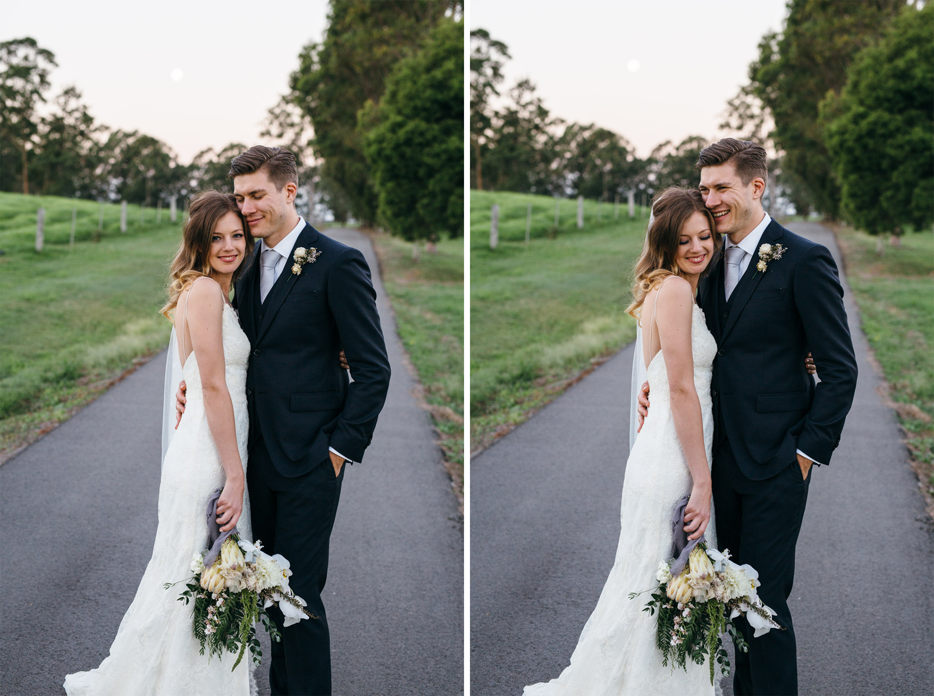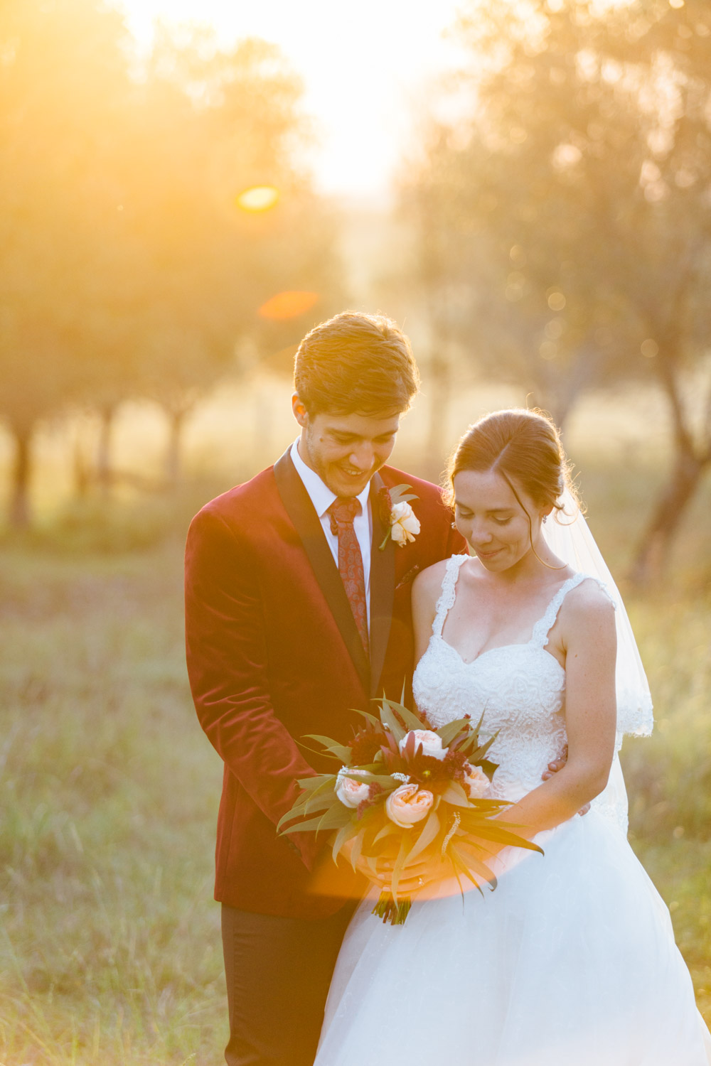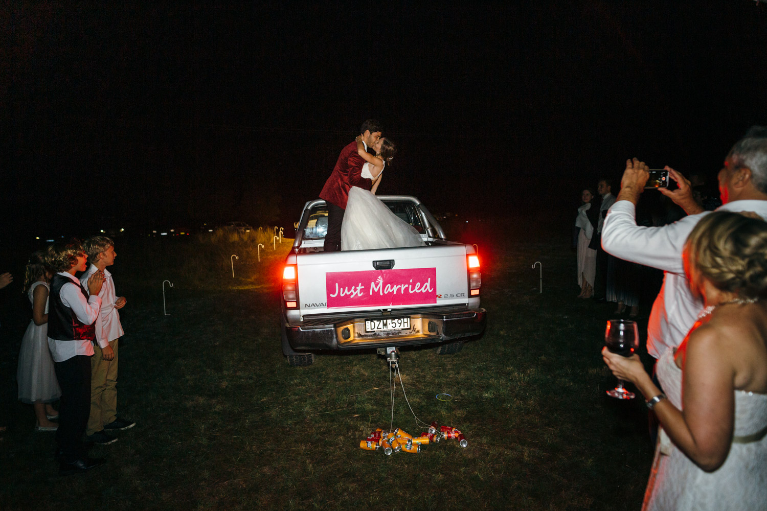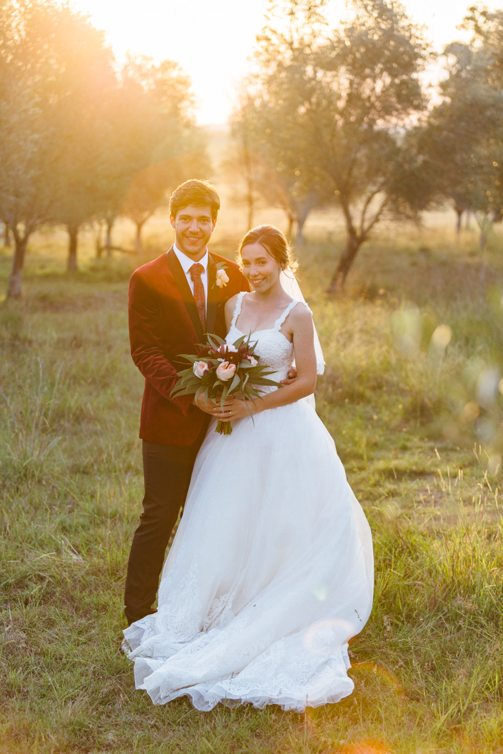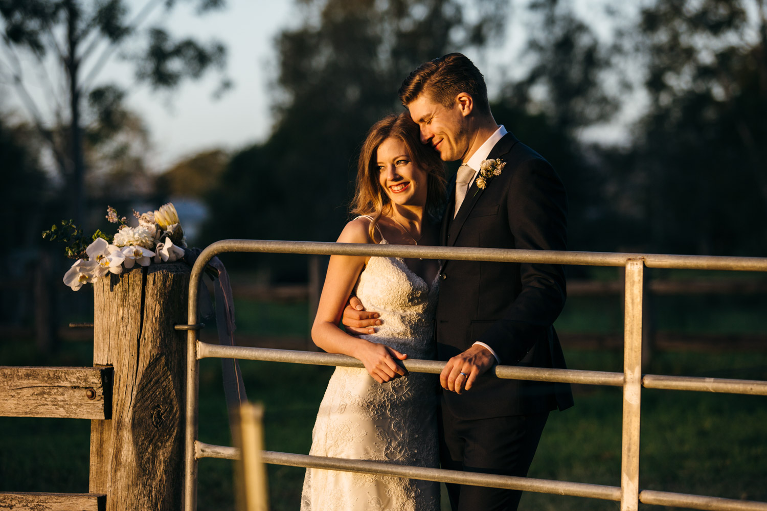 JF’s parents had a property in the neighbouring town of Glendonbrook, that hosted the evening’s reception. Before entering the reception we spent some time around the property taking some portraits amongst an olive orchard, and also on JF’s new ute. We timed the session perfectly with golden hour, to capture some lovely light.