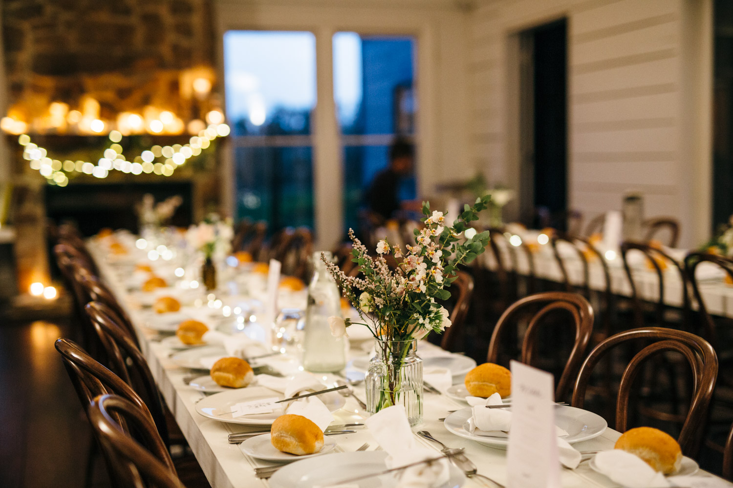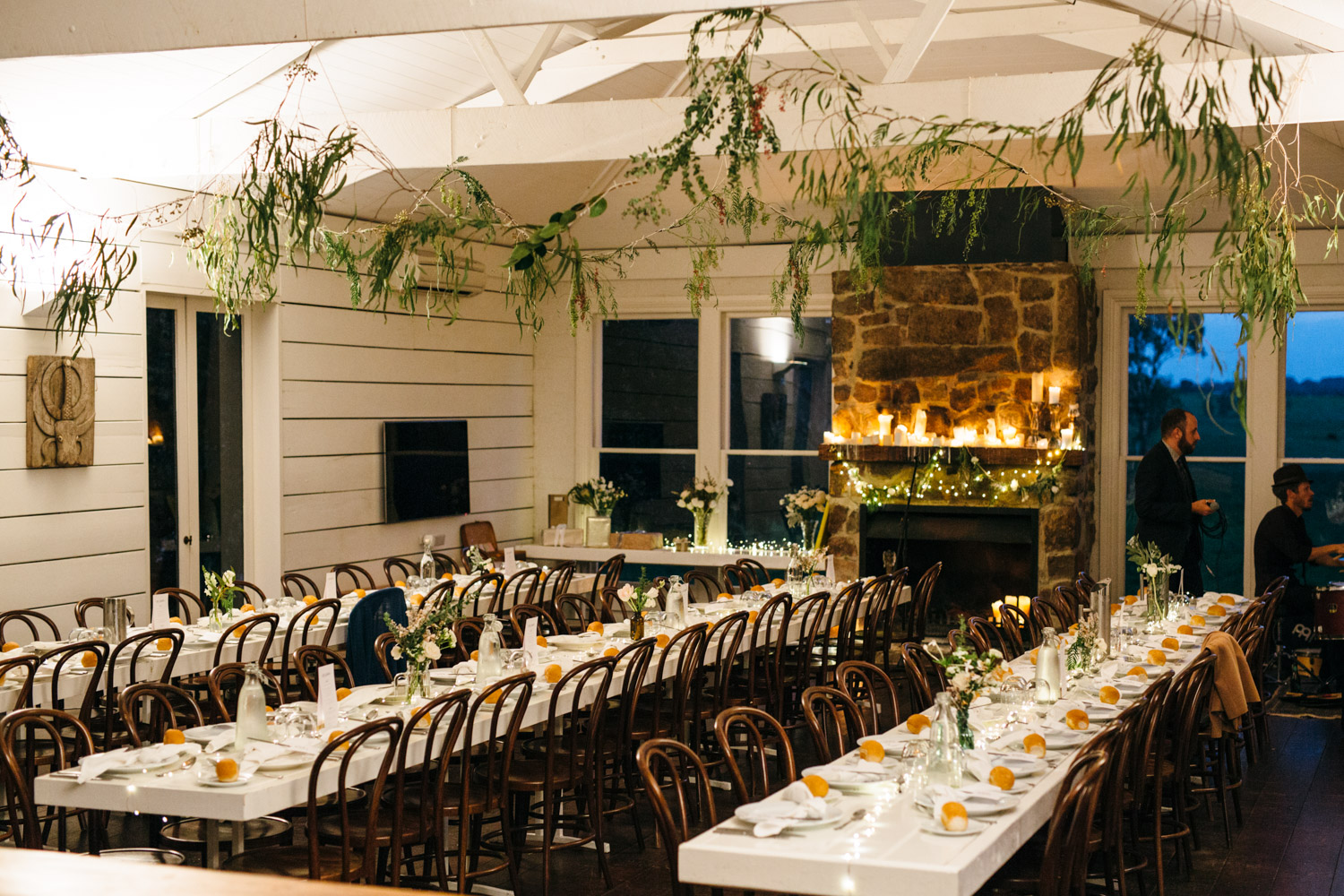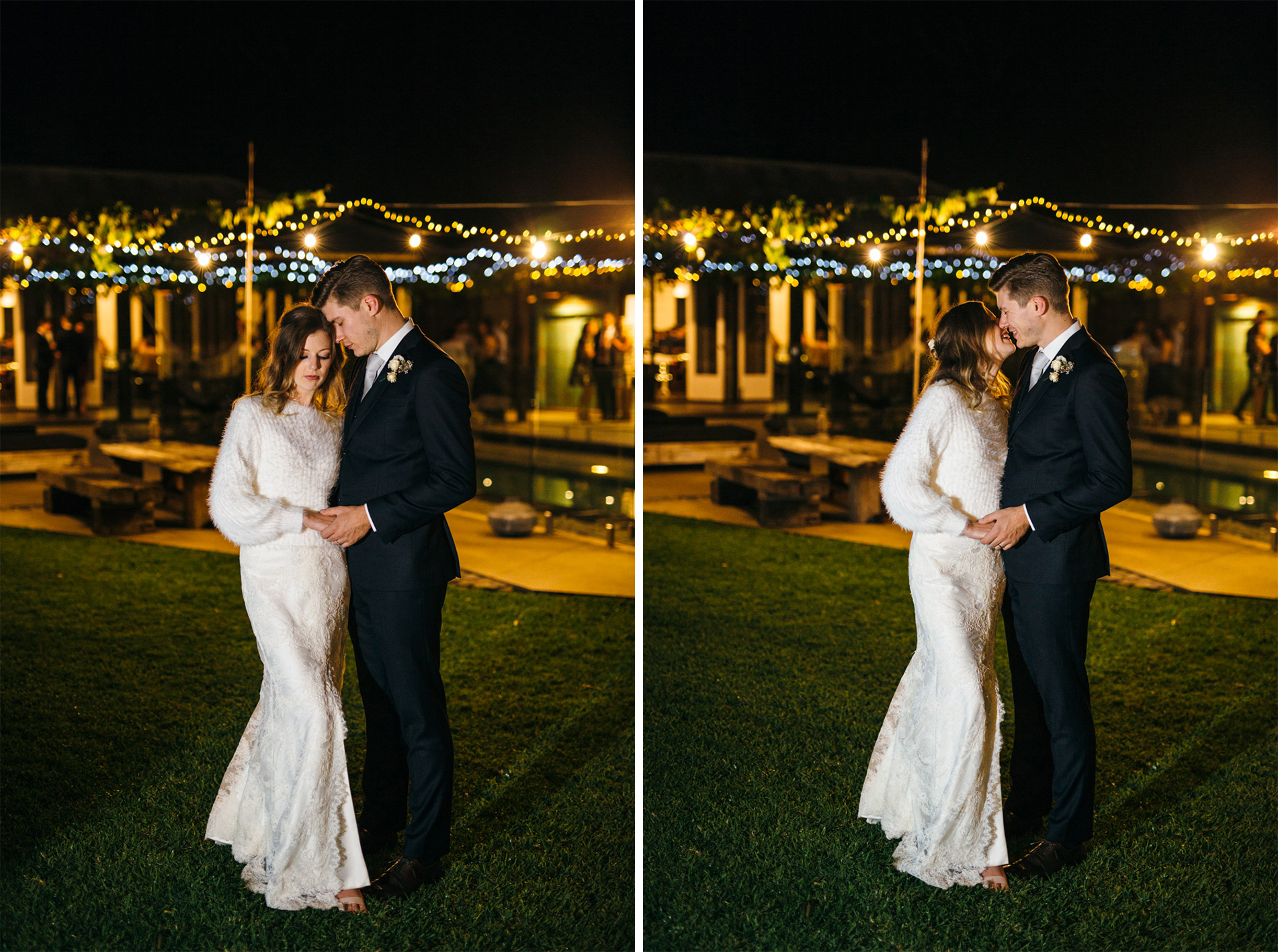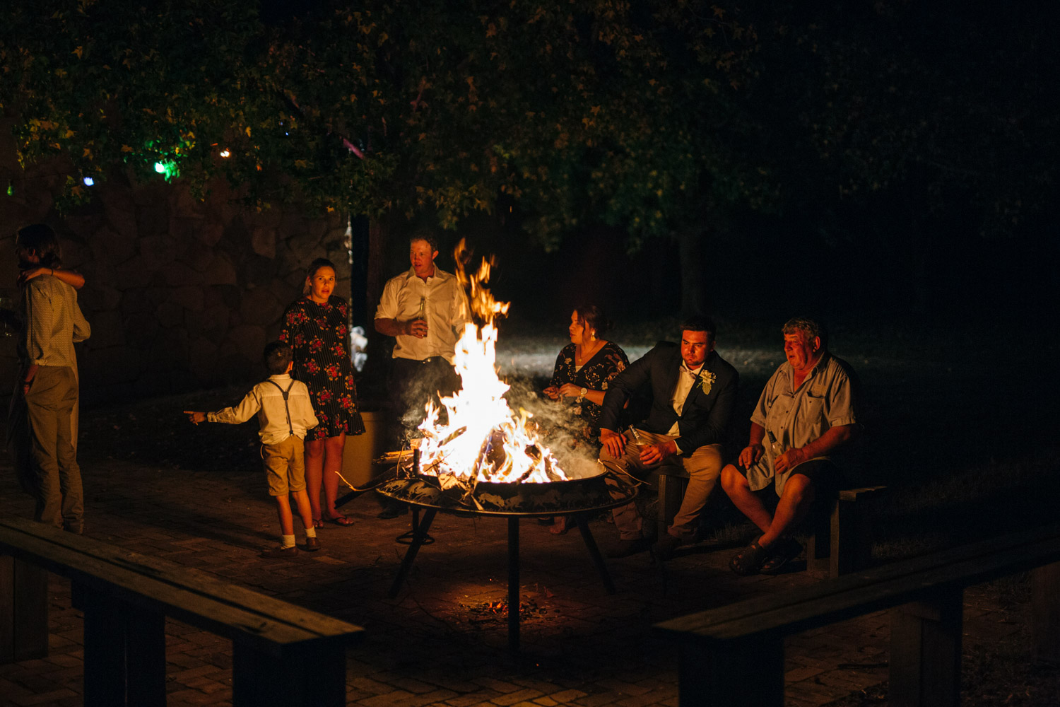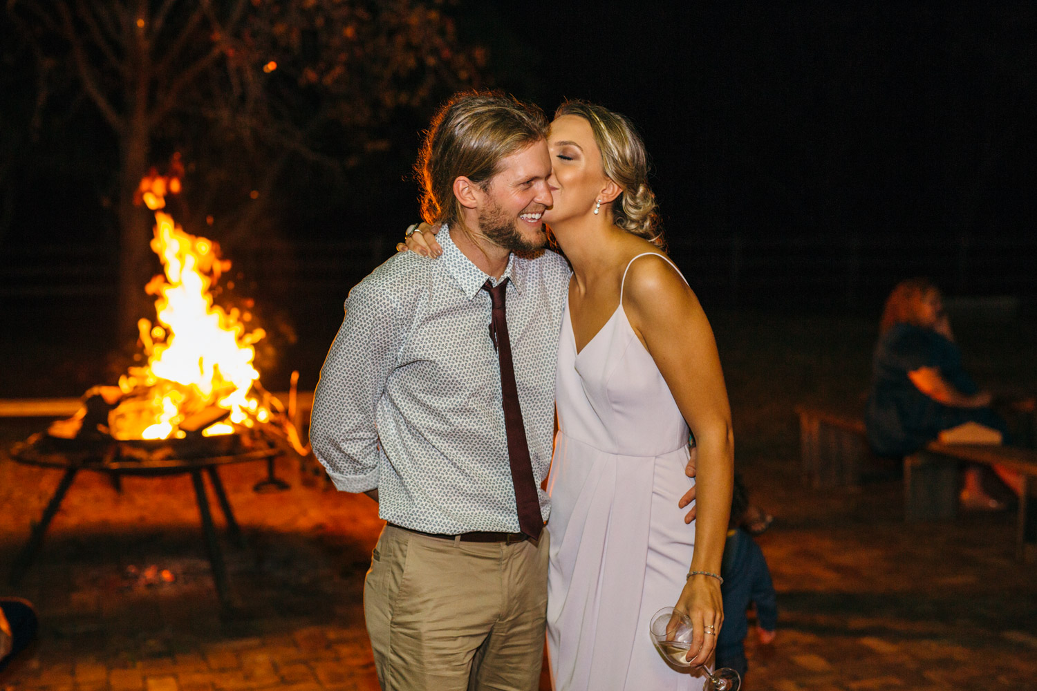 Interestingly, the reception for Jes and Ben’s Fernhill Estate wedding was held about 1.5 kilometres away – still on the property, in a converted hay shed. To keep warm there was a large fire pit out the front, and the candle-lit reception kept a romantic atmosphere.