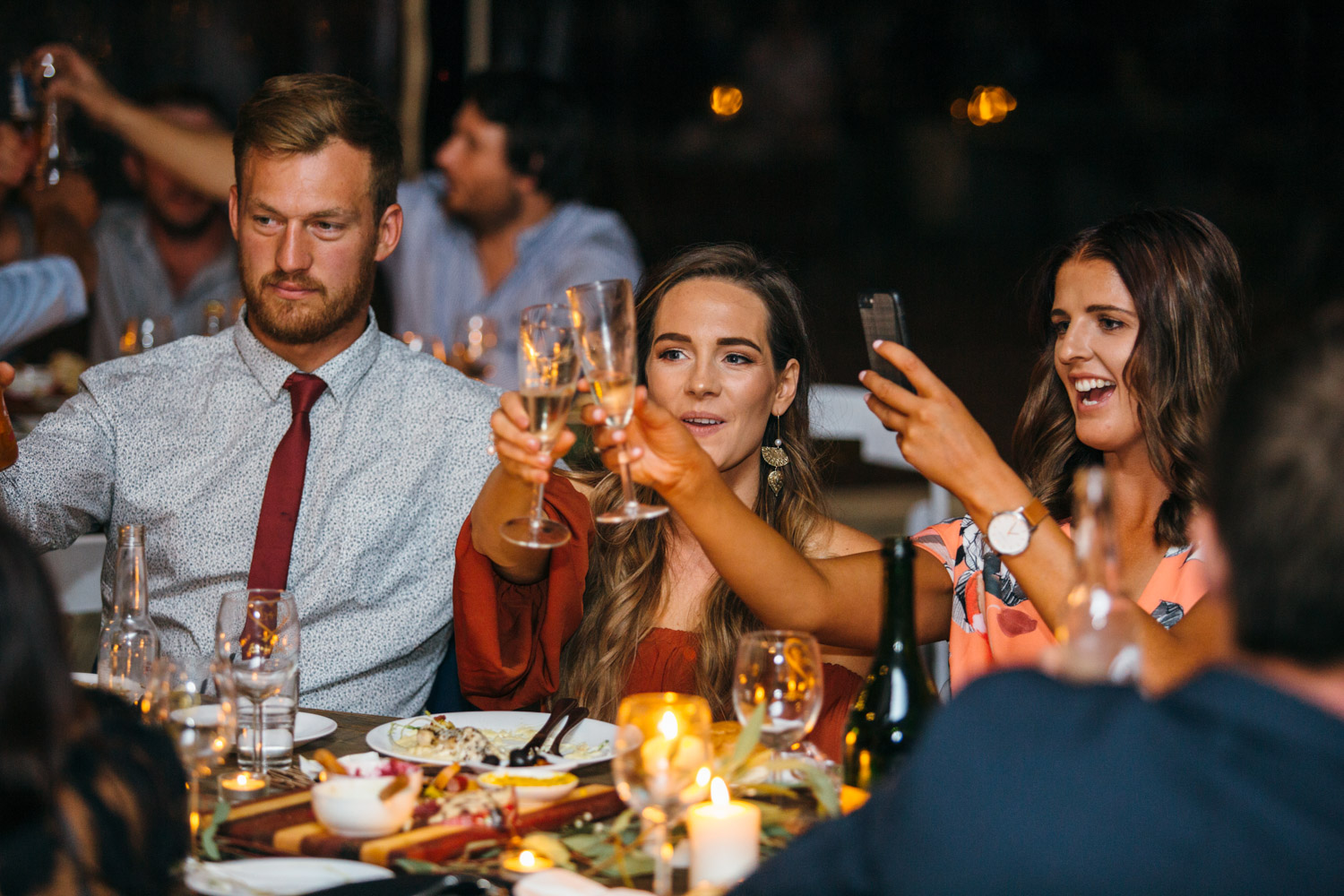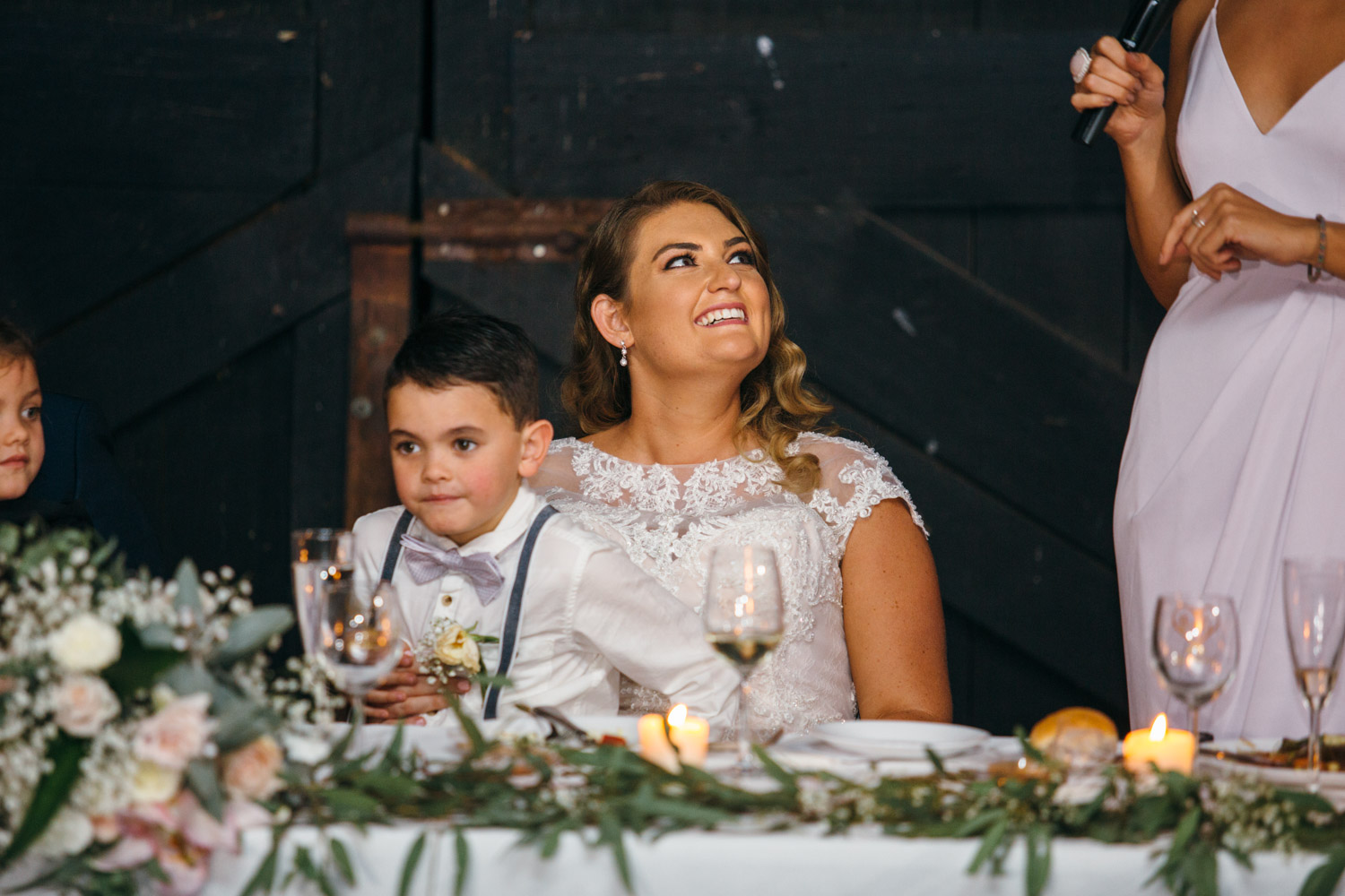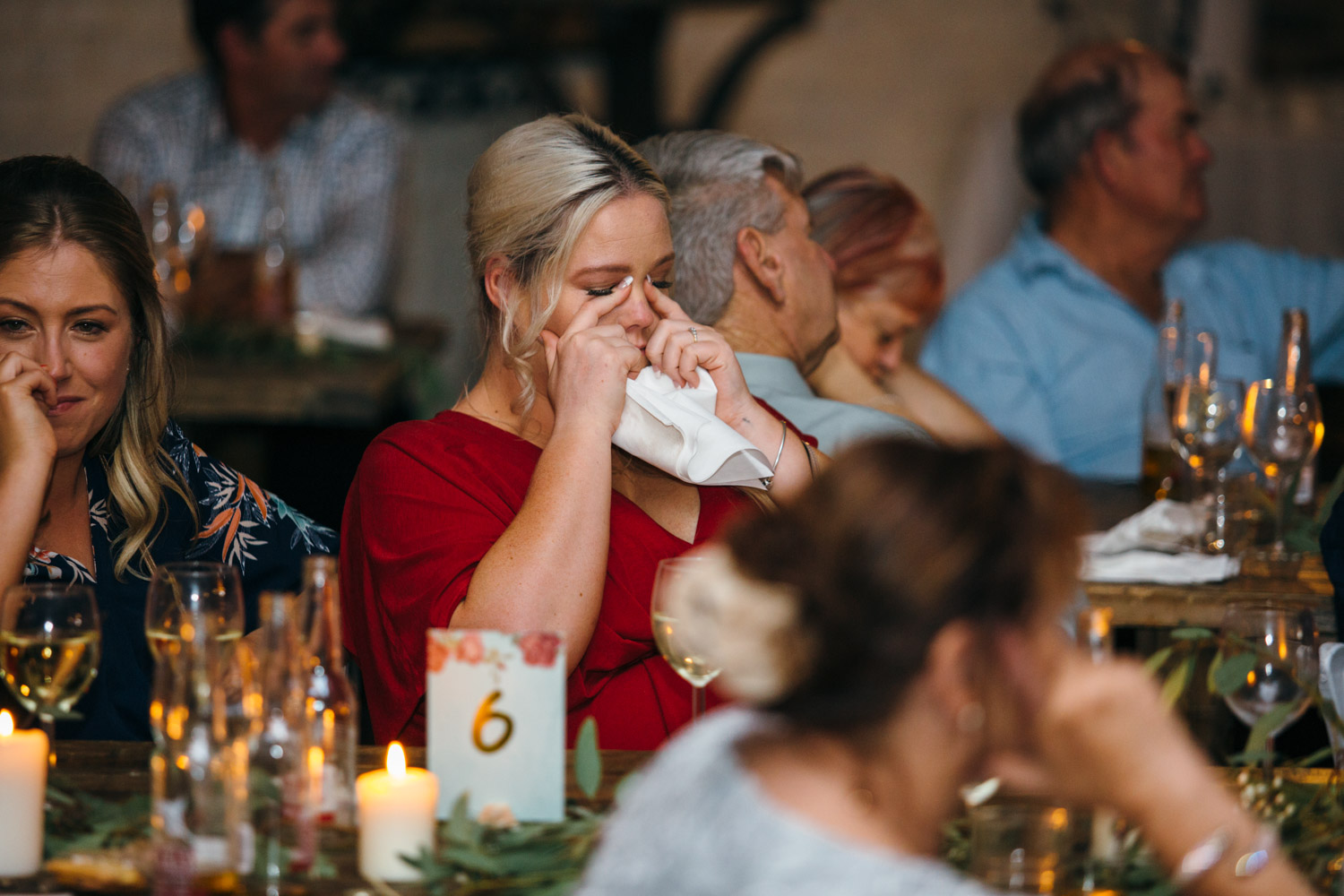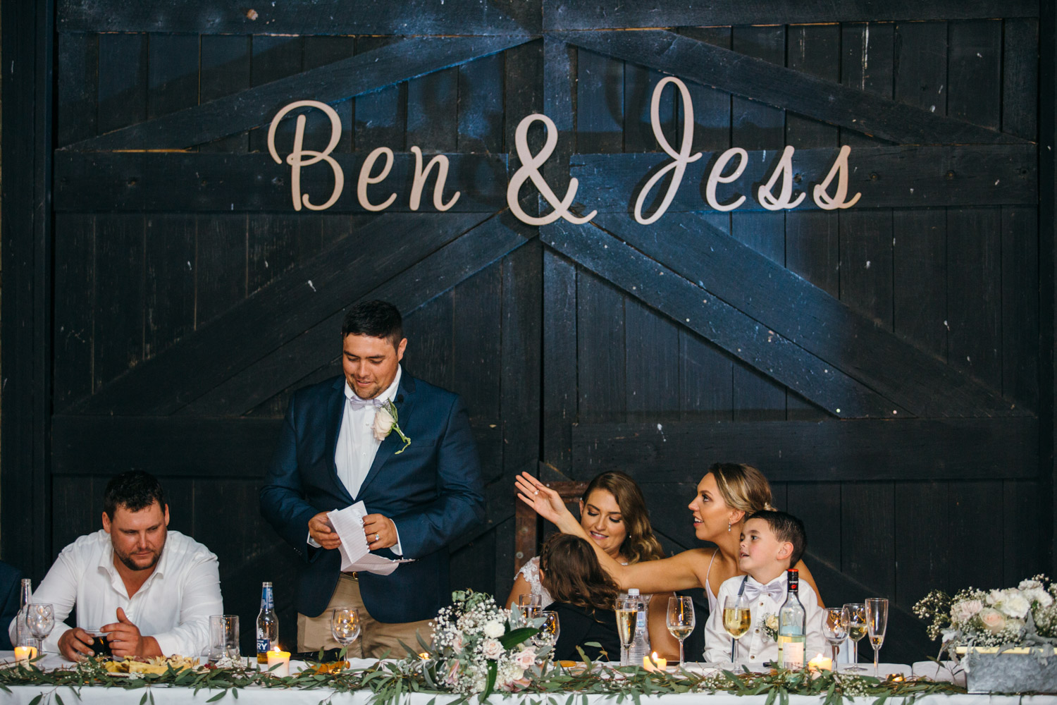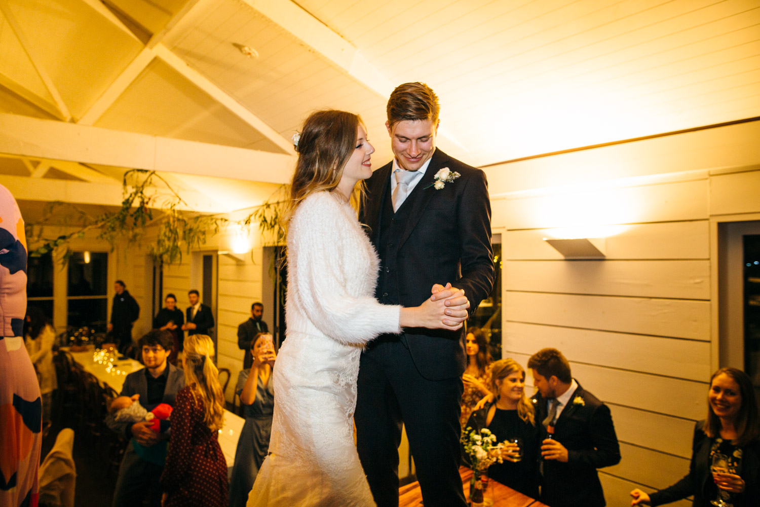 Interestingly, the reception for Jes and Ben’s Fernhill Estate wedding was held about 1.5 kilometres away – still on the property, in a converted hay shed. To keep warm there was a large fire pit out the front, and the candle-lit reception kept a romantic atmosphere.