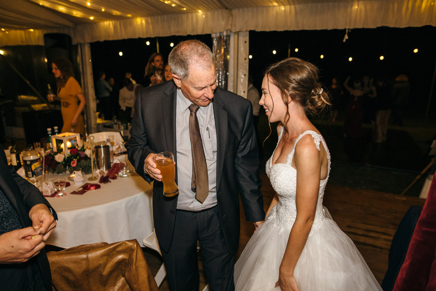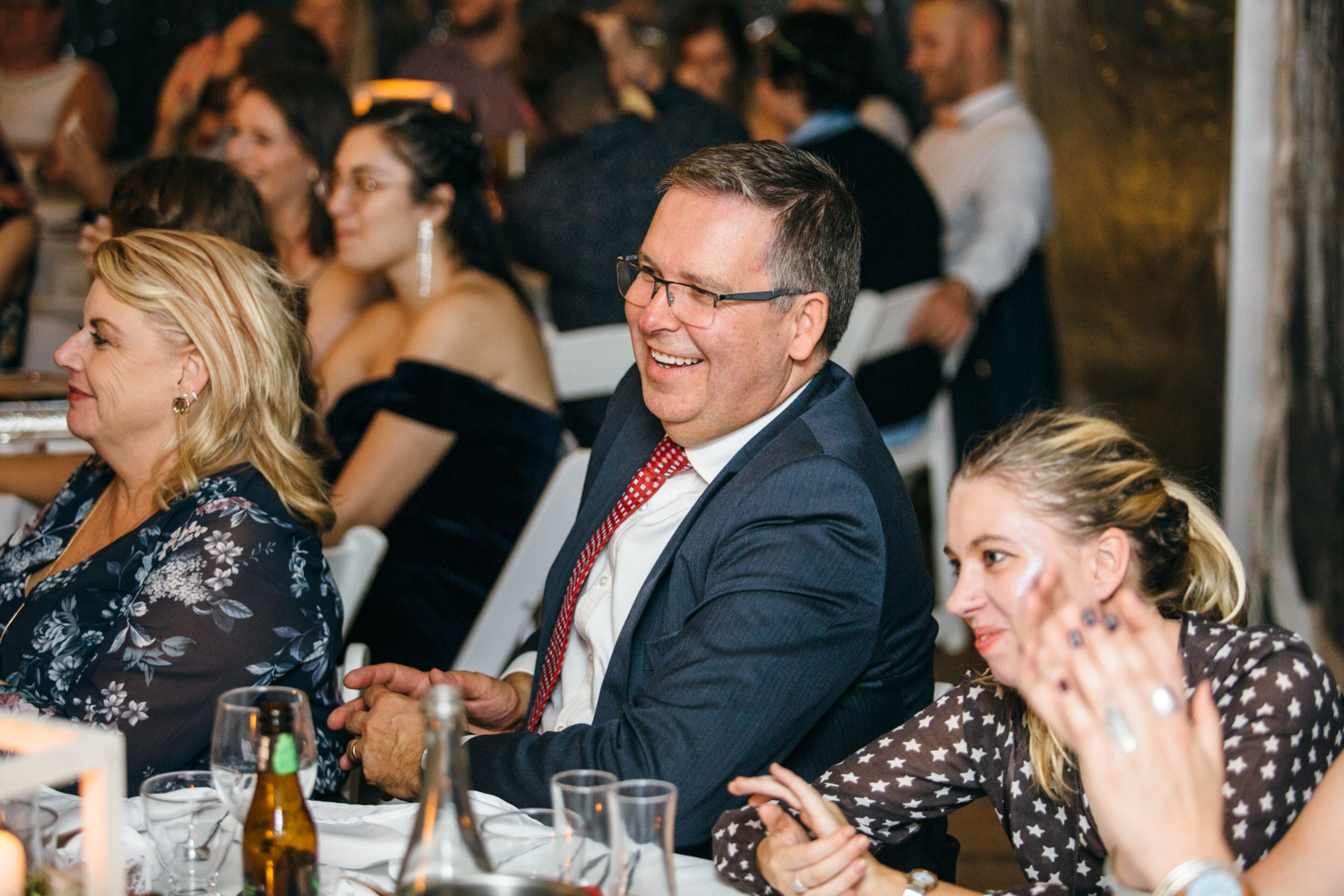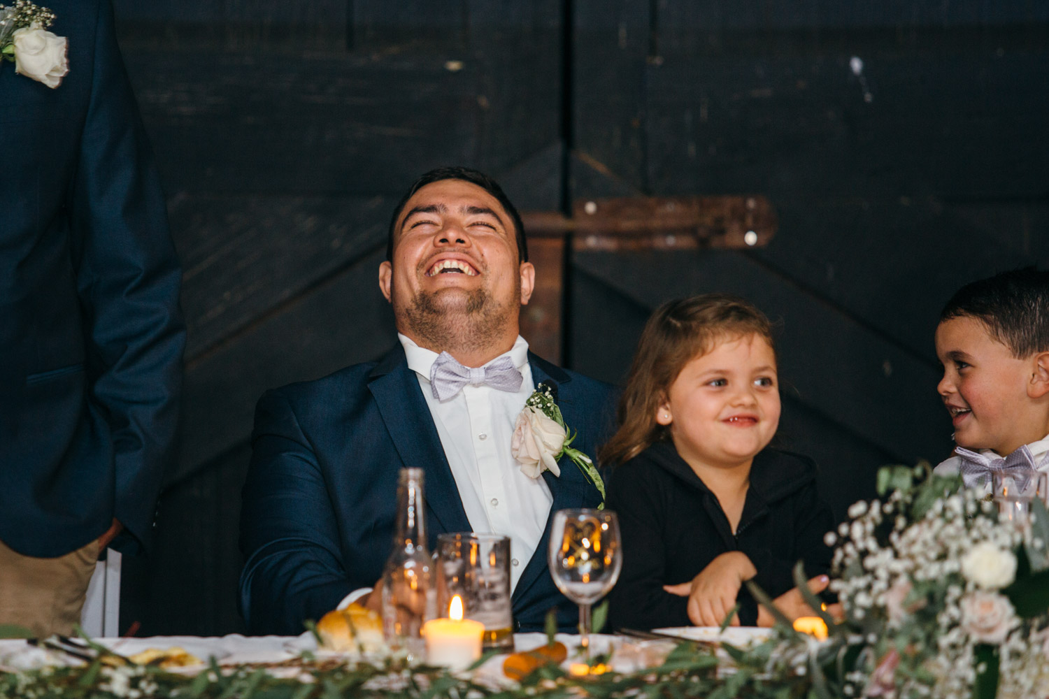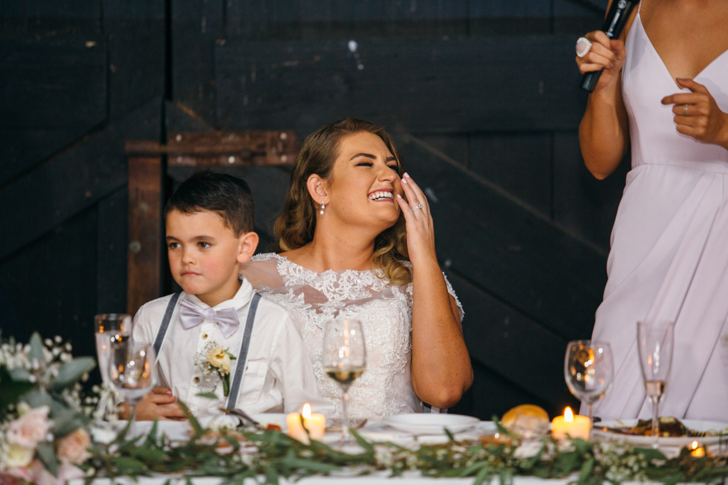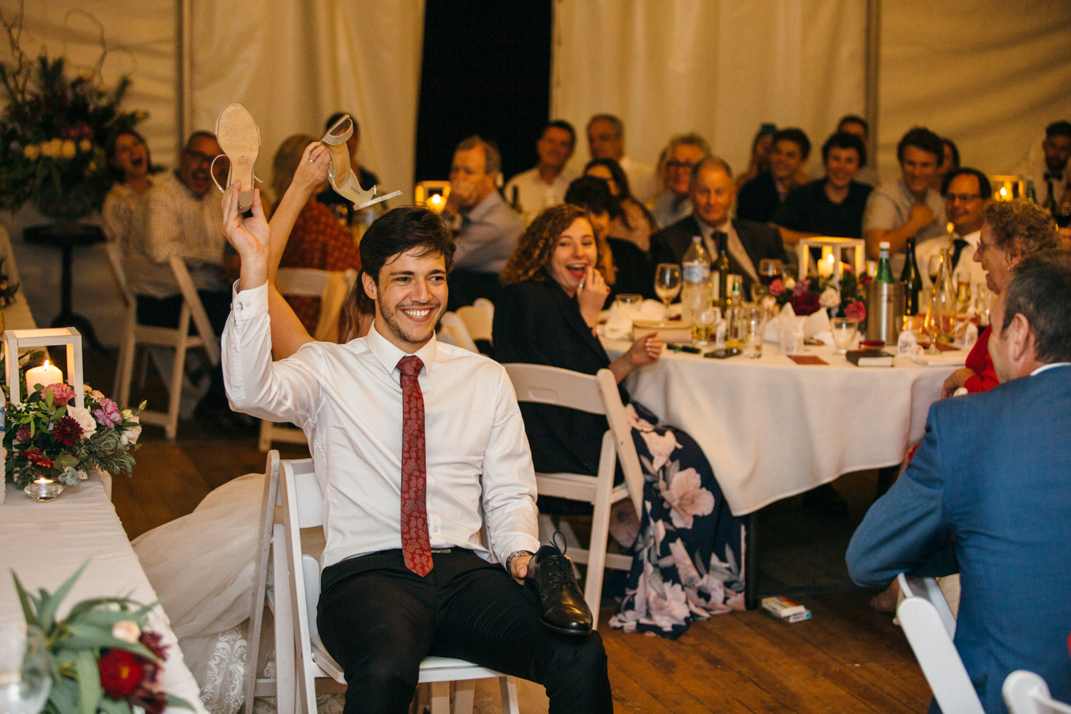 Interestingly, the reception for Jes and Ben’s Fernhill Estate wedding was held about 1.5 kilometres away – still on the property, in a converted hay shed. To keep warm there was a large fire pit out the front, and the candle-lit reception kept a romantic atmosphere.