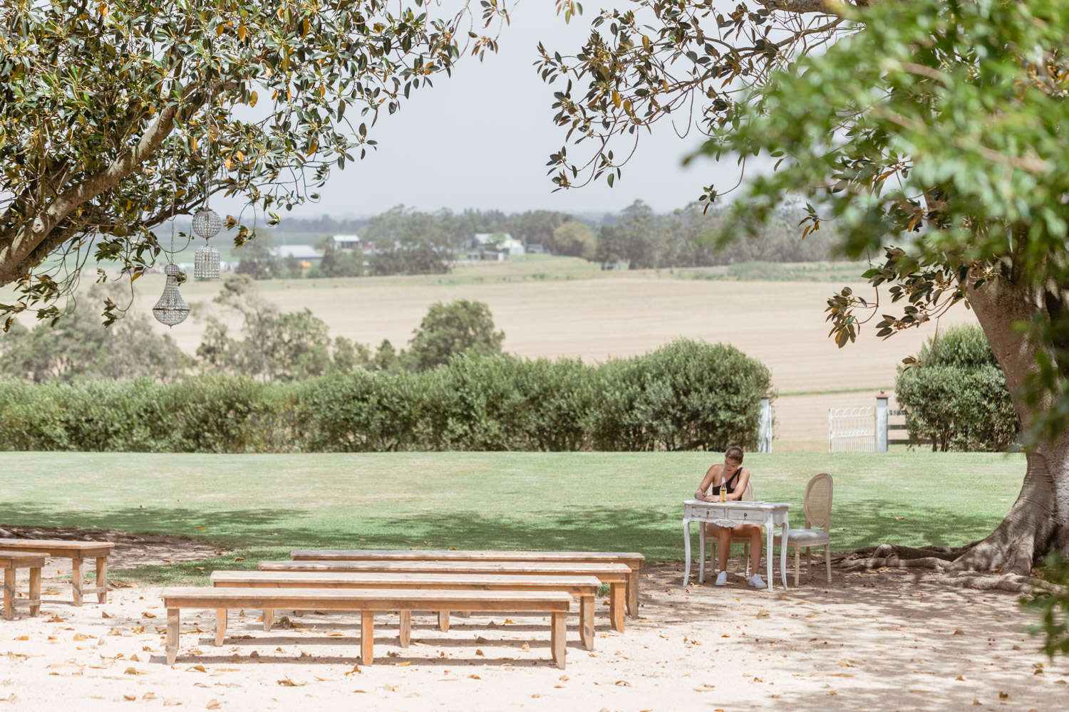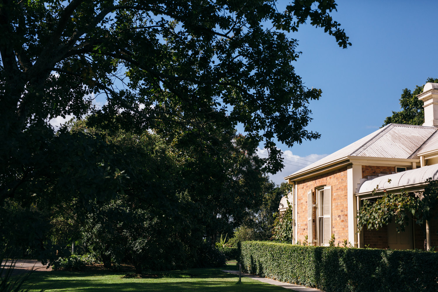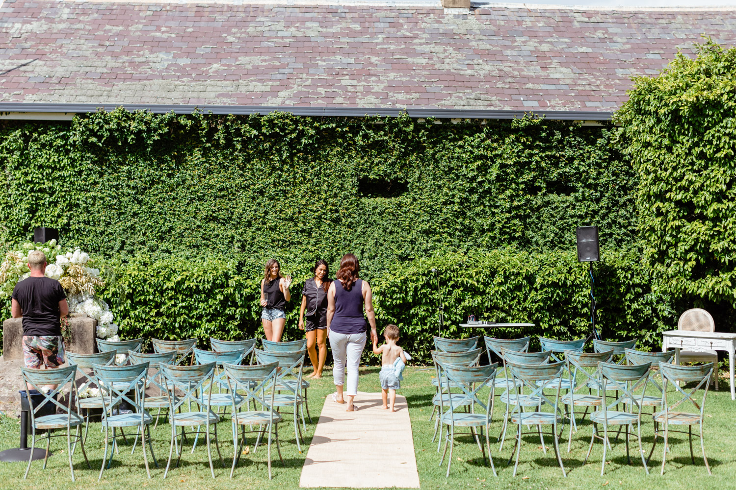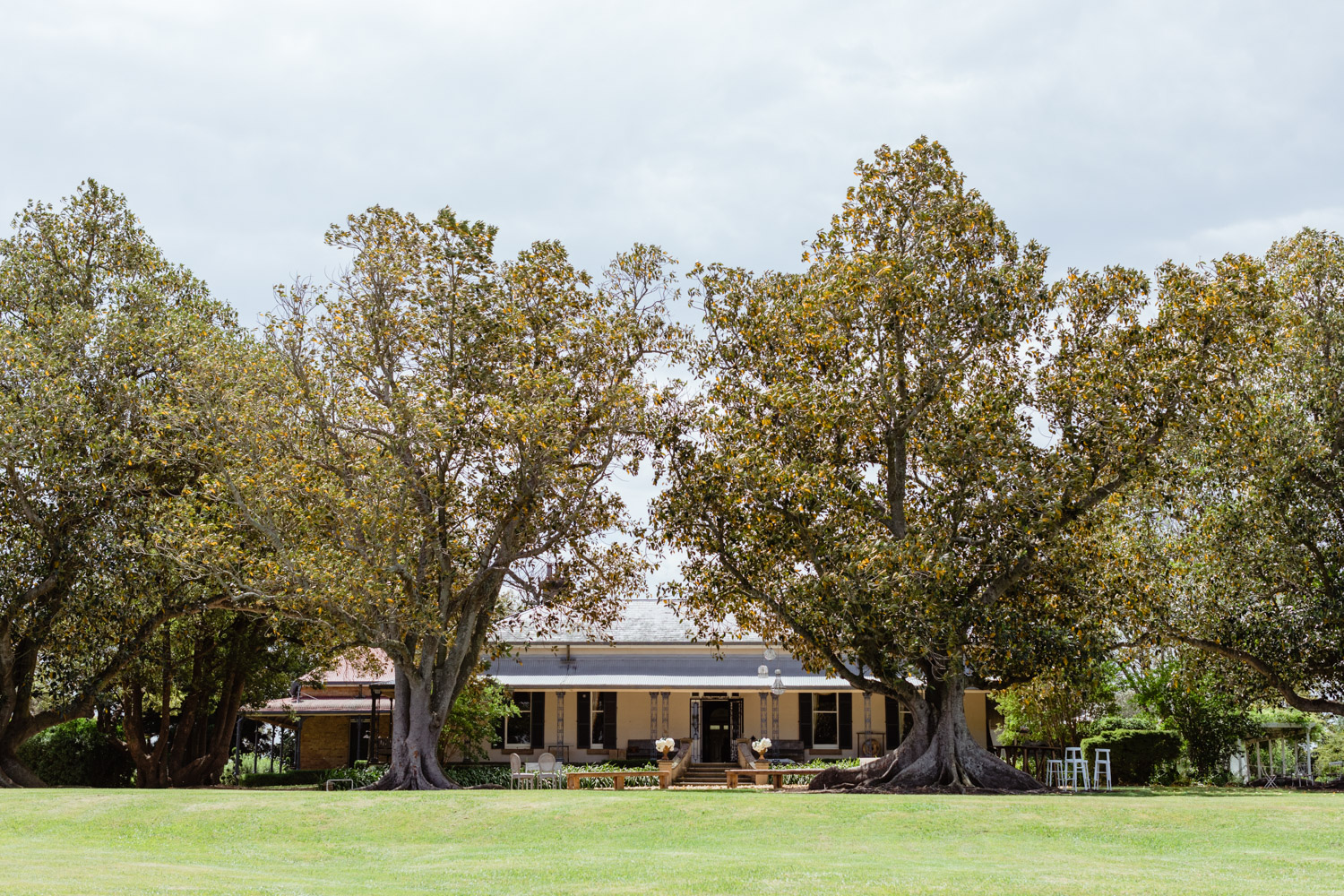Back at Wallalong; the wind was picking up. After a late change to the ceremony location to shelter from the weather, Emma’s team set up the chairs around the back of the estate. The awesome variety around all sides of the homestead meant that she could almost any side for the ceremony and the backdrop would be lovely. The green ivy wall was a great choice.