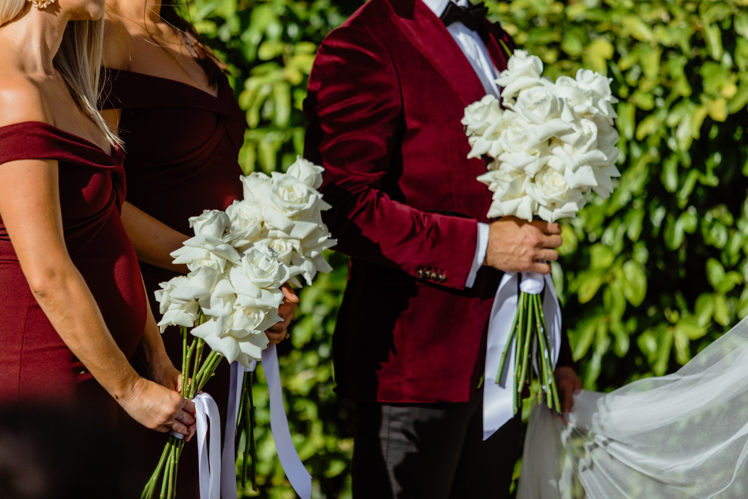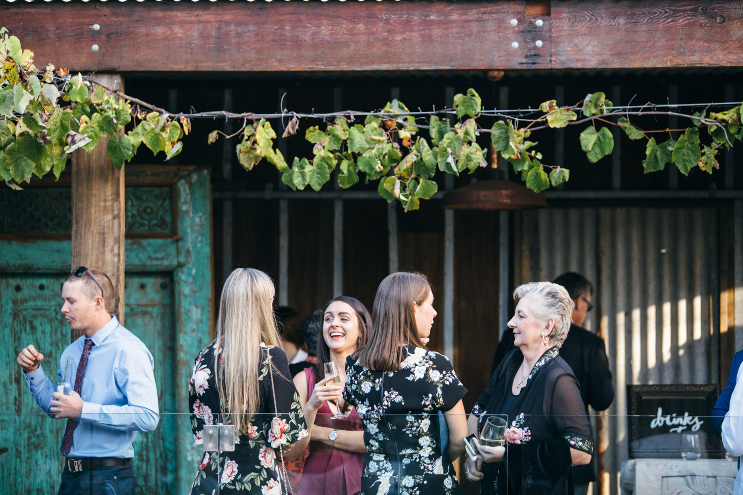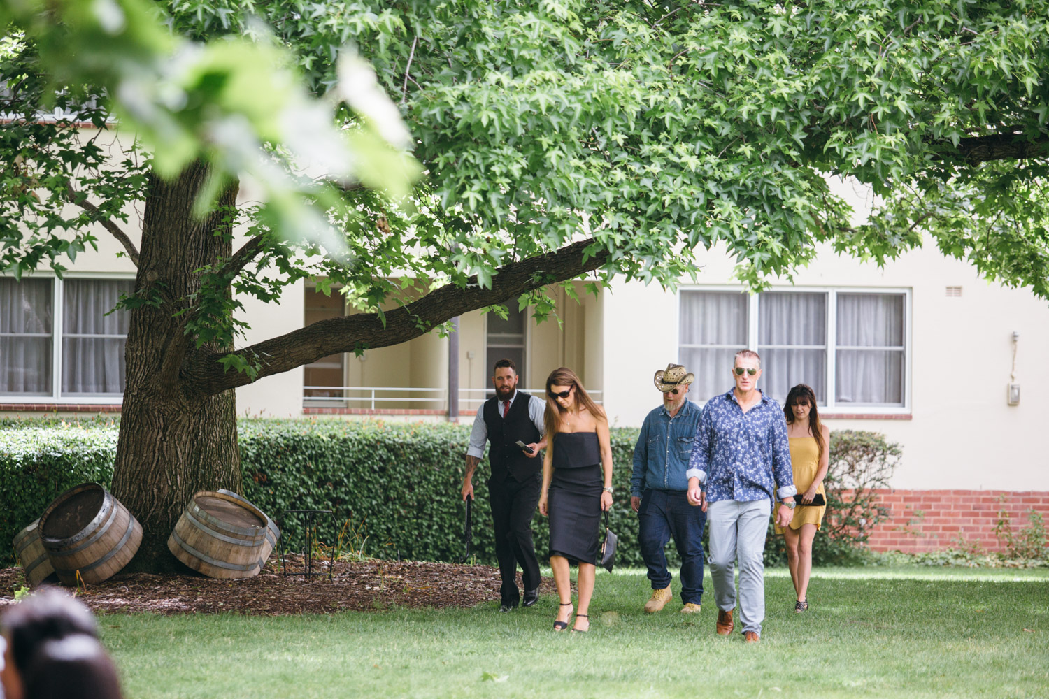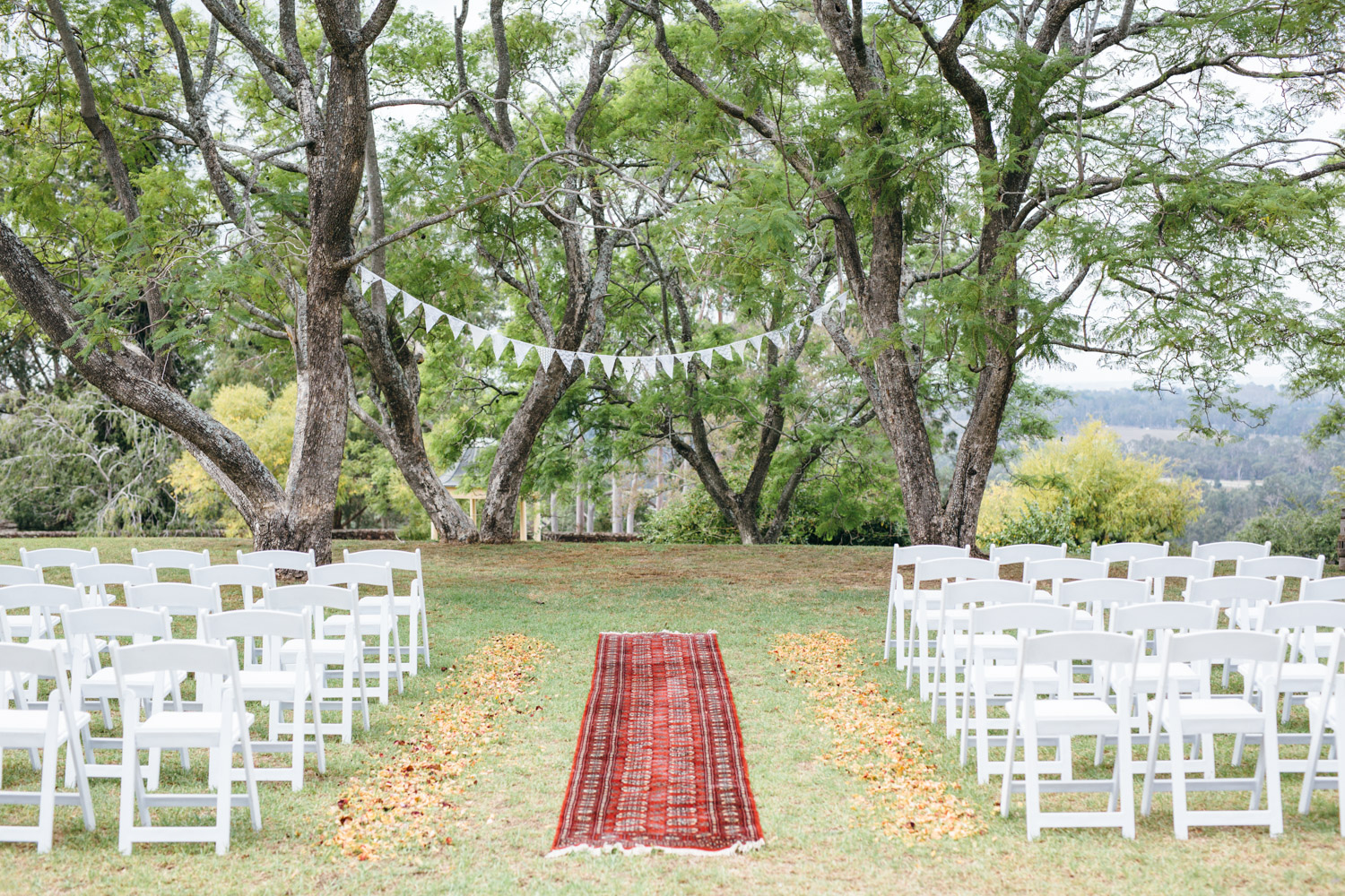 Back at Wallalong; the wind was picking up. After a late change to the ceremony location to shelter from the weather, Emma’s team set up the chairs around the back of the estate. The awesome variety around all sides of the homestead meant that she could almost any side for the ceremony and the backdrop would be lovely. The green ivy wall was a great choice.