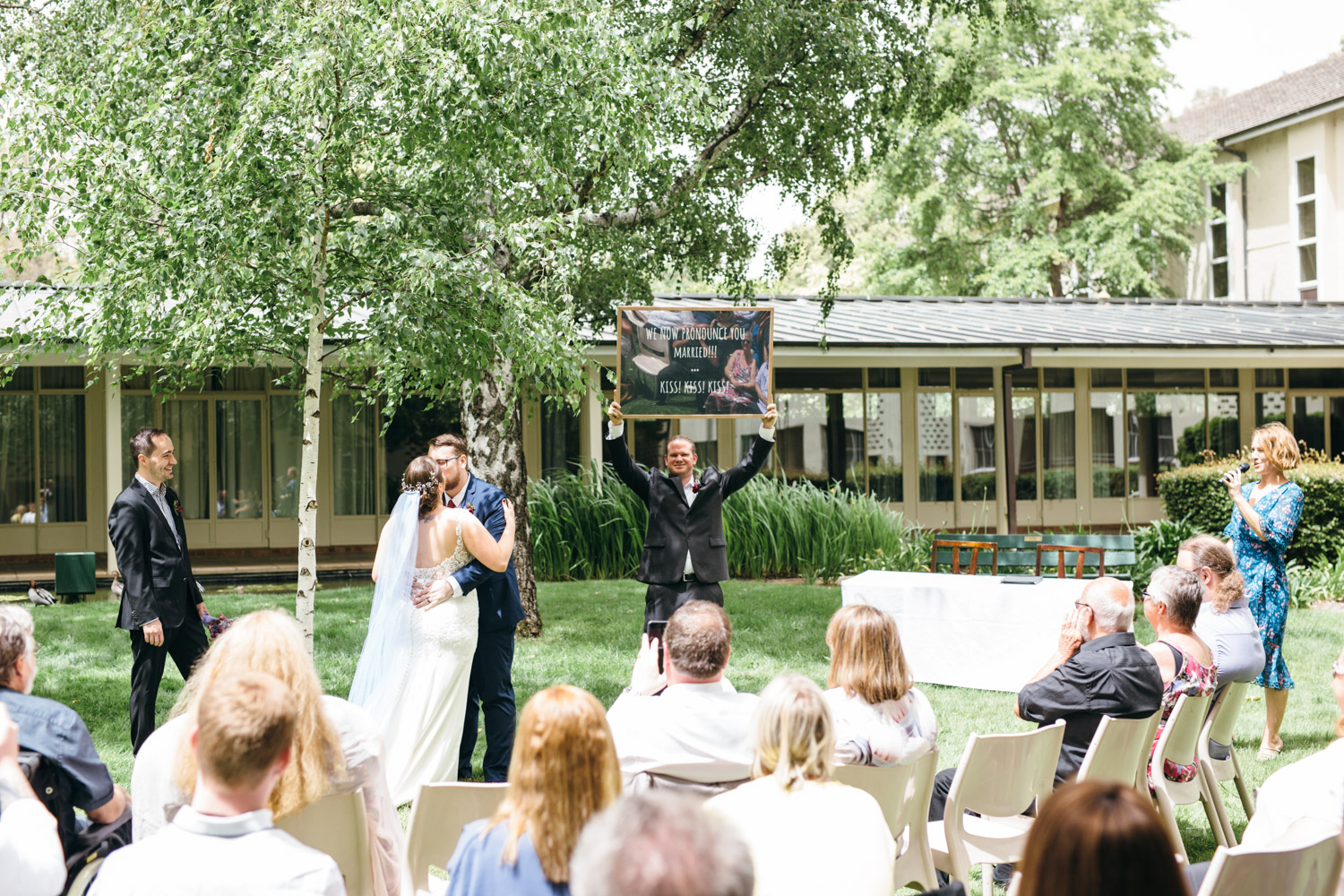 With Ben waiting at the end of the aisle, Jess walked out of the Manor’s double doors from the front lounge and made her way down the grand entranceway. With all their guests gathered in the Fernhill Estate upper garden, they witnessed some lovely nuptials.