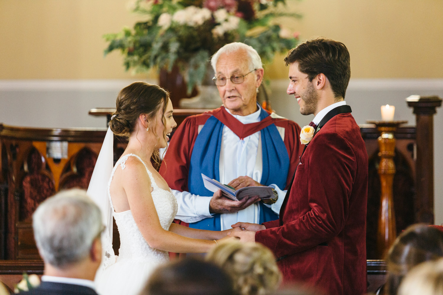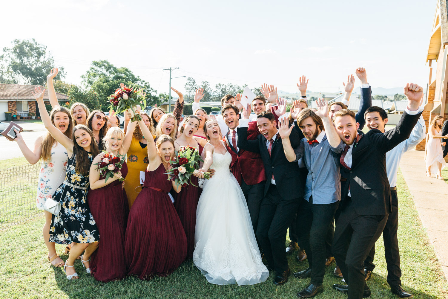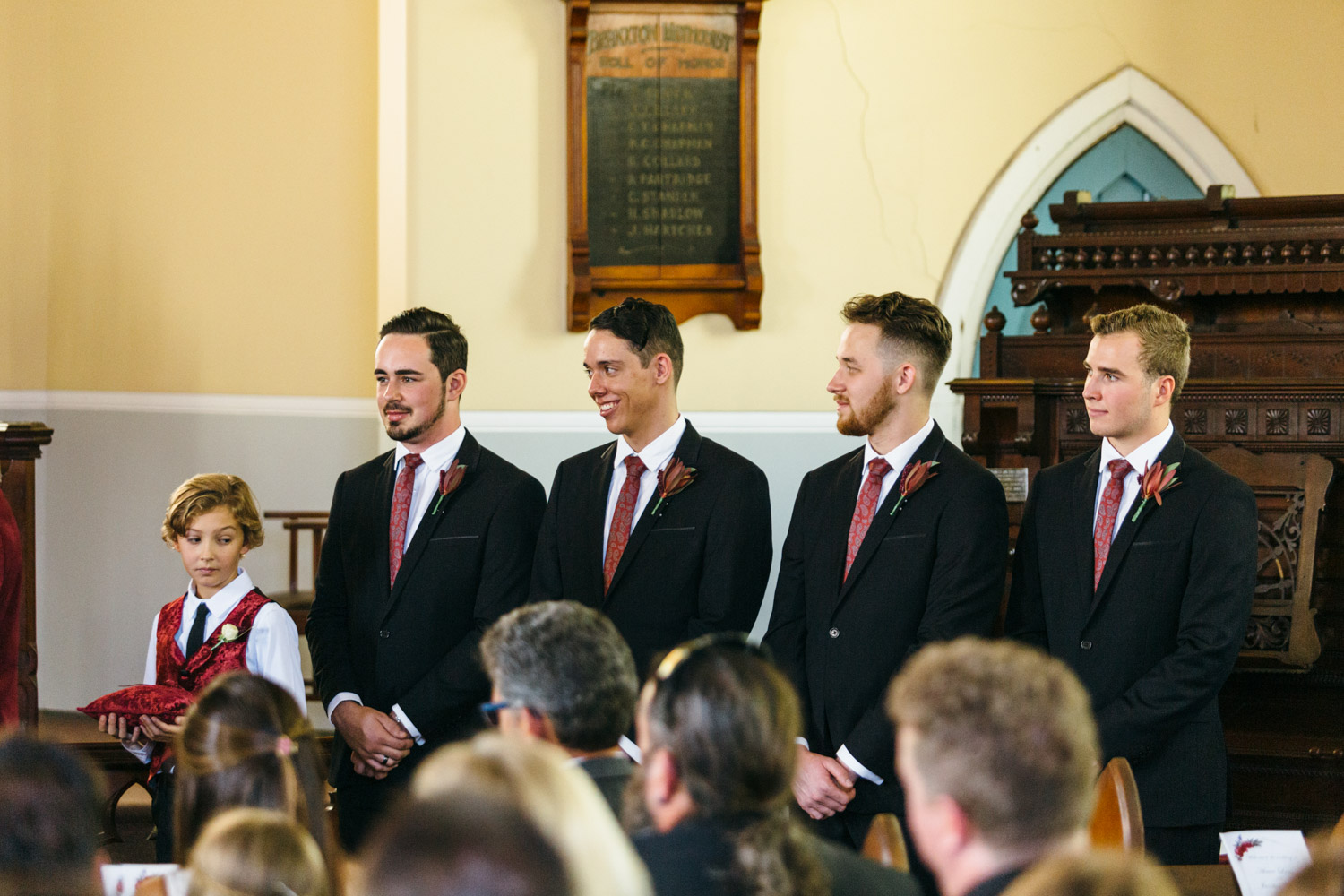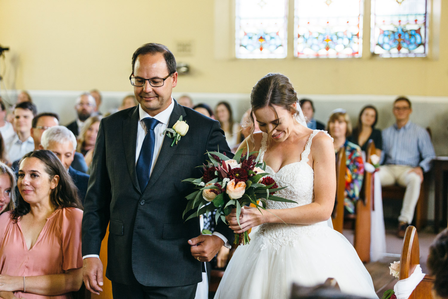 Aimee and JF’s ceremony, held in the Branxton Uniting Chapel in Branxton (around 20 minutes east of Singleton) was lovely. The light inside the chapel was soft and flattering. The memorable thing about their ceremony was that after the celebrant pronounced Aimee and Jacobus to be husband and wife, he didn’t invite JF to kiss his bride. JF, unsure of what to do, simply asked the question, to which their celebrant conceded with a chuckle; “Of course… You may now kiss your bride”. The chapel erupted in laughter as they kissed.