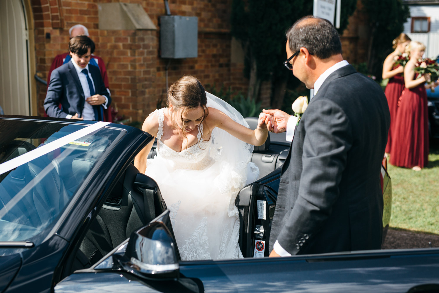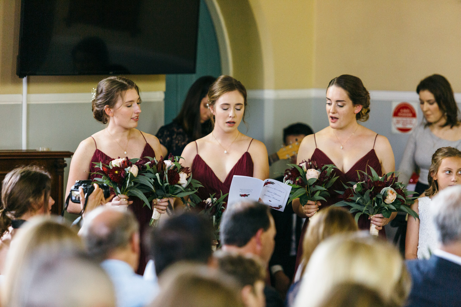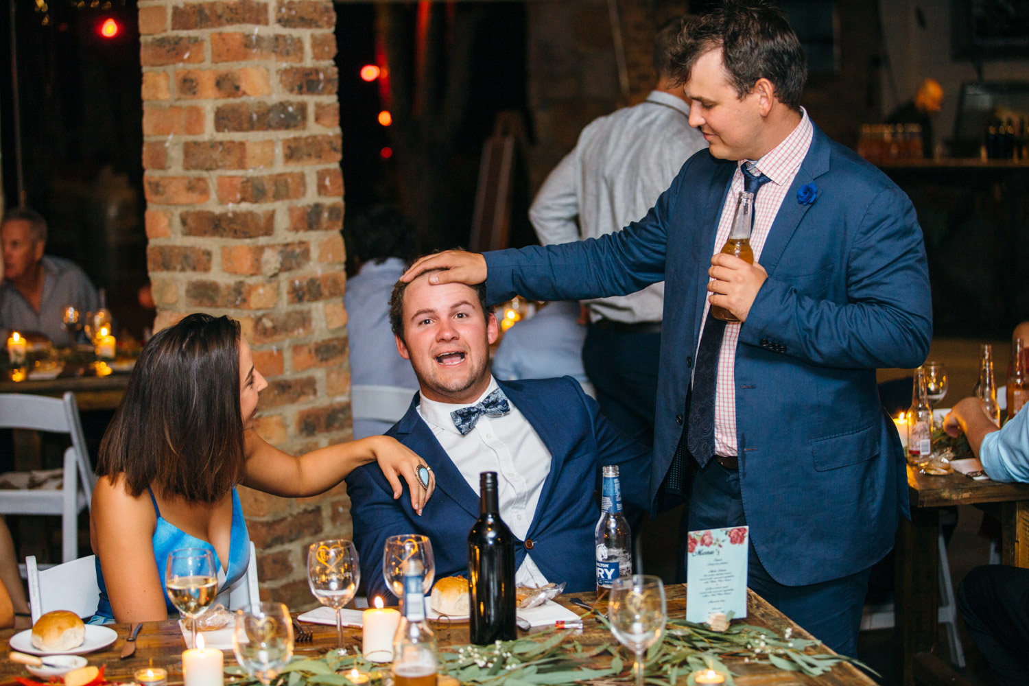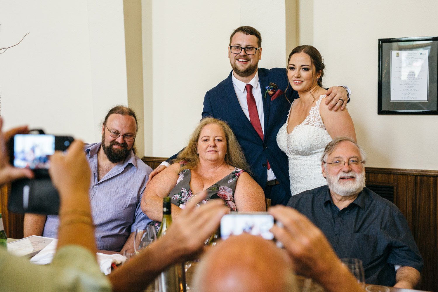 Aimee and JF’s ceremony, held in the Branxton Uniting Chapel in Branxton (around 20 minutes east of Singleton) was lovely. The light inside the chapel was soft and flattering. The memorable thing about their ceremony was that after the celebrant pronounced Aimee and Jacobus to be husband and wife, he didn’t invite JF to kiss his bride. JF, unsure of what to do, simply asked the question, to which their celebrant conceded with a chuckle; “Of course… You may now kiss your bride”. The chapel erupted in laughter as they kissed.