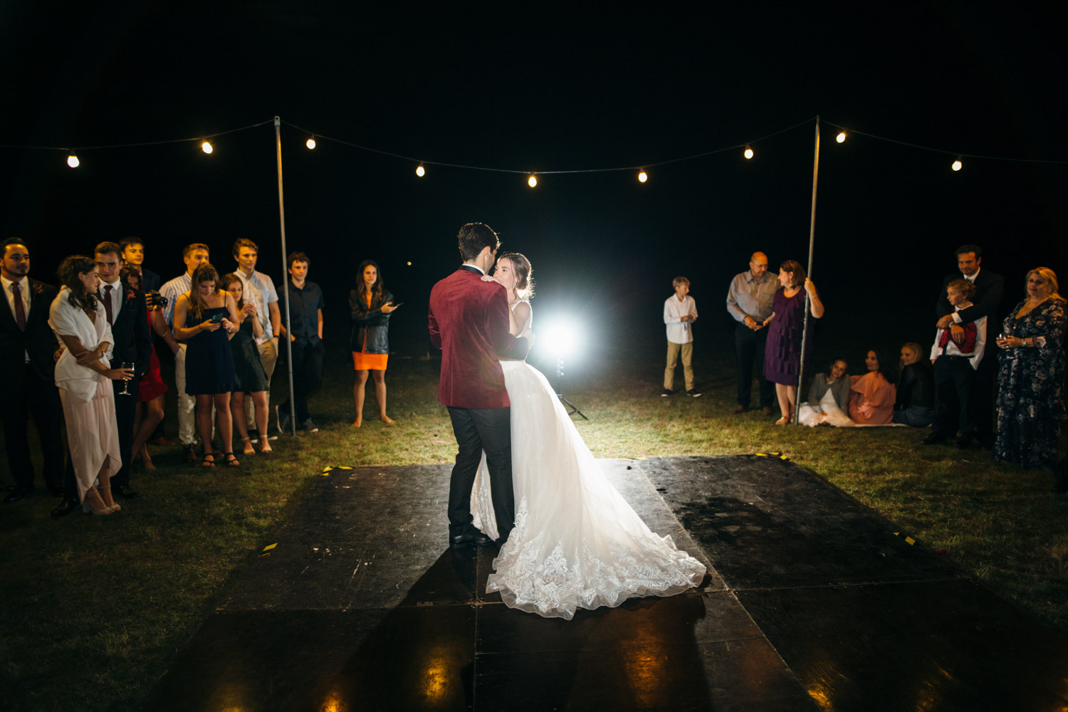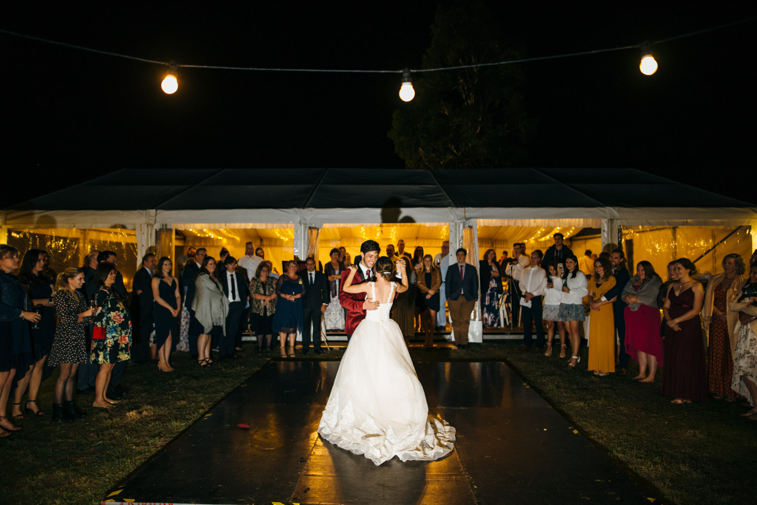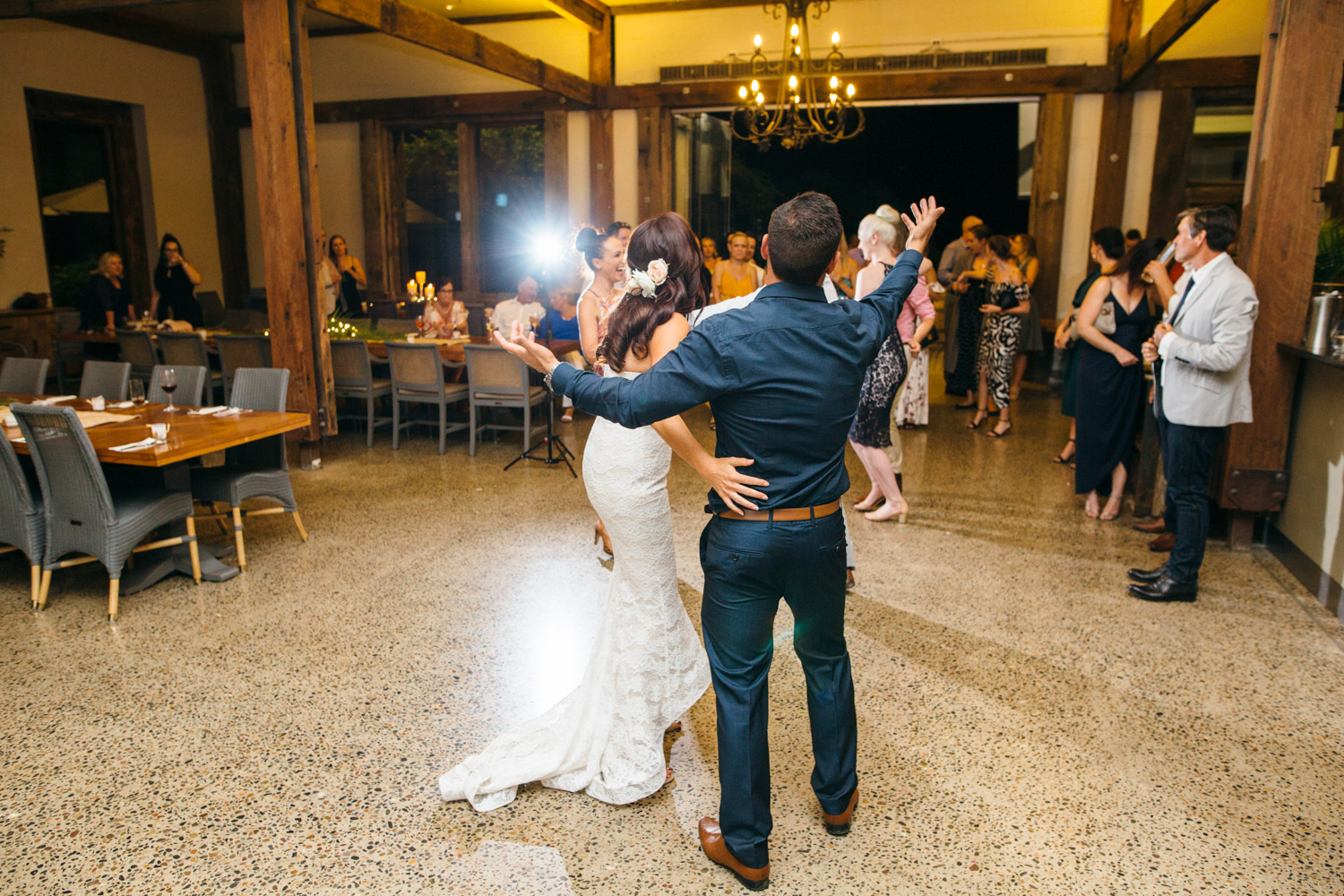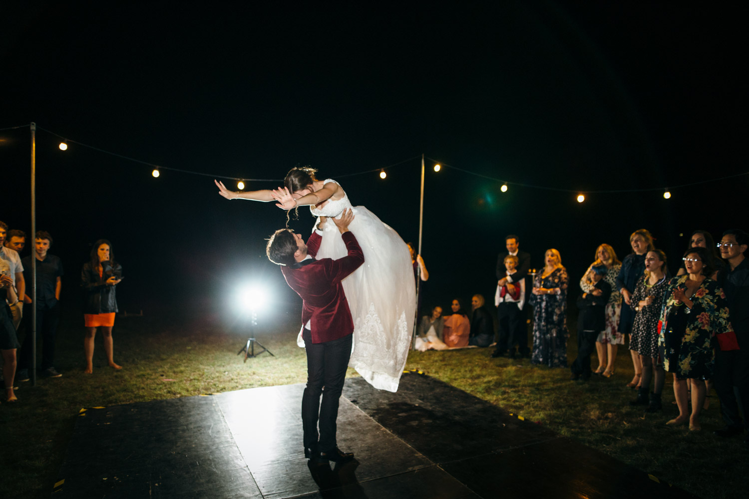 Aimee and JF’s Hunter Valley wedding ended with the couple’s first dance under festoon lights before the dancefloor opened for everyone else. Aimee and JF performed their rehearsed jive featuring a great lift (see some images below).
