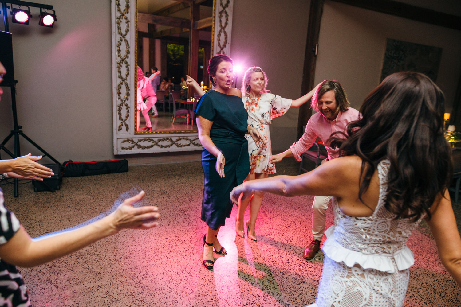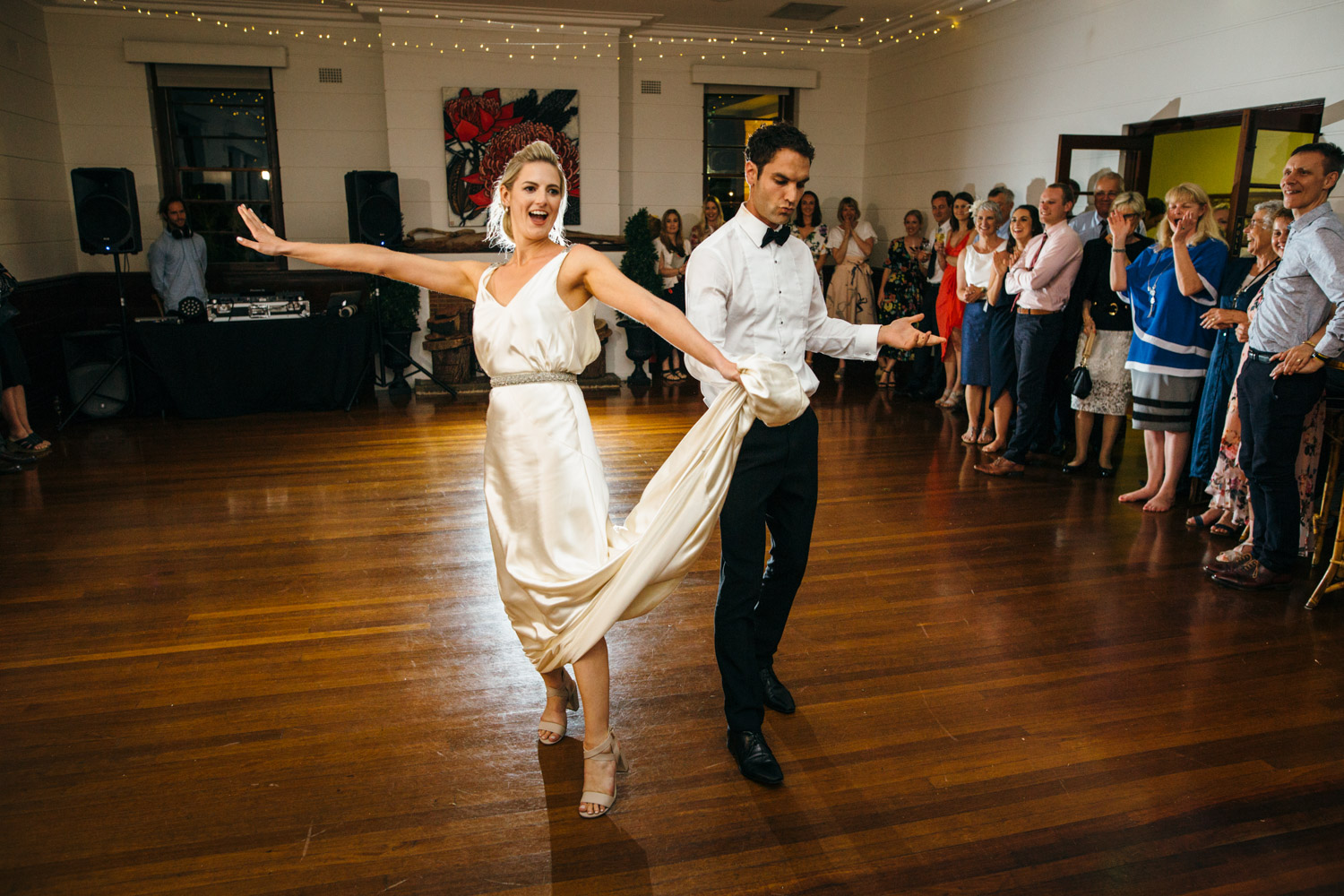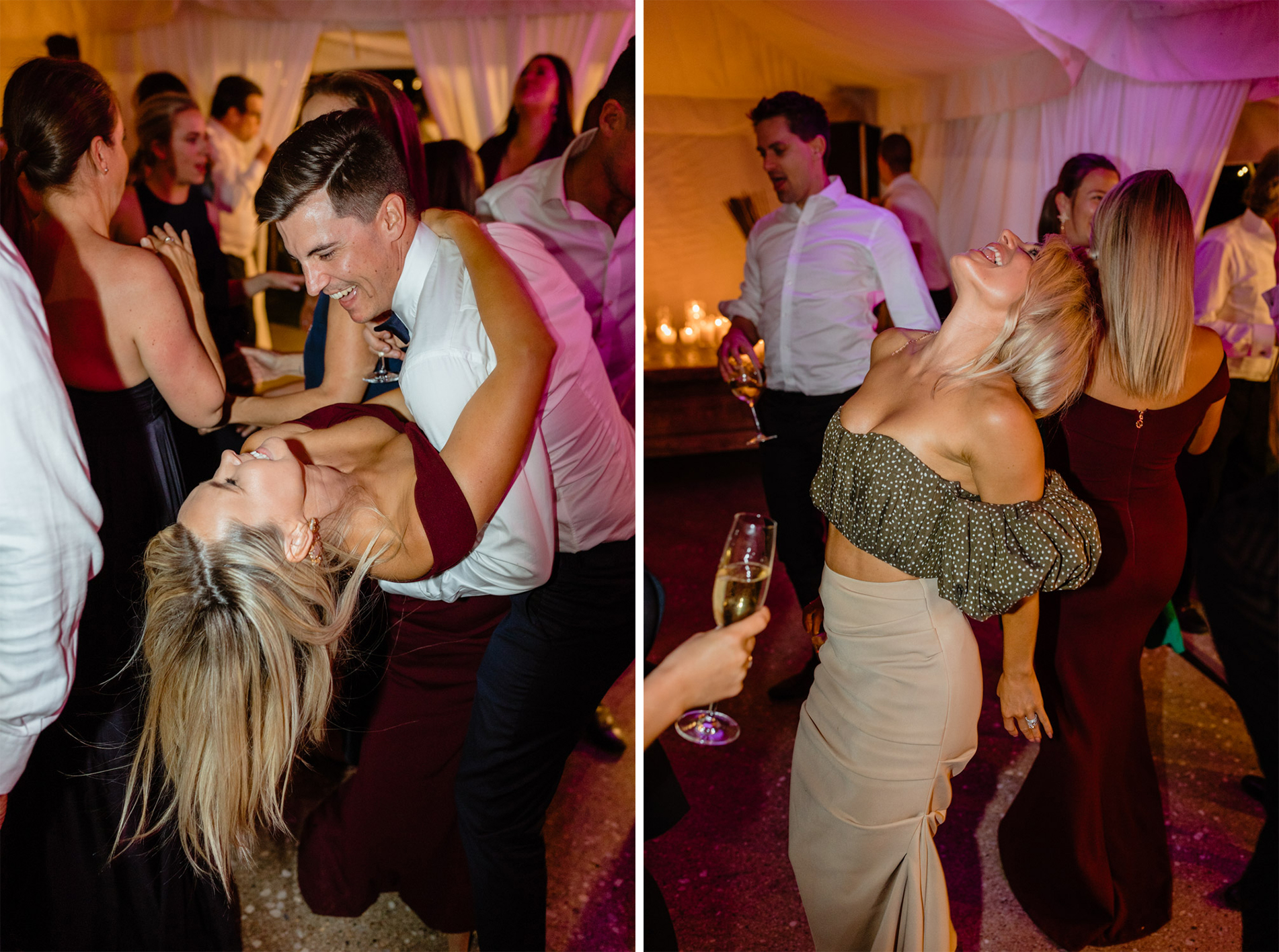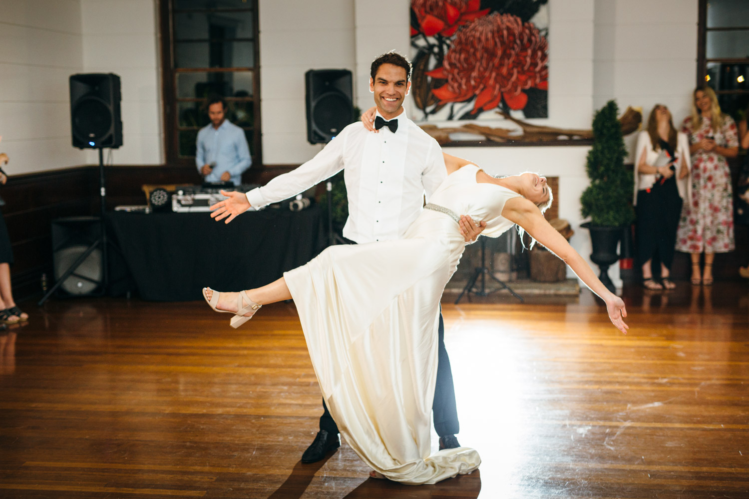 Aimee and JF’s Hunter Valley wedding ended with the couple’s first dance under festoon lights before the dancefloor opened for everyone else. Aimee and JF performed their rehearsed jive featuring a great lift (see some images below).