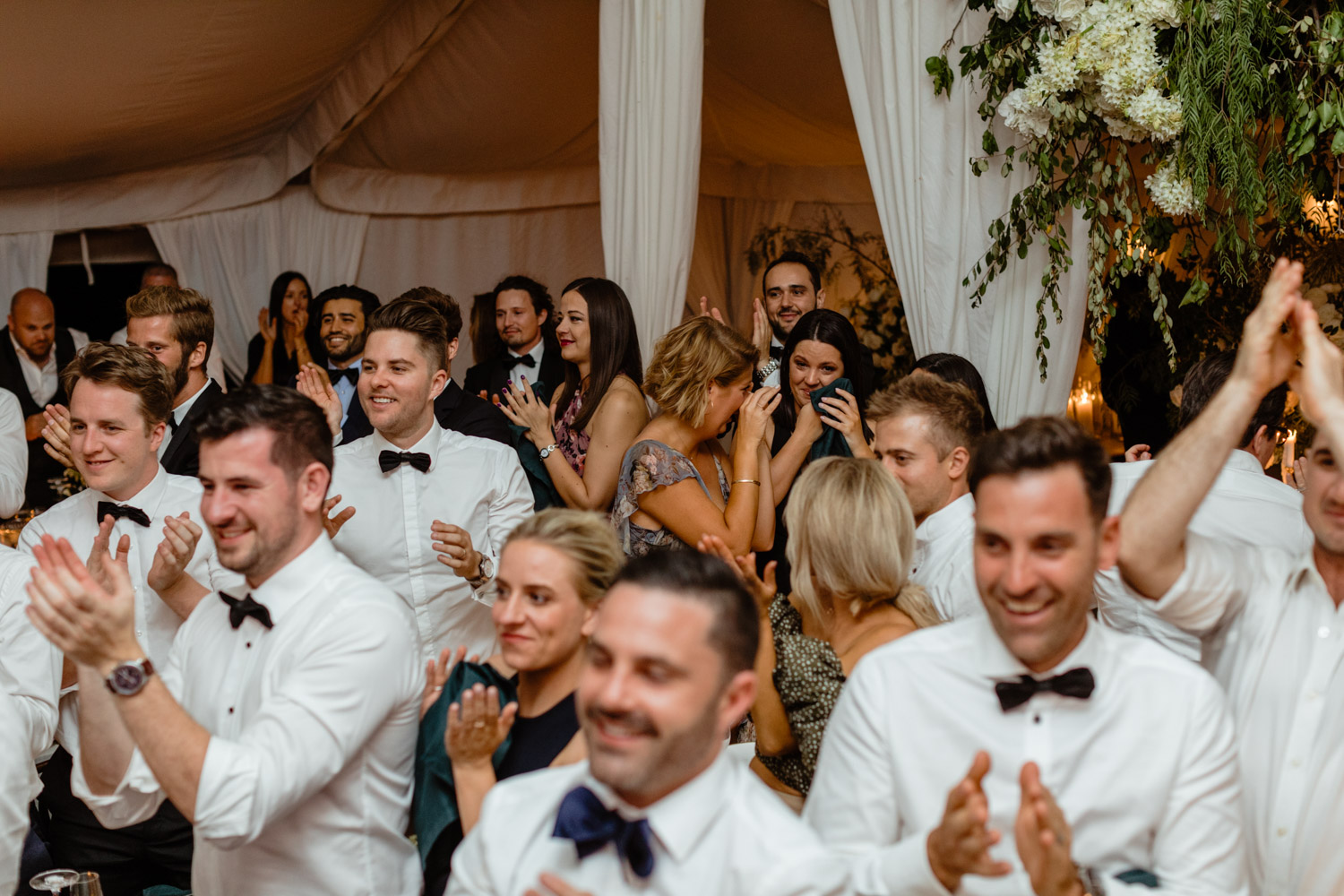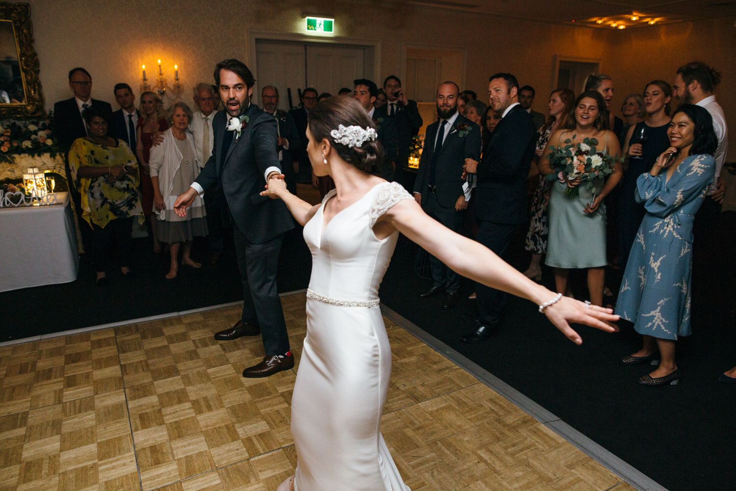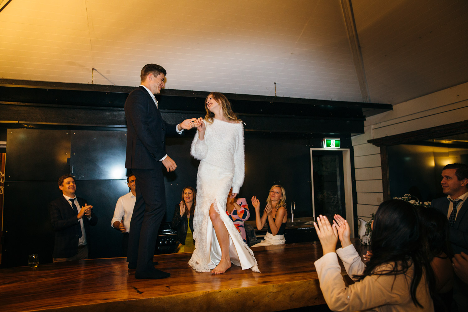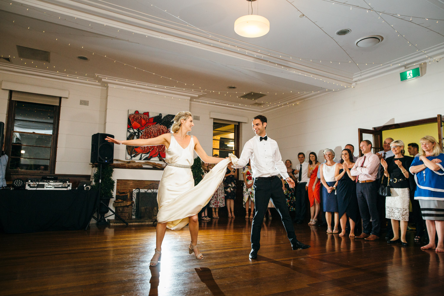 Aimee and JF’s Hunter Valley wedding ended with the couple’s first dance under festoon lights before the dancefloor opened for everyone else. Aimee and JF performed their rehearsed jive featuring a great lift (see some images below).
