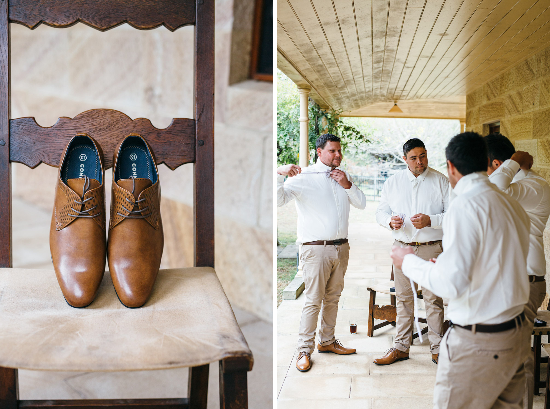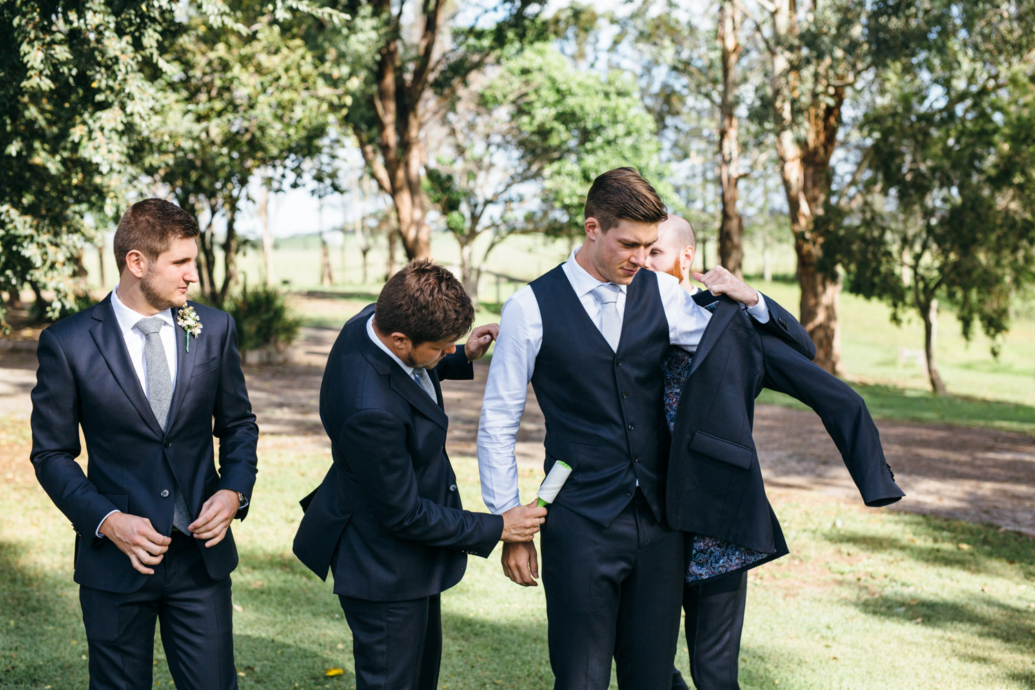 I was very much looking forward to photographing Aimee and JF’s Hunter Valley wedding because I knew that I was in for a really fun day. JF and his groomsmen get ready at the Wattle Lodge, a quaint cottage just outside of Singleton, whereas Aimee and her bridesmaids got ready in a nearby hotel.