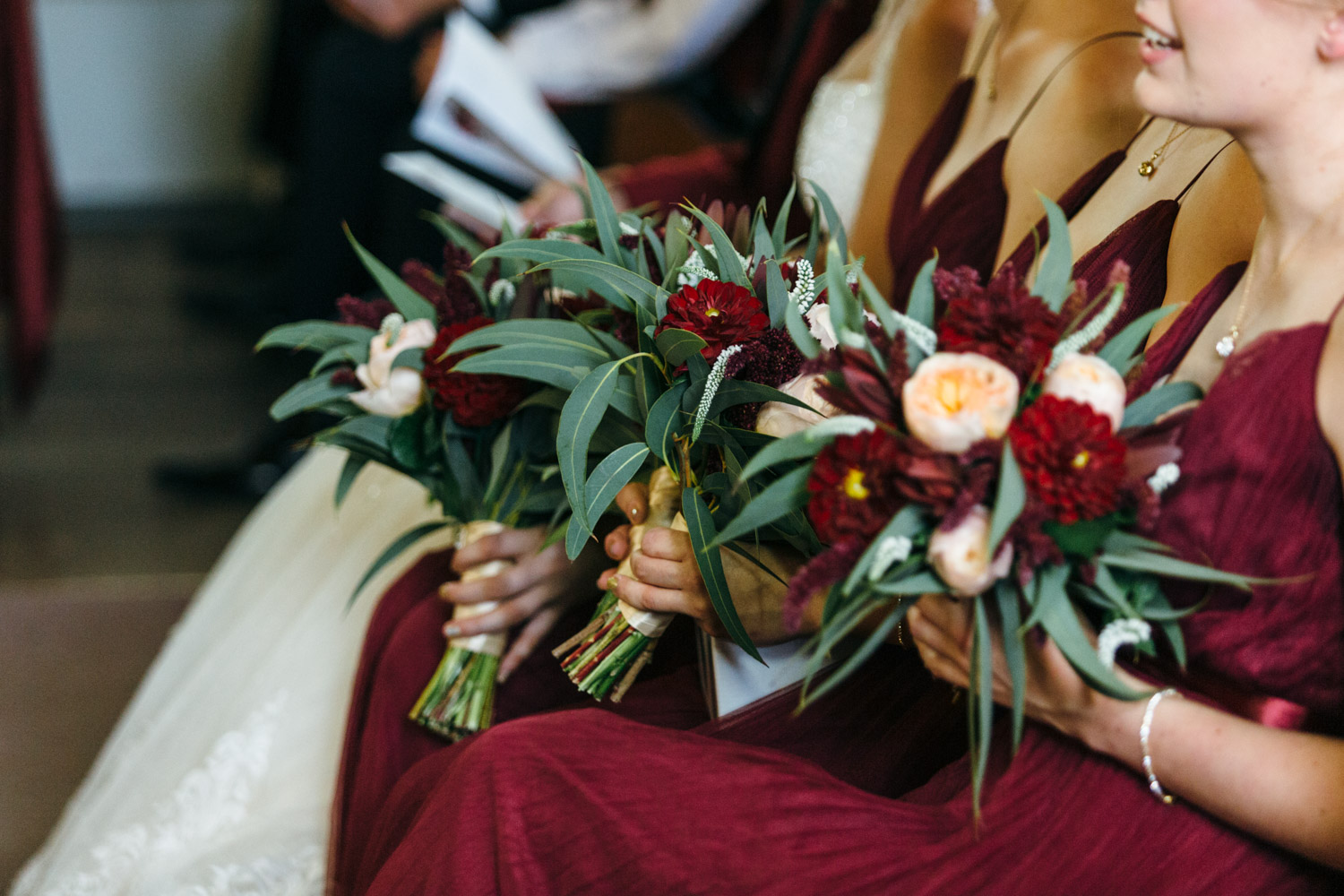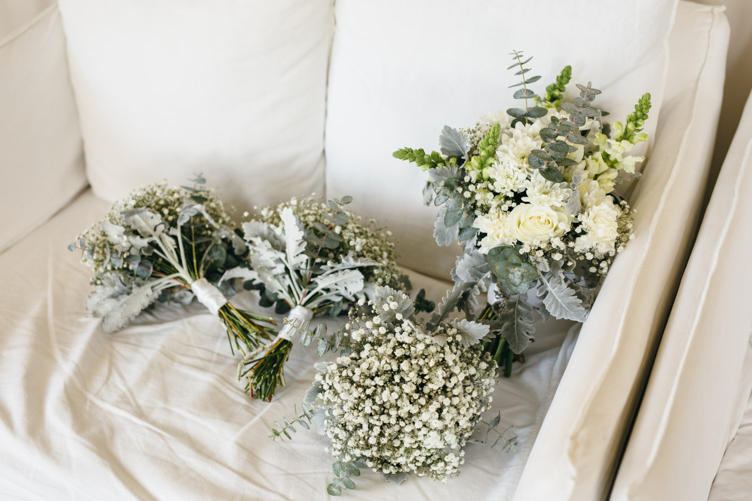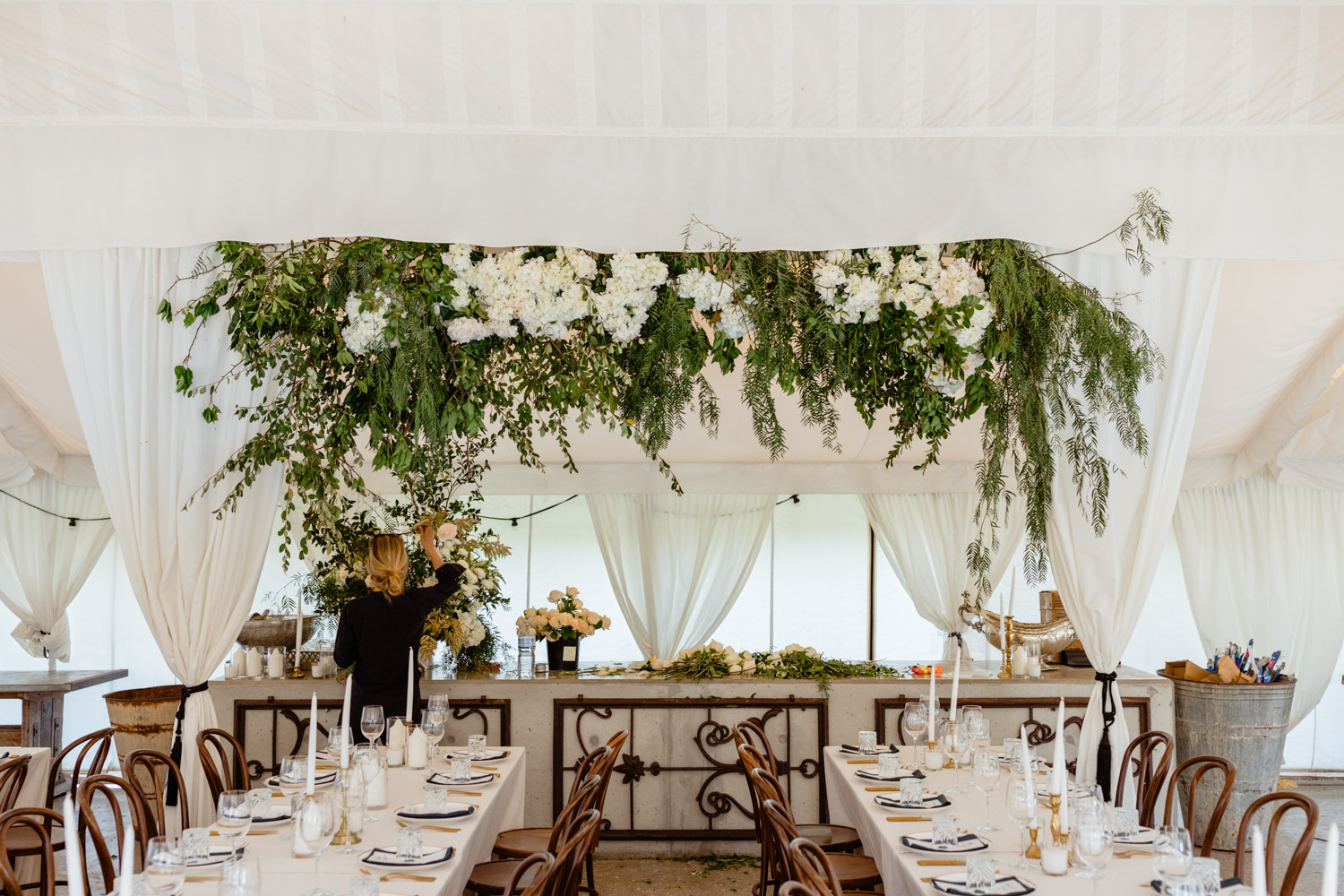 My day started at Wallalong House with Emma and her bridesmaids. Inside the homestead I captured a range of details (including Emma’s beautiful dress in the front living room) and then ventured out to the marque to see Emma’s florist finishing the floral arrangements. Emma’s wedding was always going to be on point – she’s a professional events planner, so the day was never going to disappoint.