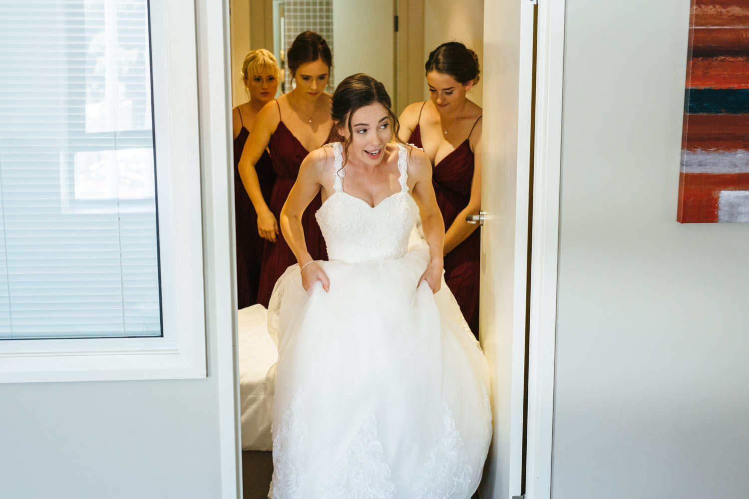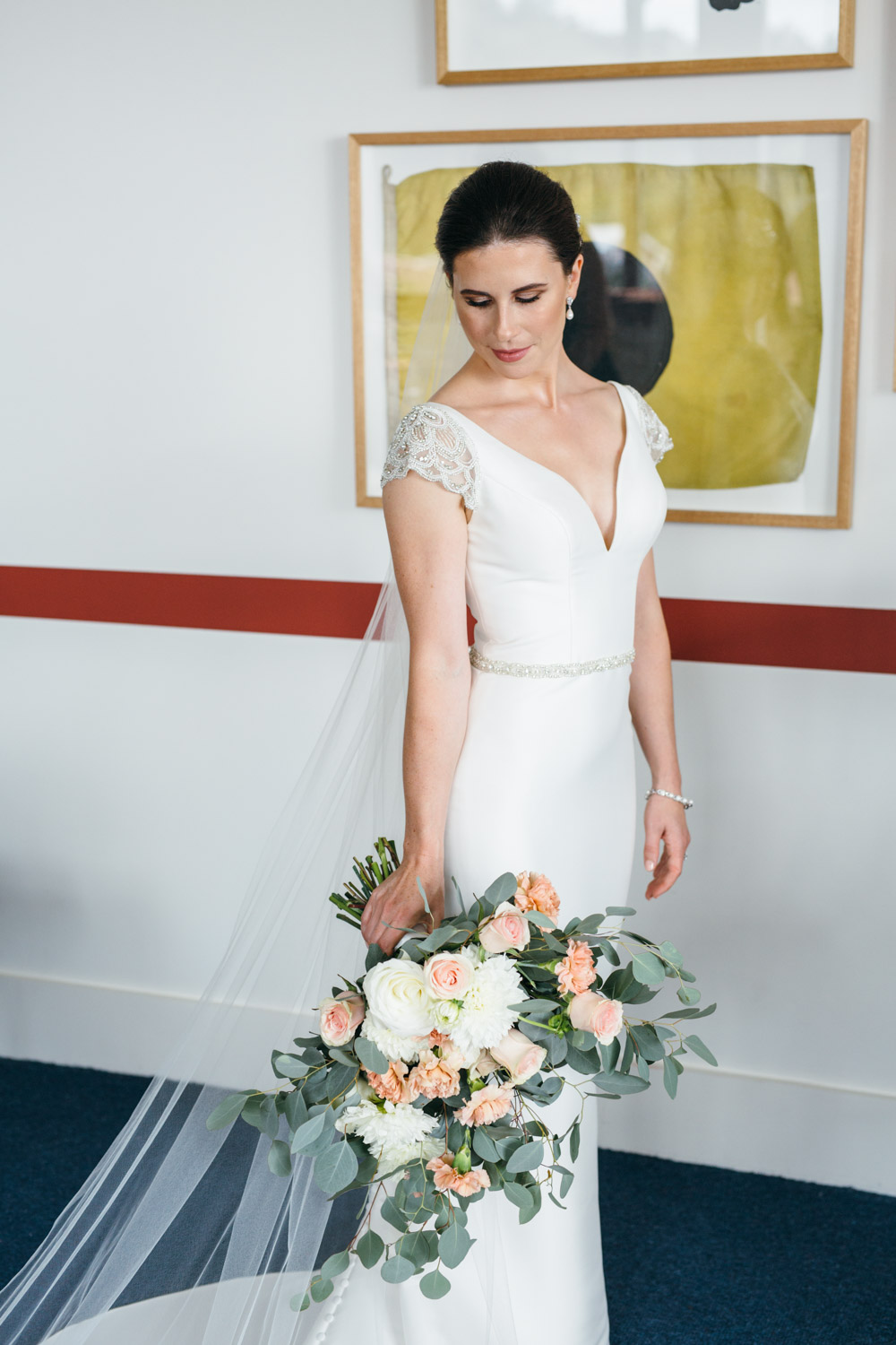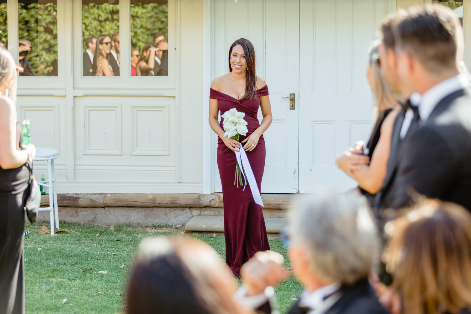 1. Plan for the wind. On almost every occasion that I have photographed weddings at Dunbar House or at Watsons’s Bay Boutique Hotel (which is next door), it has been windy. Don’t get me wrong – the wind can be an excellent assistant in wedding photos near Dunbar House, but sometimes the wind can be a real pain point for you as the bride. Sarah and her bridesmaids wore their hair up. This is a good option if you don’t want to worry about your hair in the wind. Having your hair in either a low or high bun keeps it neat and tidy all day.