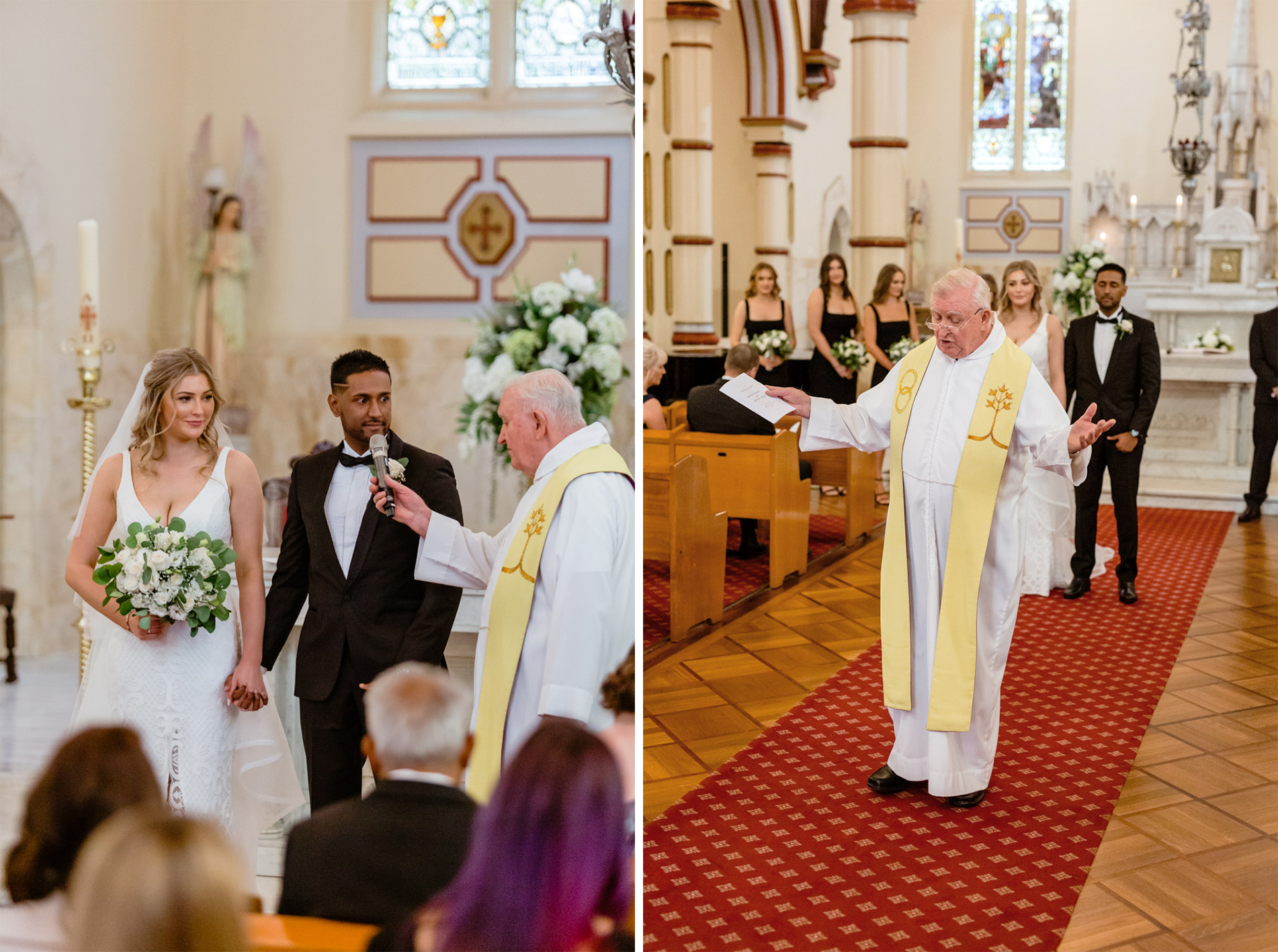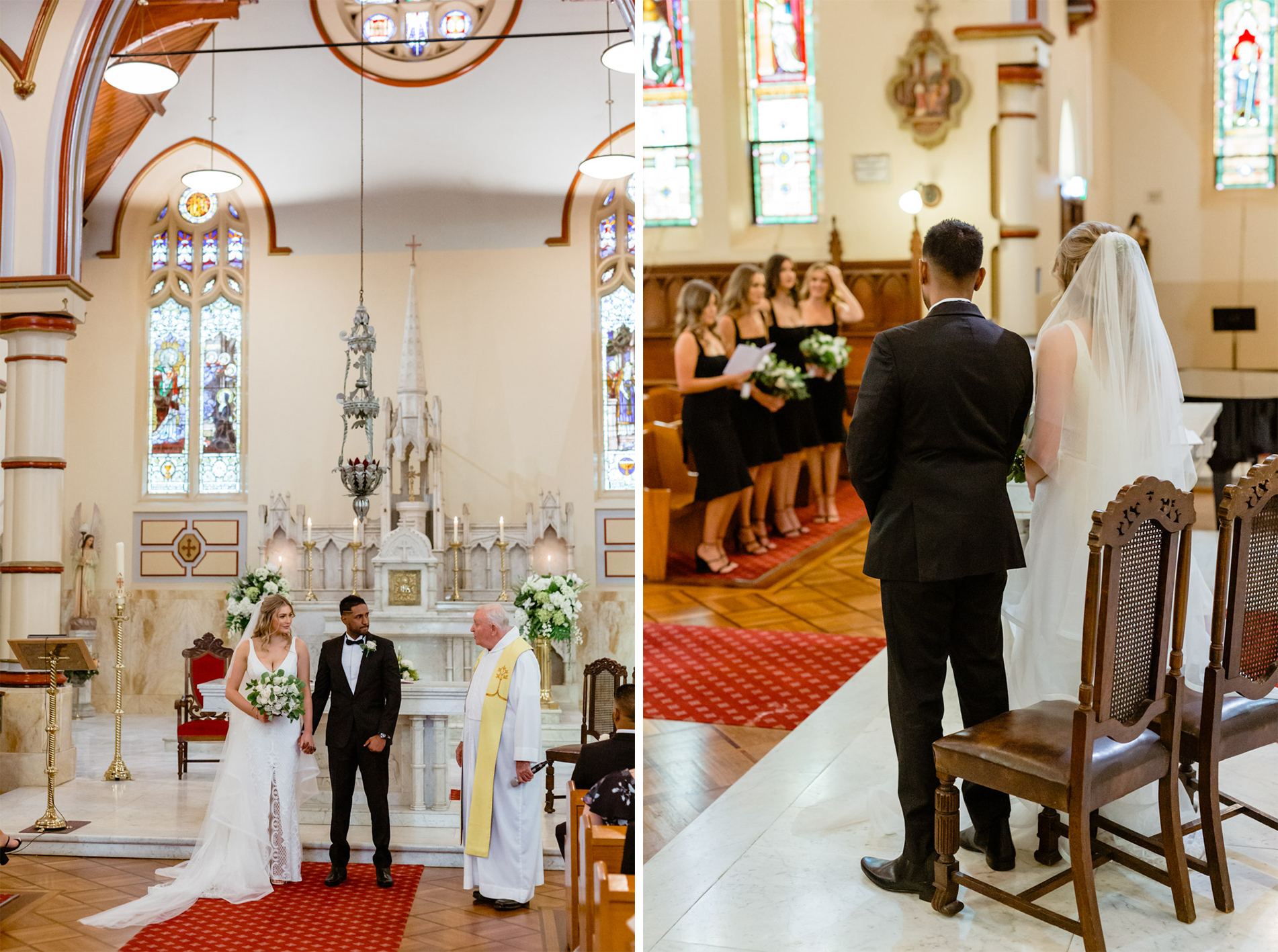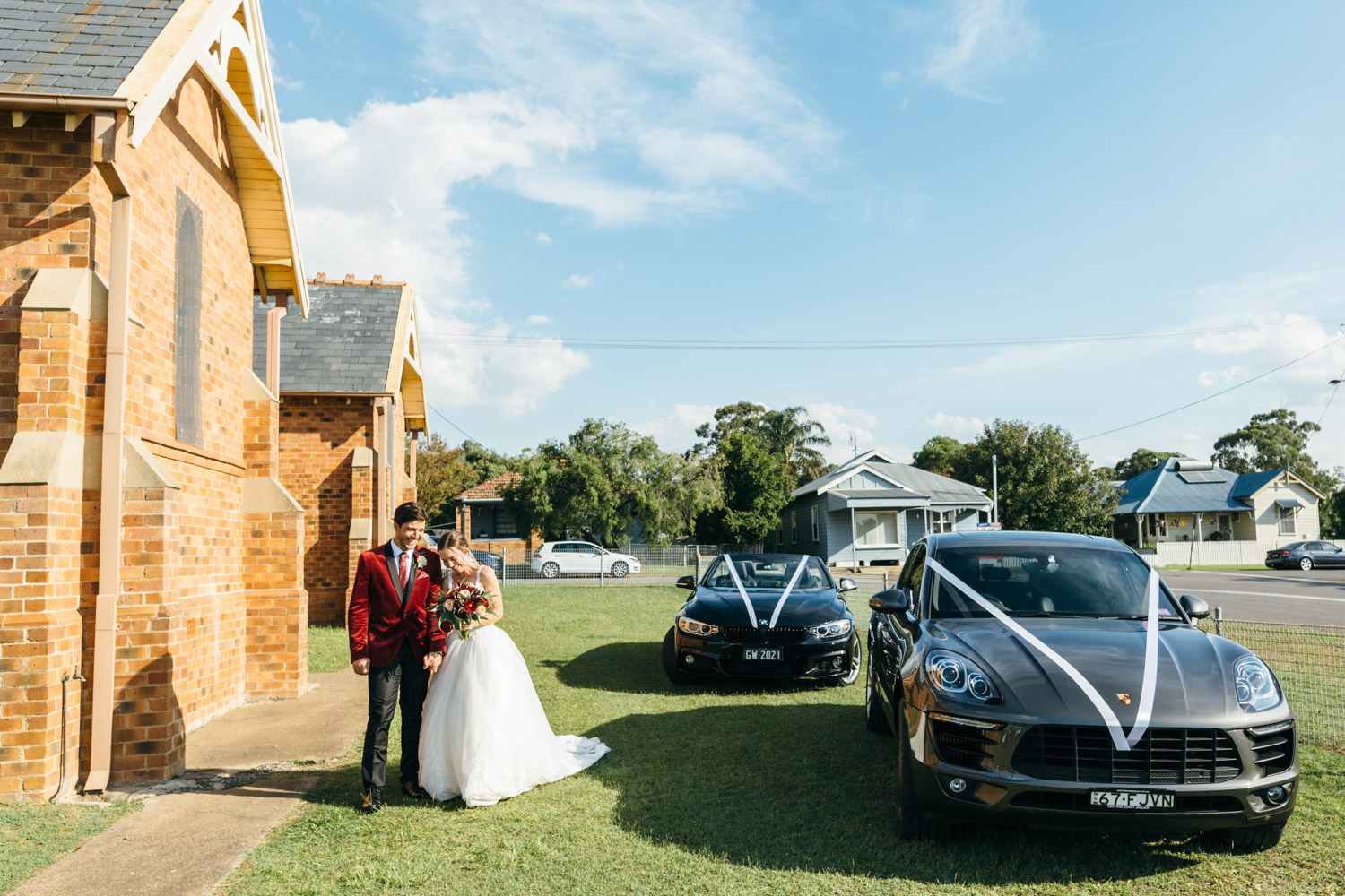 I actually met Aimee and Jacobus (or, JF as he is known), at Aimee’s brother’s wedding (Nathan and Chelsea) around a year earlier. I remember Aimee and JF were the ushers at the entrance to the church; guiding people inside and distributing the program for the church service. Around a year later, Aimee emailed me to ask if I’d be available to photograph her wedding to JF in the Hunter Valley, and so this blog post is about Aimee and JF’s Hunter Valley Wedding in Singleton. Ps, the frame below is Aimee and JF ushering guests at Nathan and Chelsea’s wedding a year earlier.