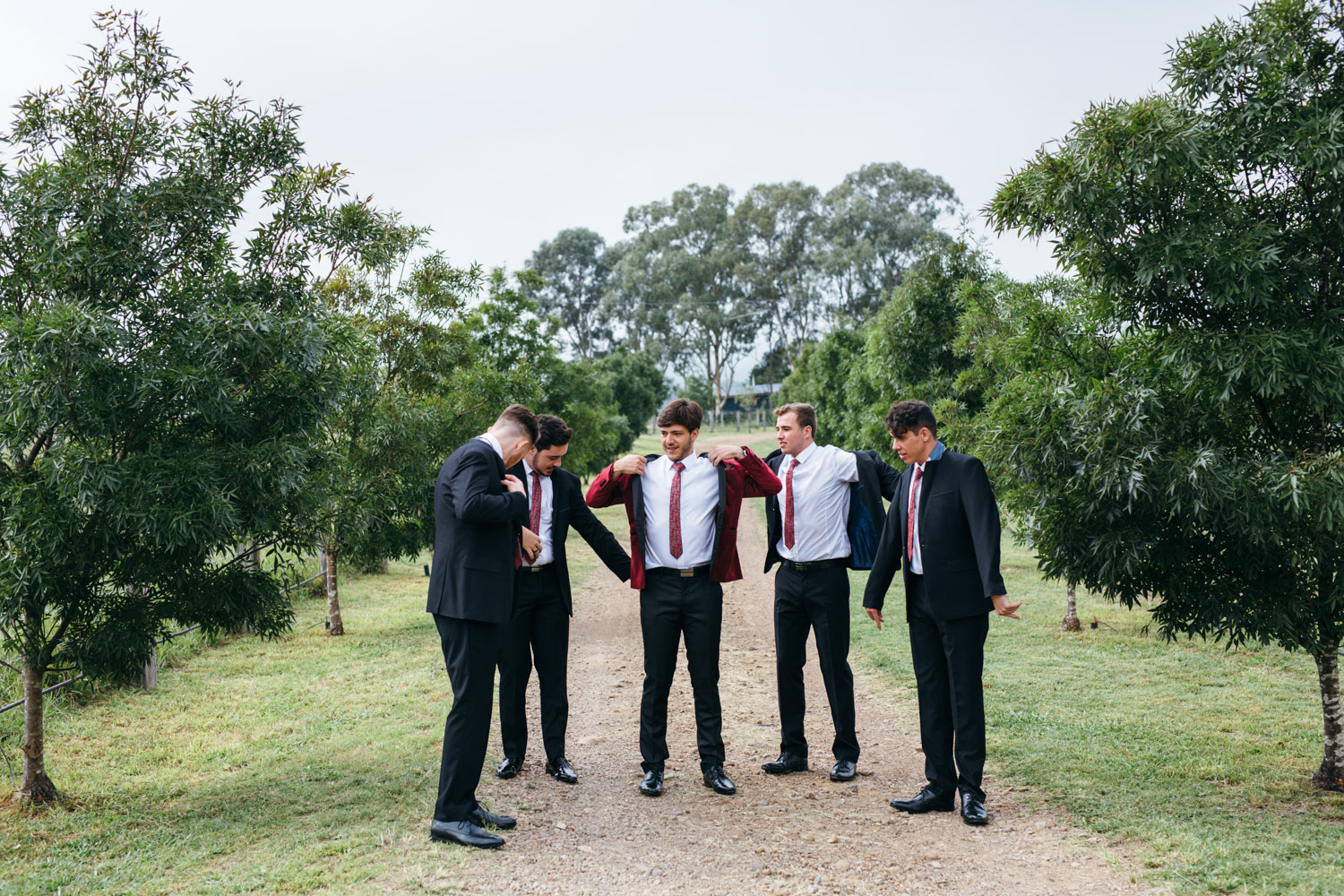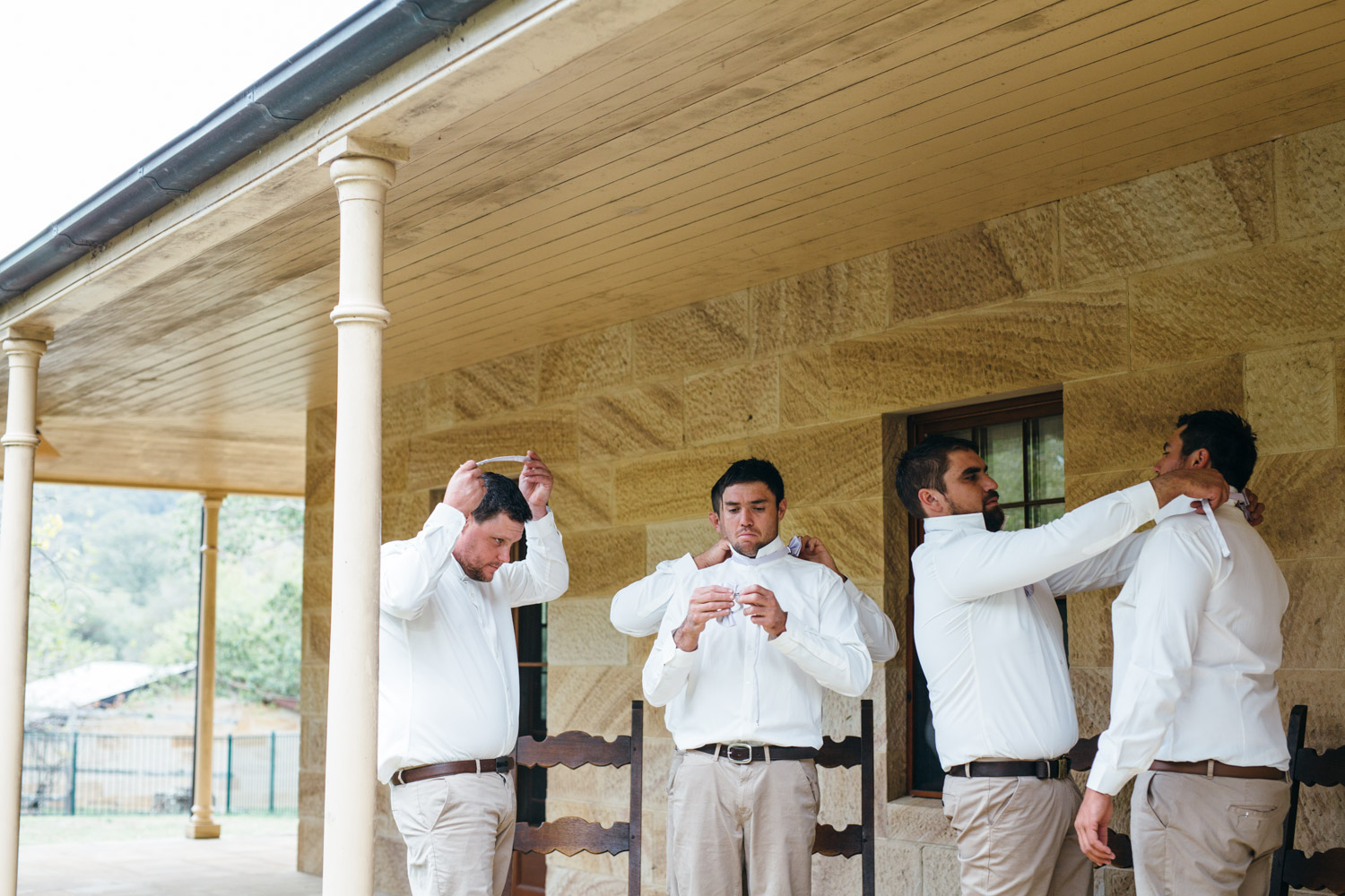 Whilst Jess was getting ready, Ben and his groomsmen were off the property to visit a family member who was unfortunately unable to make it to the ceremony. On their return, they got dressed in the groom’s quarters located in another building, about 1 kilometre away from the Manor (this helps you paint a picture of how large Fernhill Estate is!).