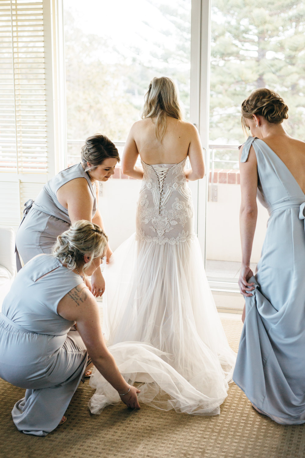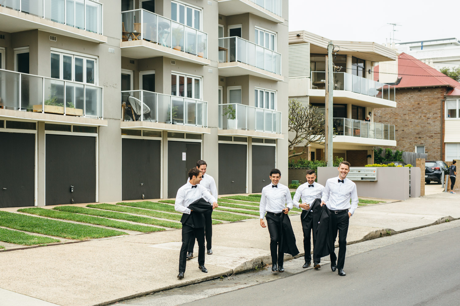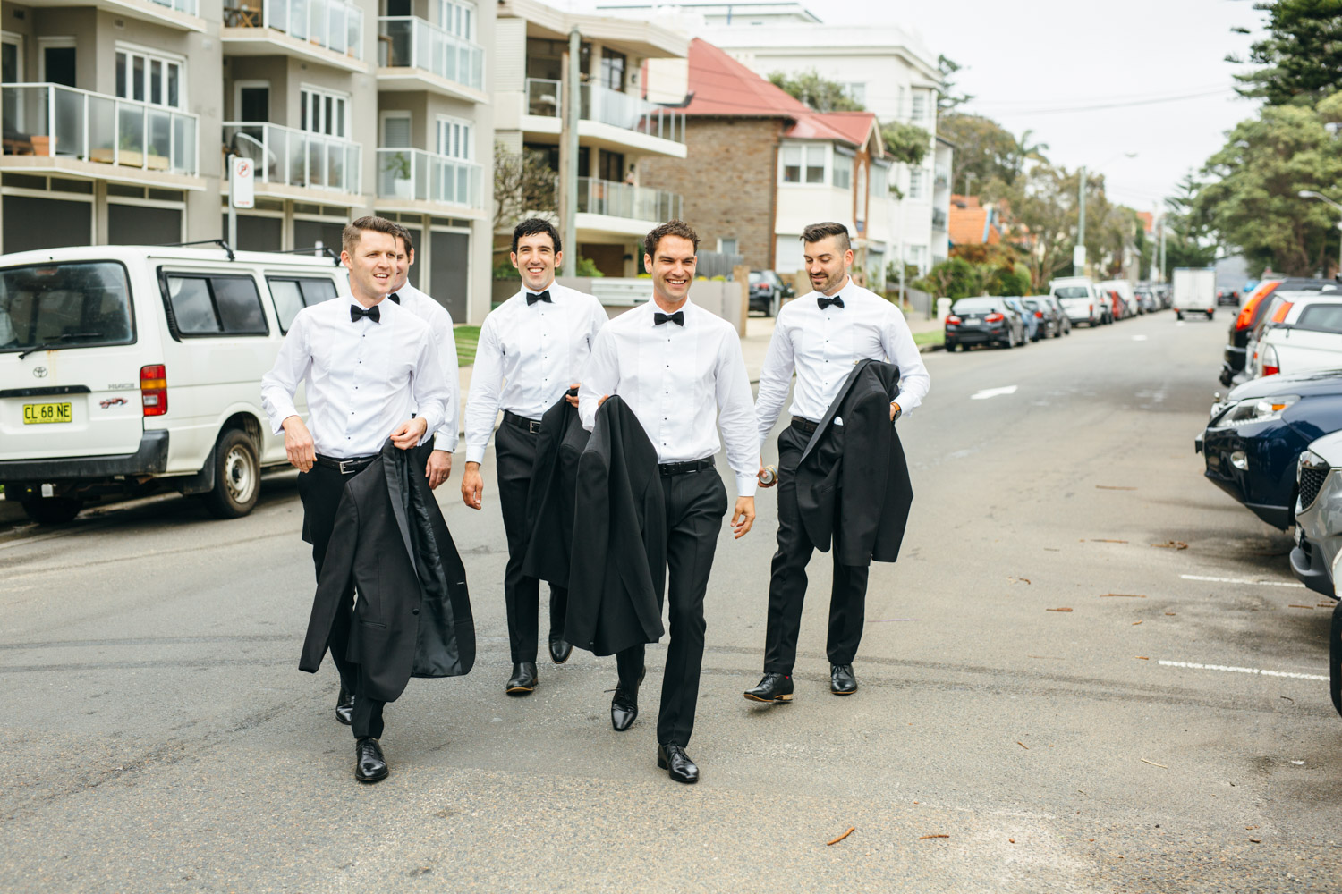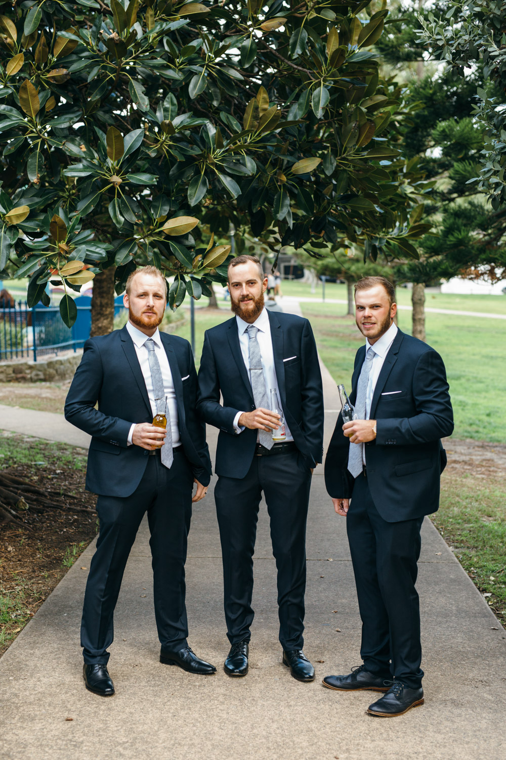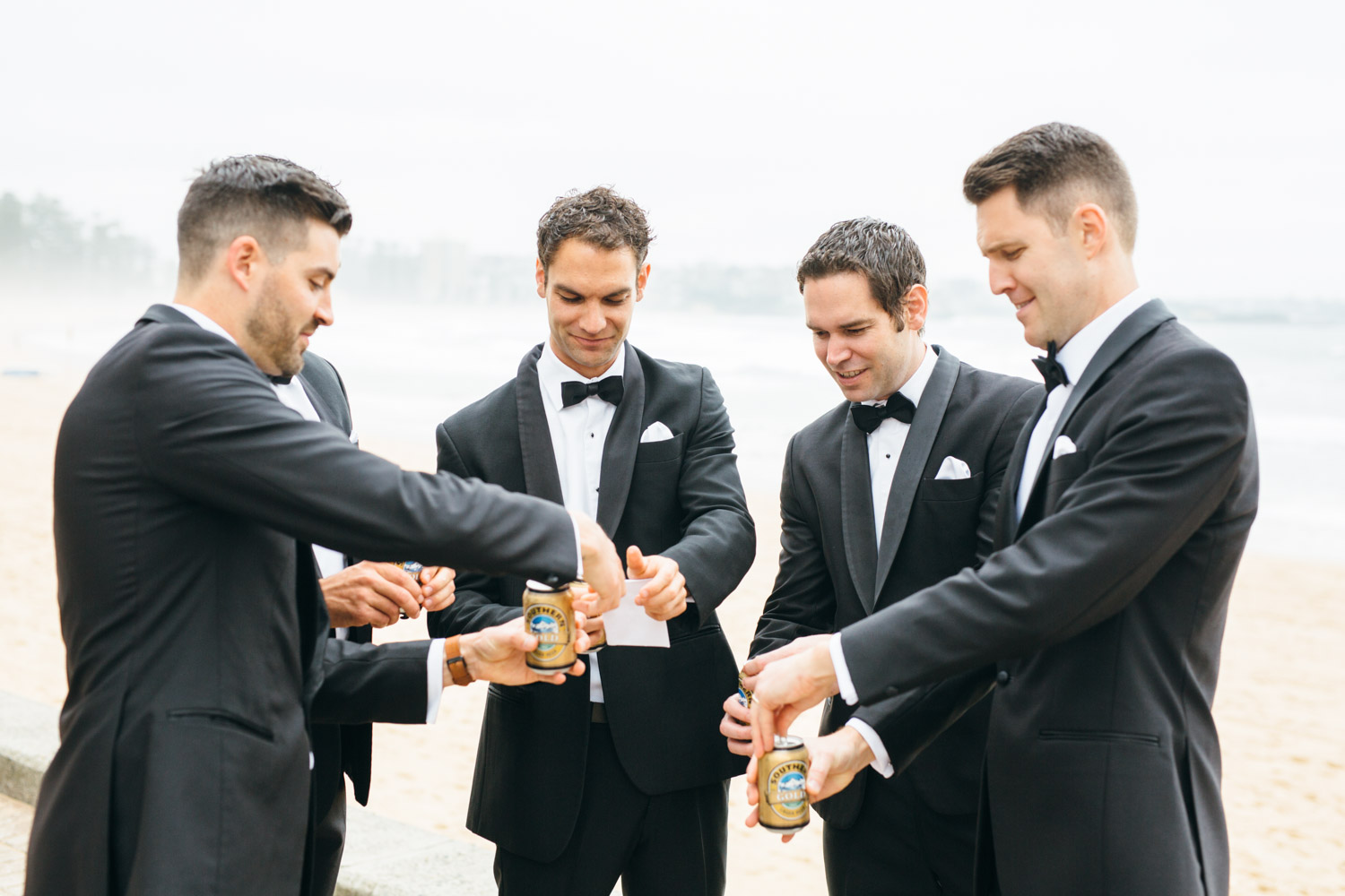 Tom and Bridget’s wedding day started off in Manly, just down the road from Milestone Events. Tom got ready a short stroll from Manly Beach, where we captured some portraits with him and his groomsmen whilst they smashed a few cans of Southern Gold Lager. Bridget and her bridesmaids got ready for the day up at Milestone Events, where they also put in the hard work styling the venue during the morning, before popping champagne (and also a can of Southern Gold).