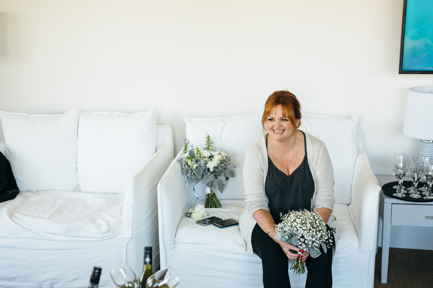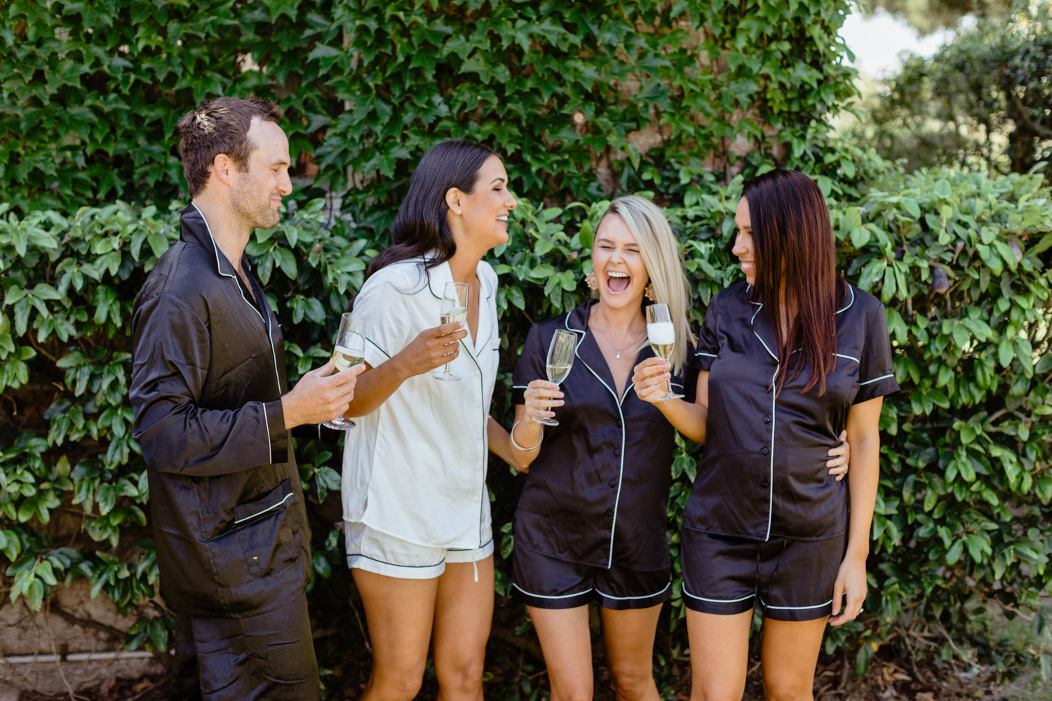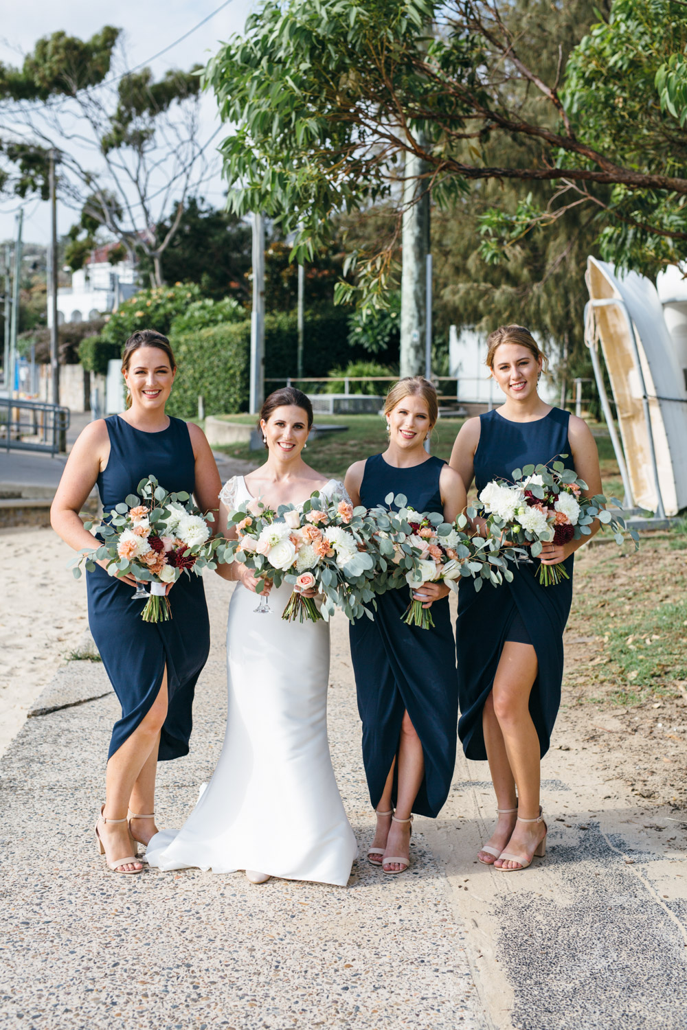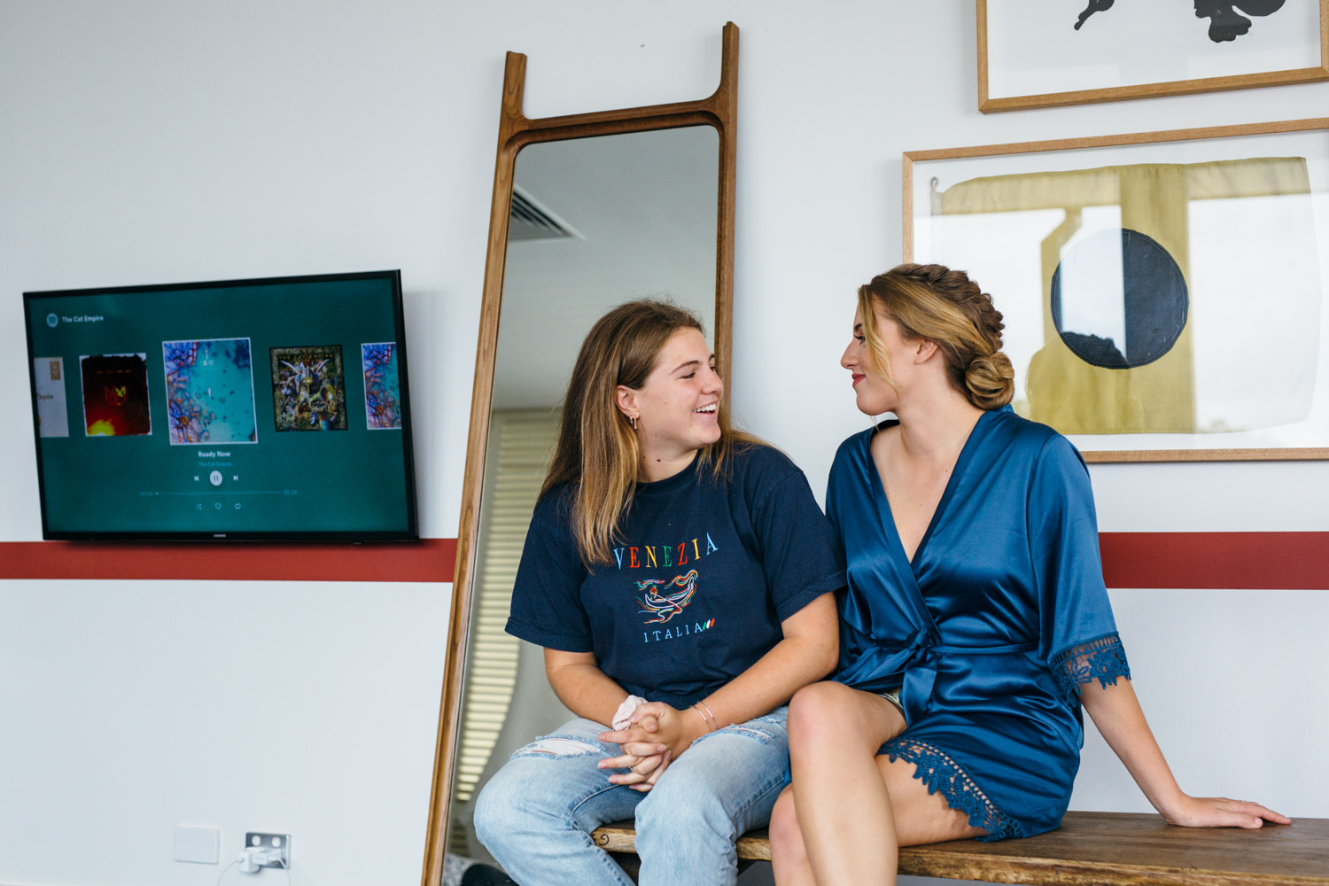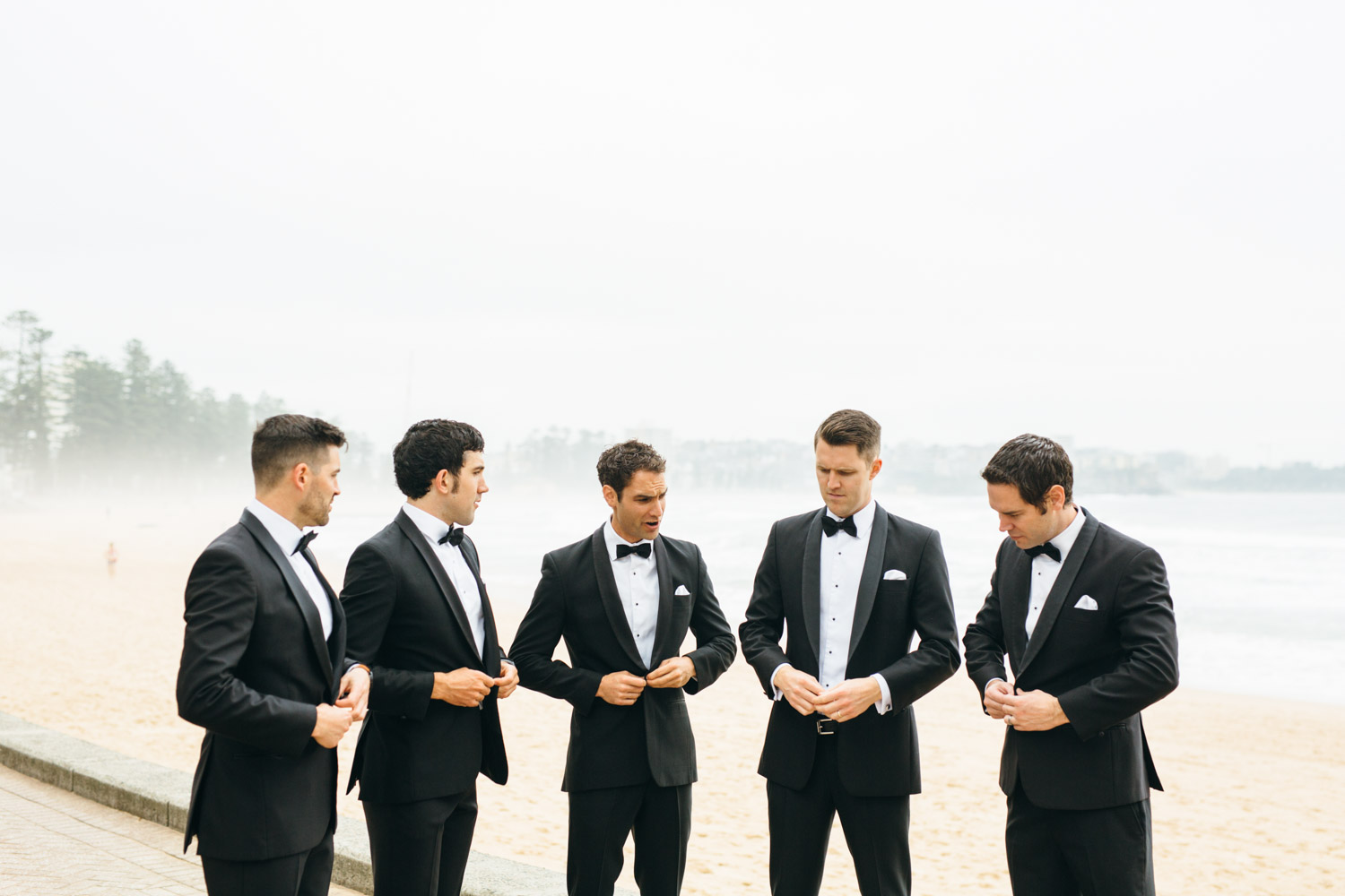 Tom and Bridget’s wedding day started off in Manly, just down the road from Milestone Events. Tom got ready a short stroll from Manly Beach, where we captured some portraits with him and his groomsmen whilst they smashed a few cans of Southern Gold Lager. Bridget and her bridesmaids got ready for the day up at Milestone Events, where they also put in the hard work styling the venue during the morning, before popping champagne (and also a can of Southern Gold).