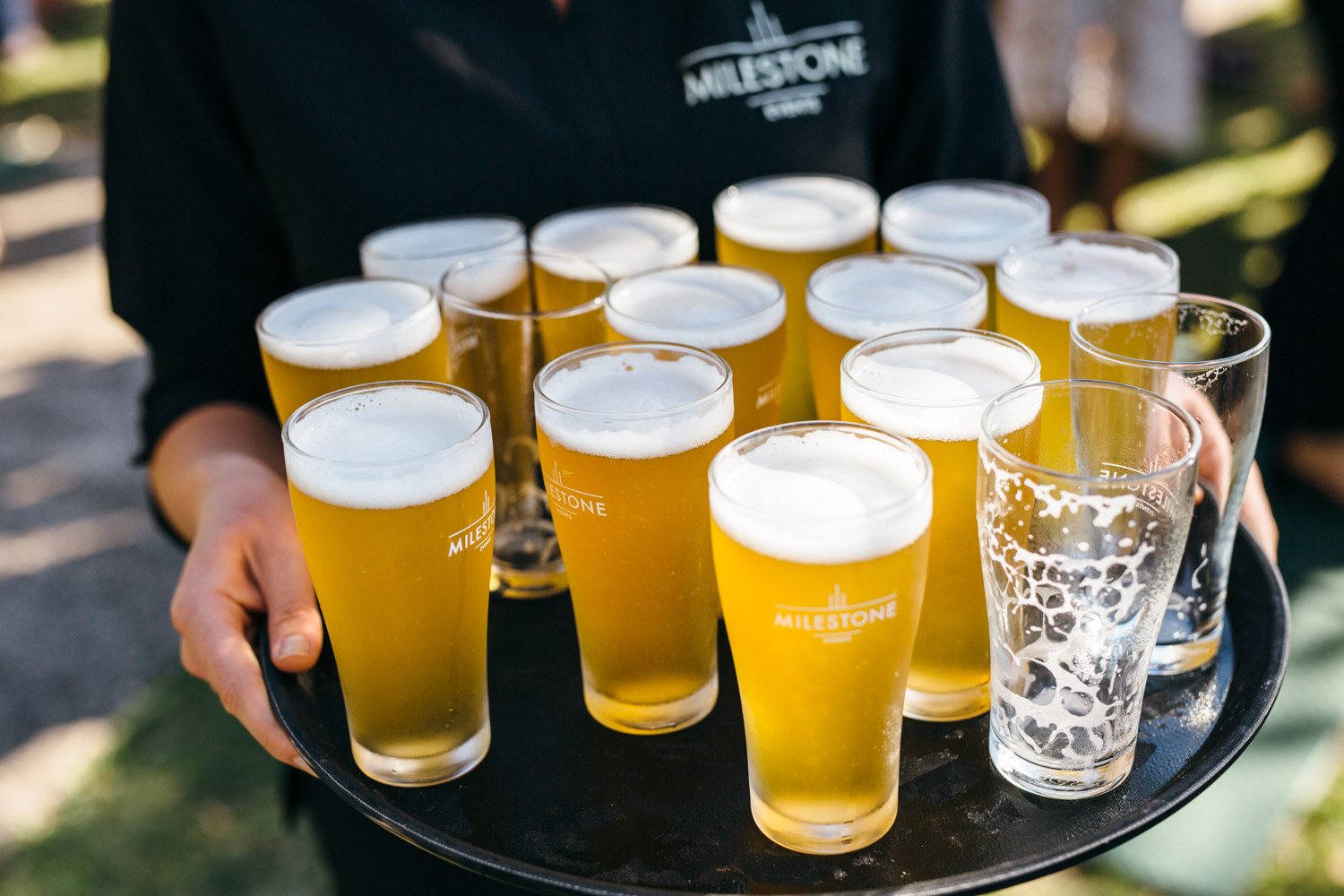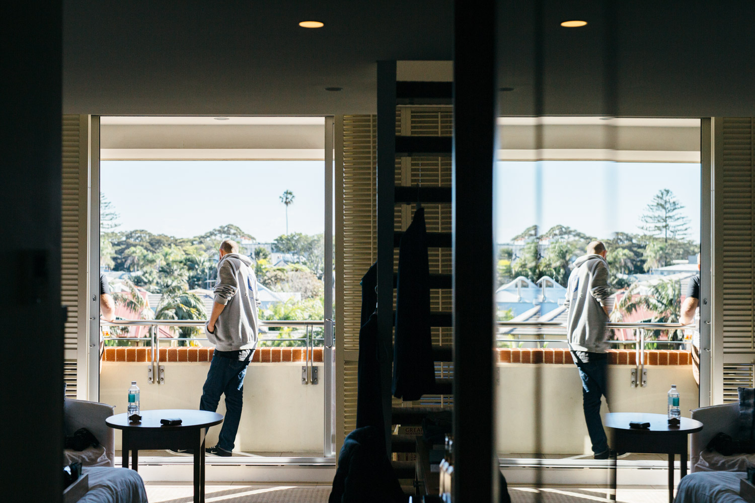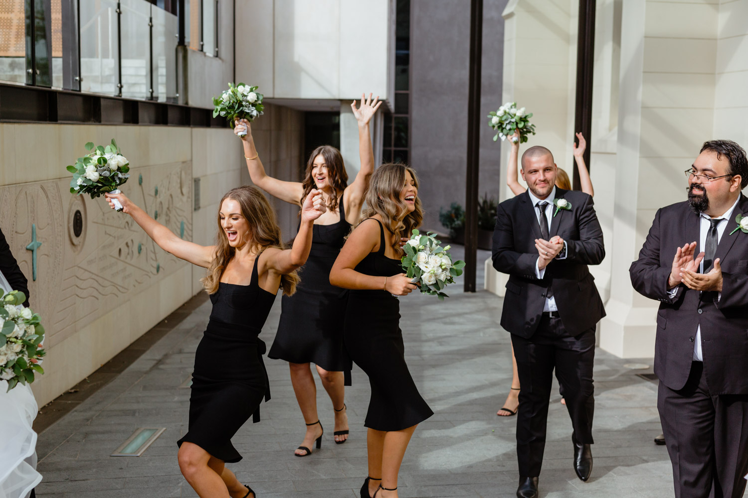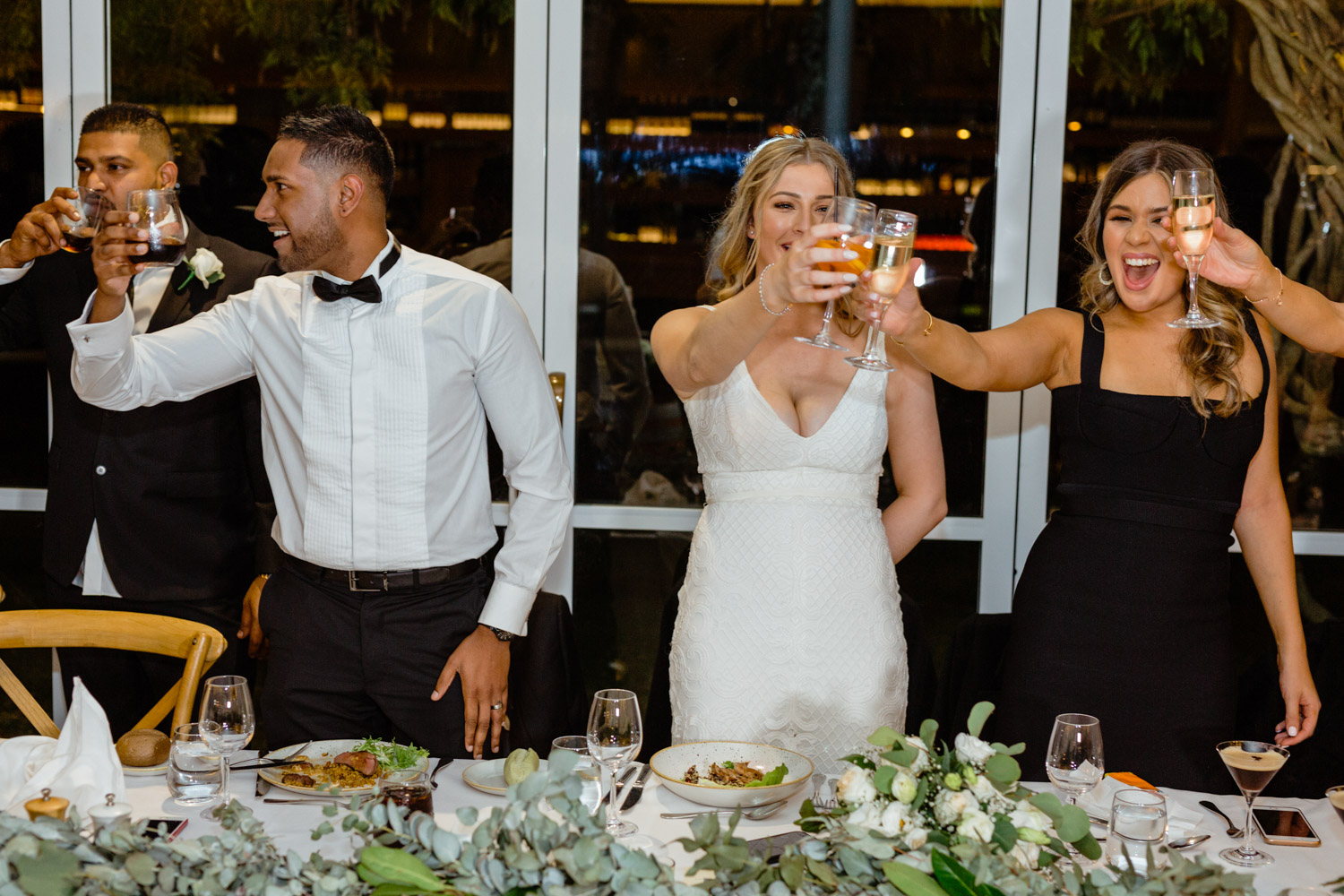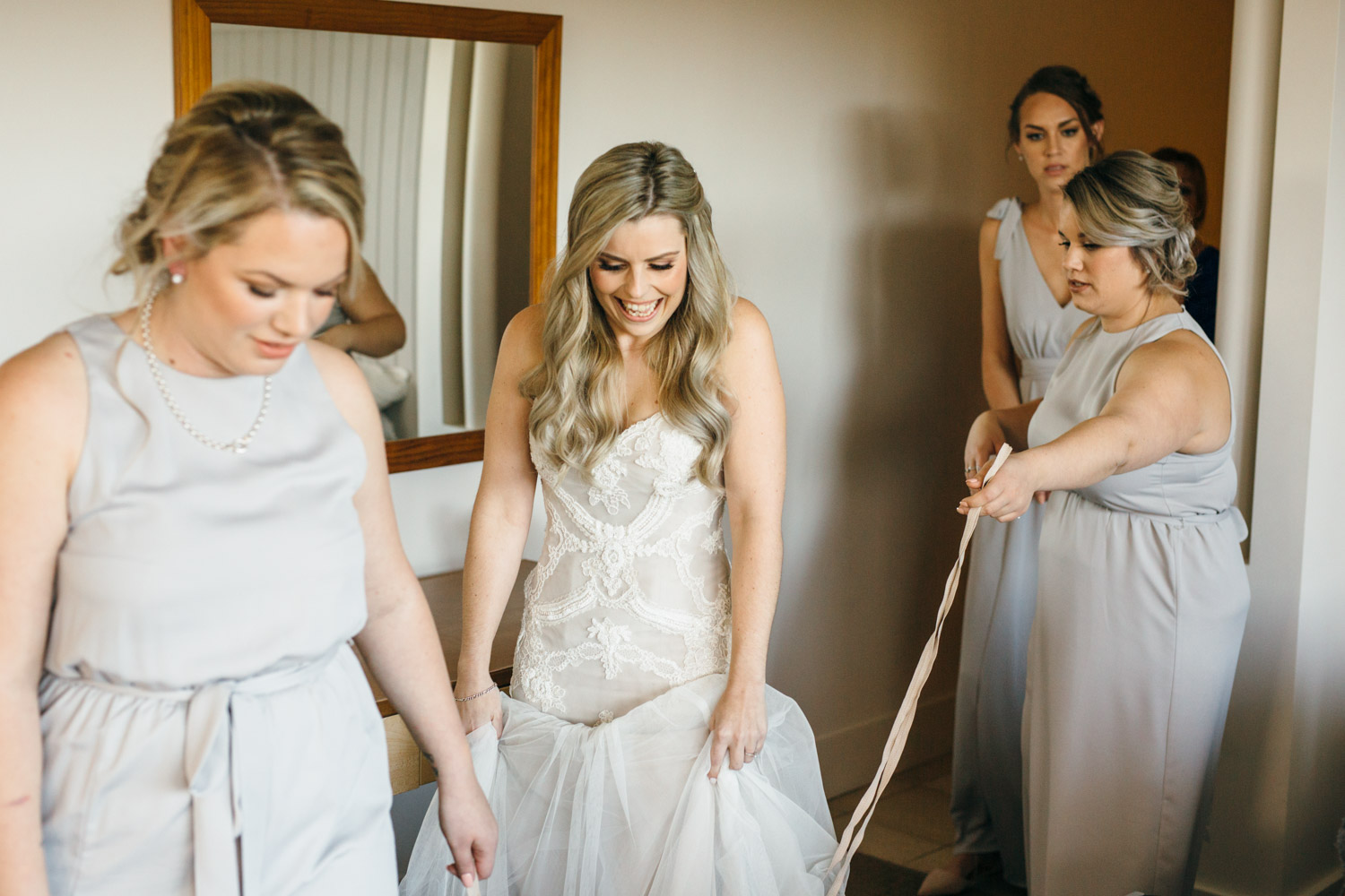 Tom and Bridget’s wedding day started off in Manly, just down the road from Milestone Events. Tom got ready a short stroll from Manly Beach, where we captured some portraits with him and his groomsmen whilst they smashed a few cans of Southern Gold Lager. Bridget and her bridesmaids got ready for the day up at Milestone Events, where they also put in the hard work styling the venue during the morning, before popping champagne (and also a can of Southern Gold).
