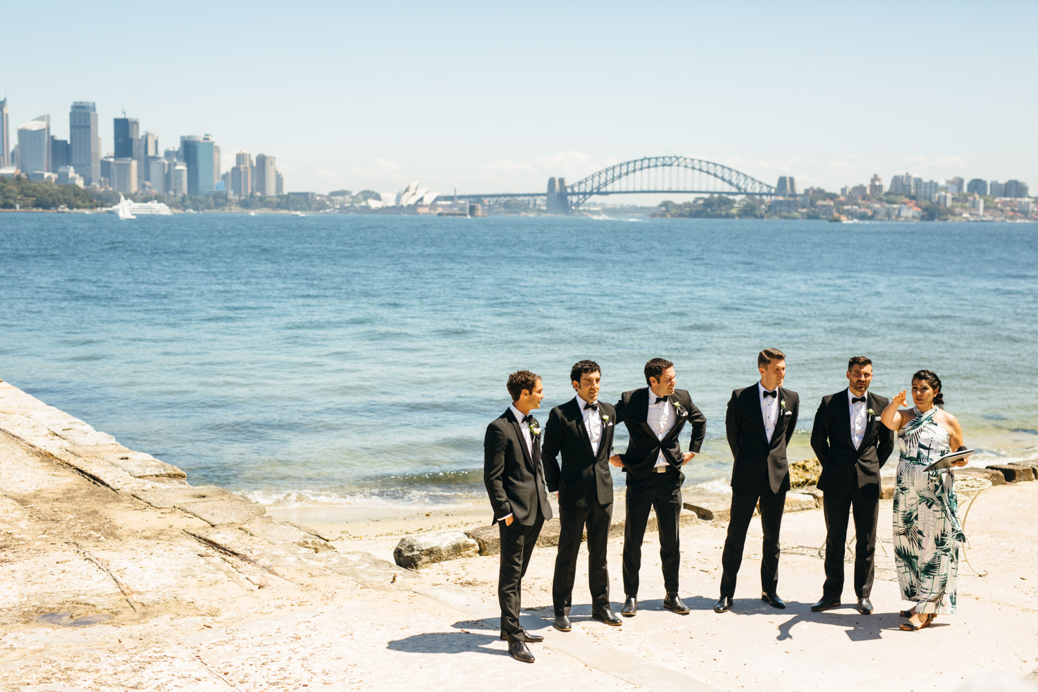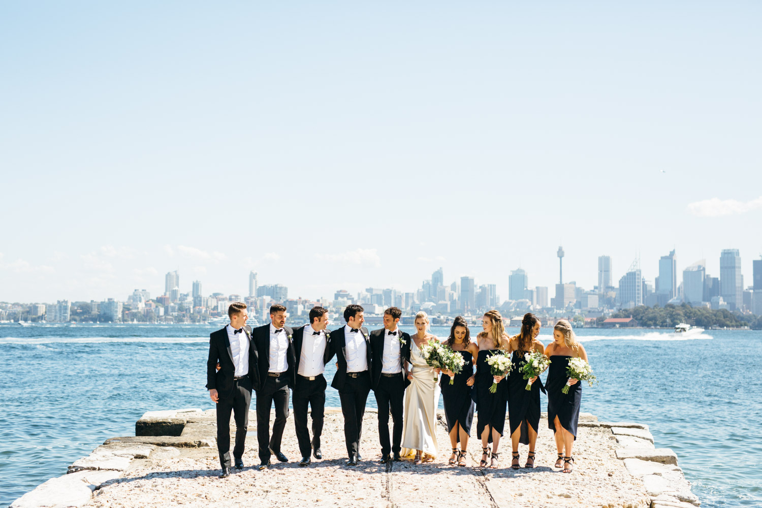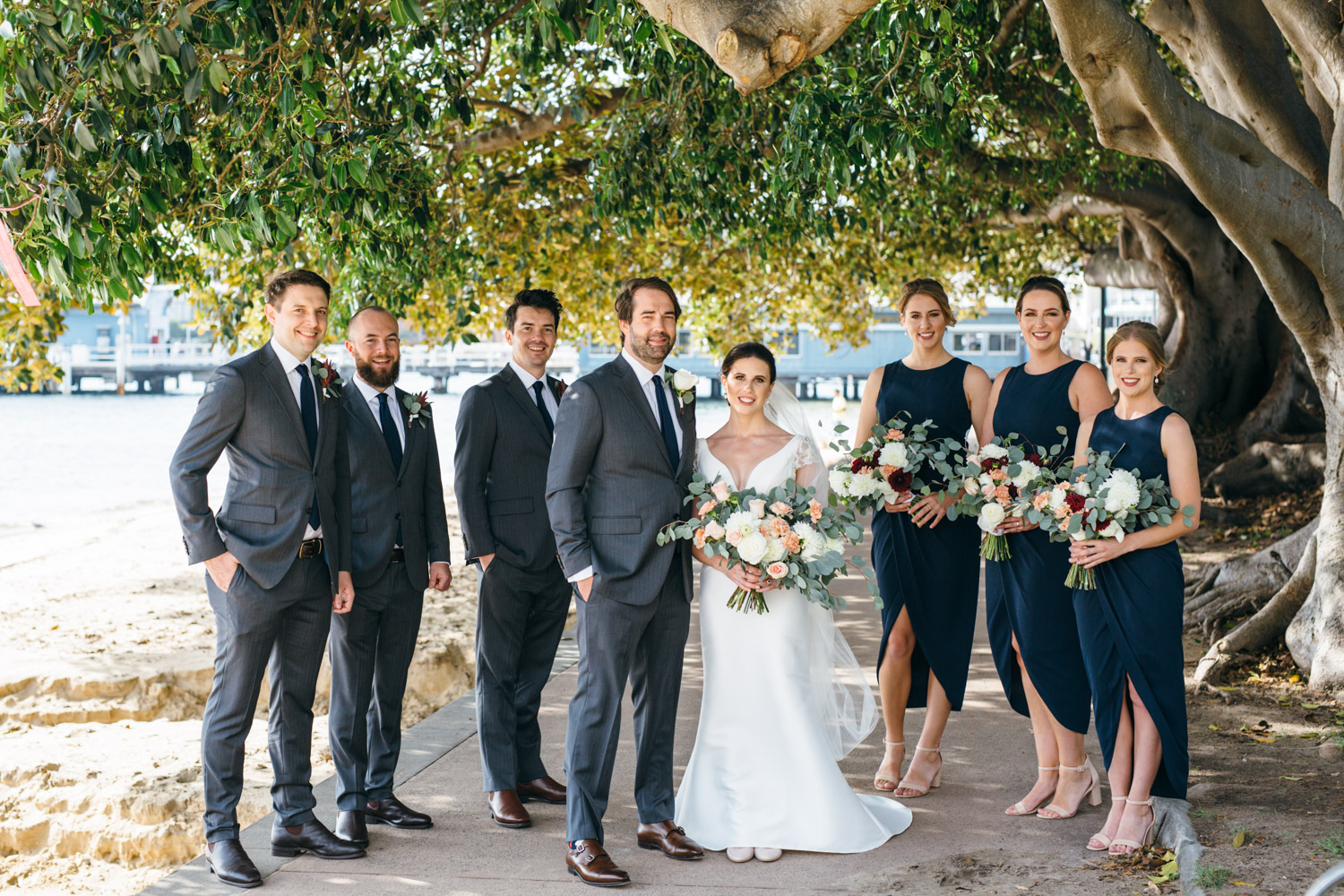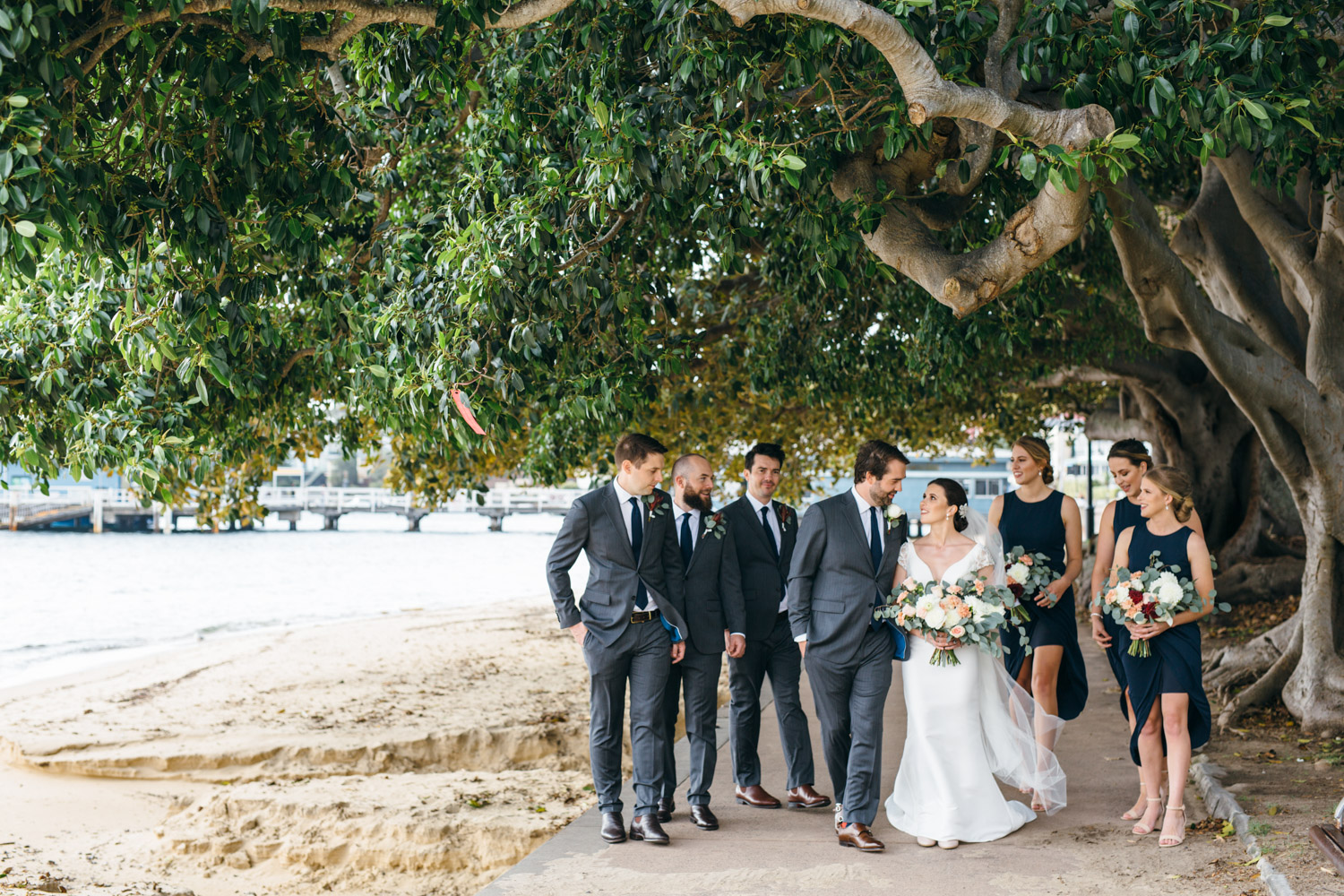 Secretly, I was looking forward to Bridget and Tom’s wedding because their ceremony was at Bradley’s Head – probably my favourite location in Sydney to shoot (note, if you’d like to see some other sessions at Bradley’s Head, check out this page). The view is simply the best! Bridget and her father walked down the staircase into the Bradley’s Head Amphitheatre. Tom and the boys were lined up with their backs to the CDB – an awesome backdrop for their guests to watch as their ceremony proceeded. We captured some family group portraits after their ceremony, and then some portraits of Bridget, Tom and their bridal party, before heading back to Milestone Events for the reception.