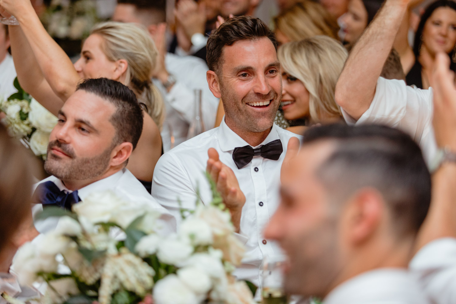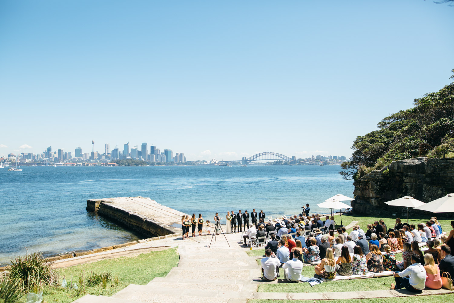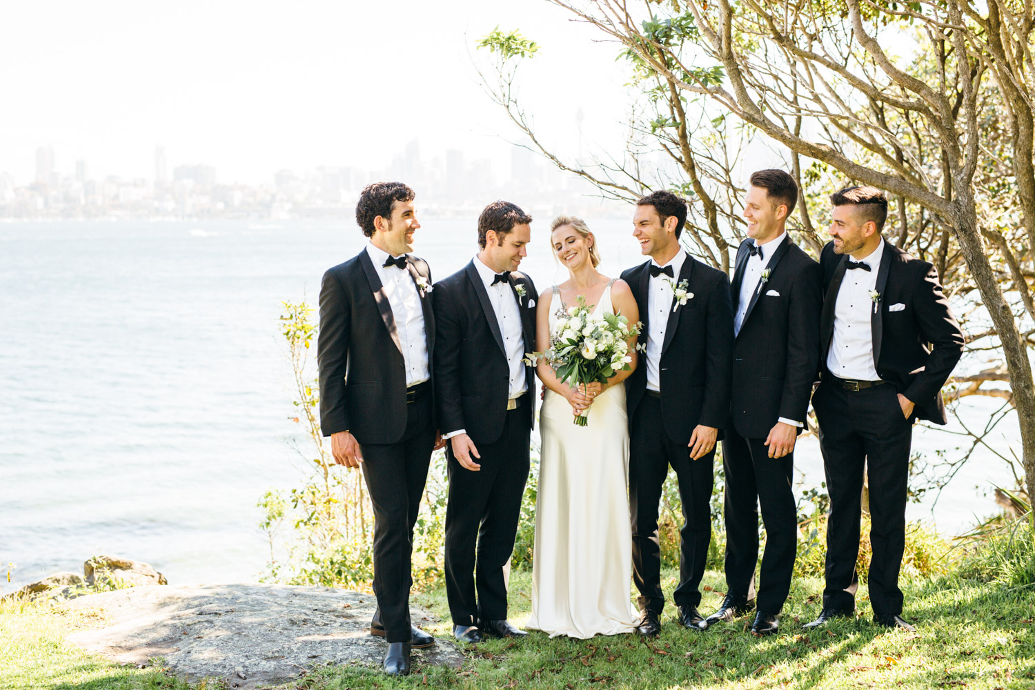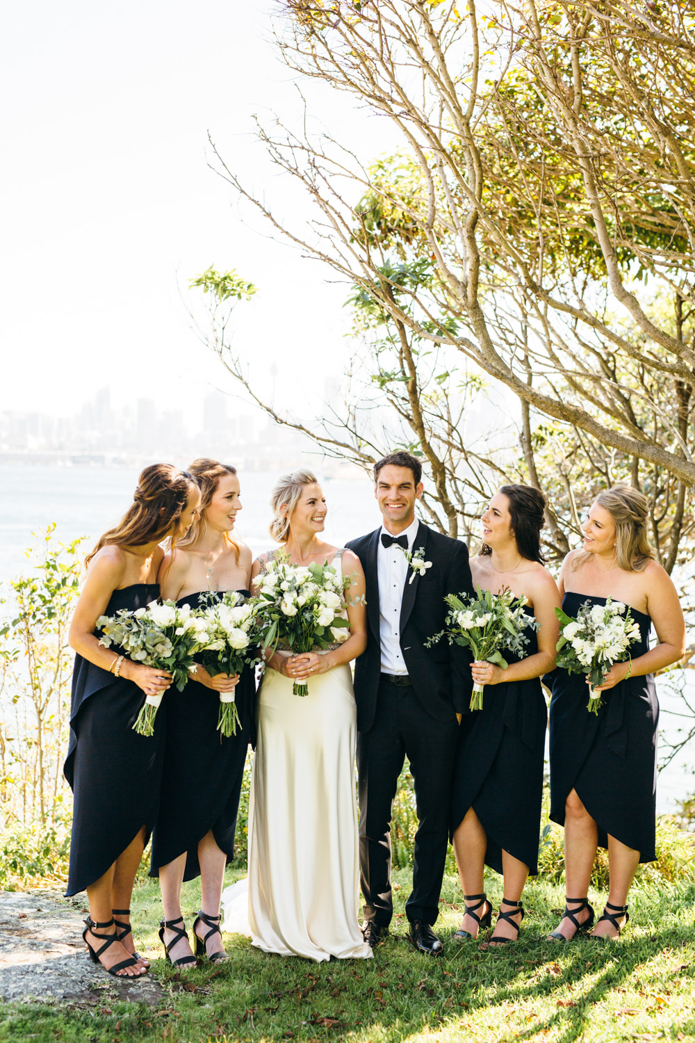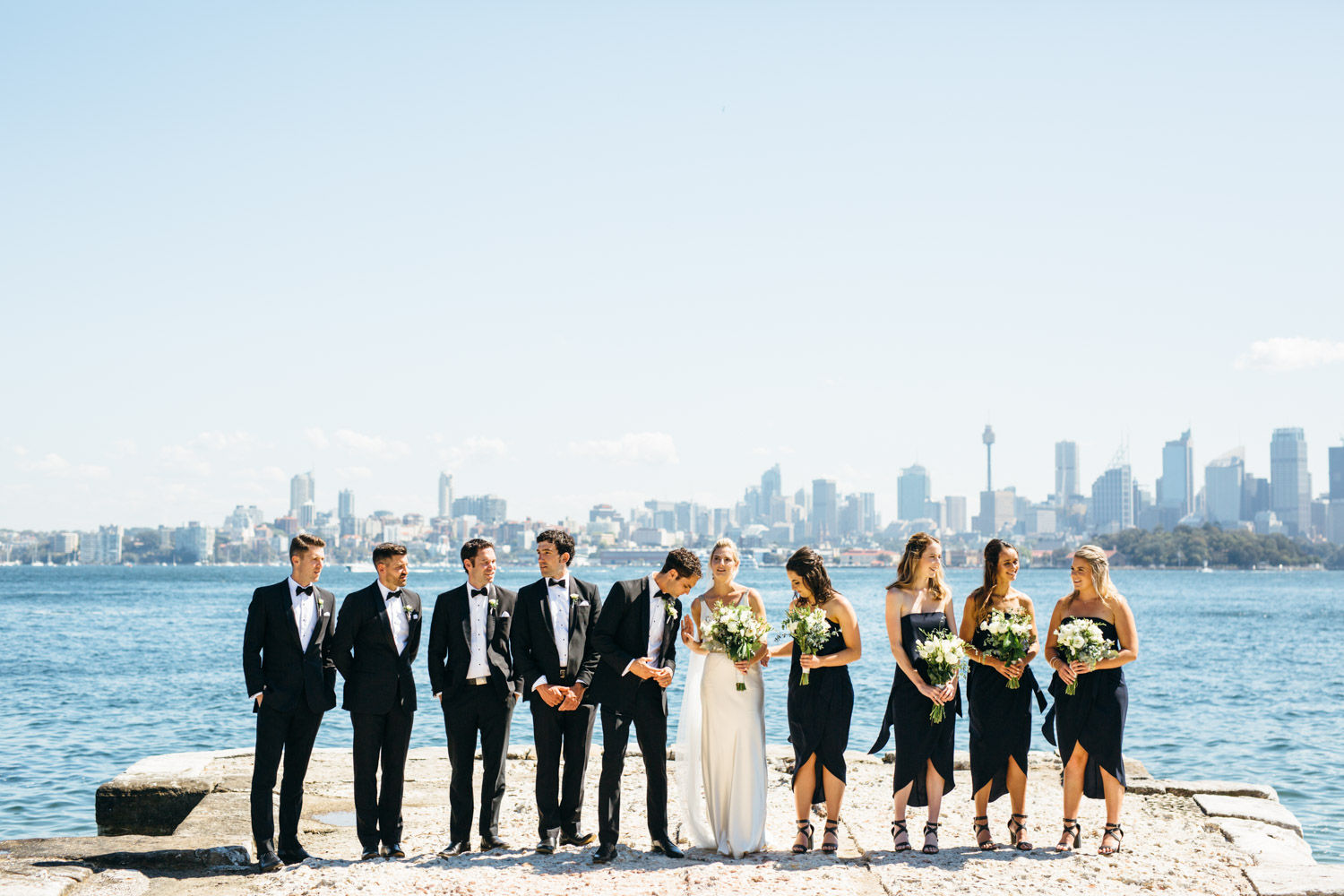 Secretly, I was looking forward to Bridget and Tom’s wedding because their ceremony was at Bradley’s Head – probably my favourite location in Sydney to shoot (note, if you’d like to see some other sessions at Bradley’s Head, check out this page). The view is simply the best! Bridget and her father walked down the staircase into the Bradley’s Head Amphitheatre. Tom and the boys were lined up with their backs to the CDB – an awesome backdrop for their guests to watch as their ceremony proceeded. We captured some family group portraits after their ceremony, and then some portraits of Bridget, Tom and their bridal party, before heading back to Milestone Events for the reception.