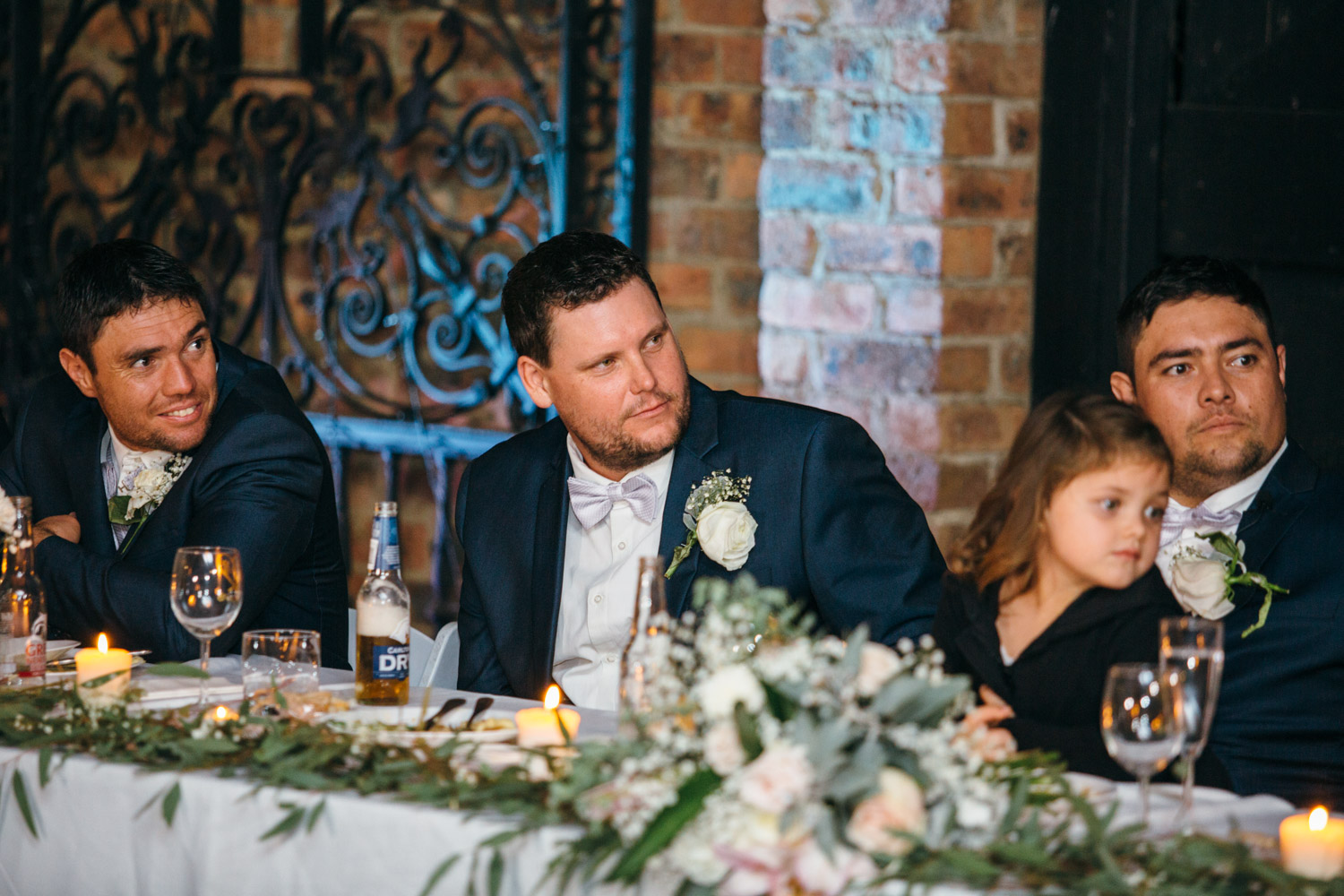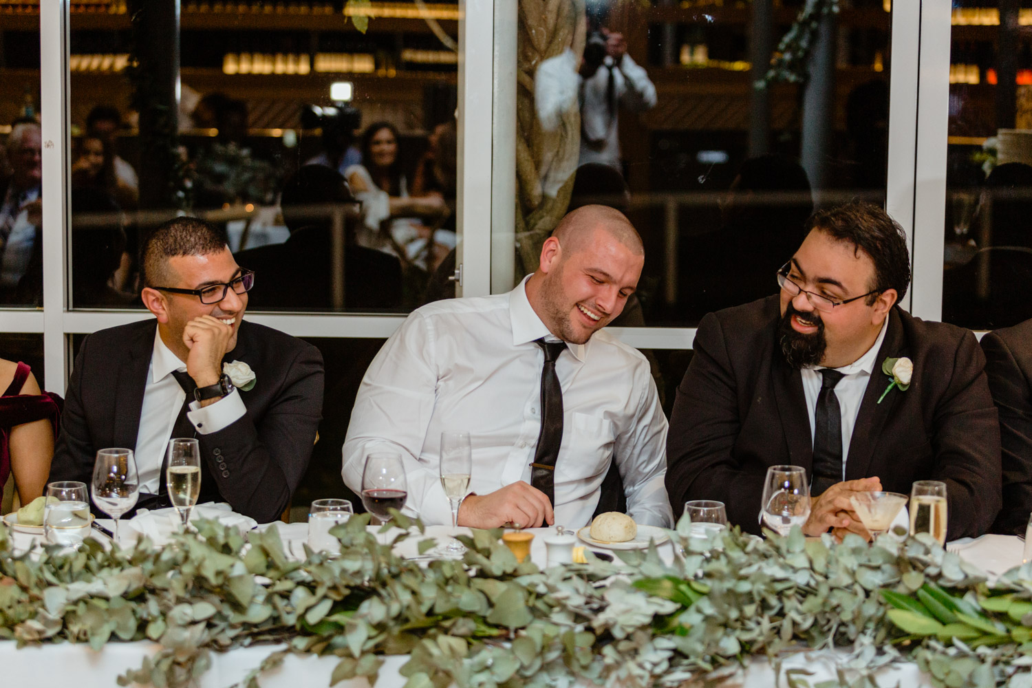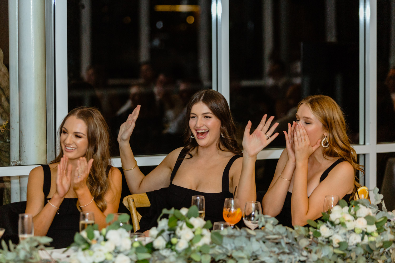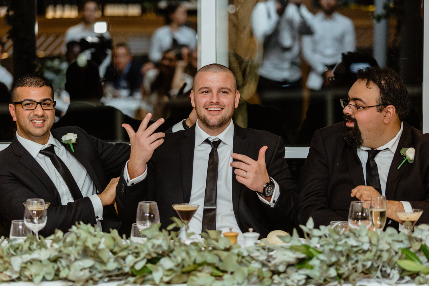 Secretly, I was looking forward to Bridget and Tom’s wedding because their ceremony was at Bradley’s Head – probably my favourite location in Sydney to shoot (note, if you’d like to see some other sessions at Bradley’s Head, check out this page). The view is simply the best! Bridget and her father walked down the staircase into the Bradley’s Head Amphitheatre. Tom and the boys were lined up with their backs to the CDB – an awesome backdrop for their guests to watch as their ceremony proceeded. We captured some family group portraits after their ceremony, and then some portraits of Bridget, Tom and their bridal party, before heading back to Milestone Events for the reception.