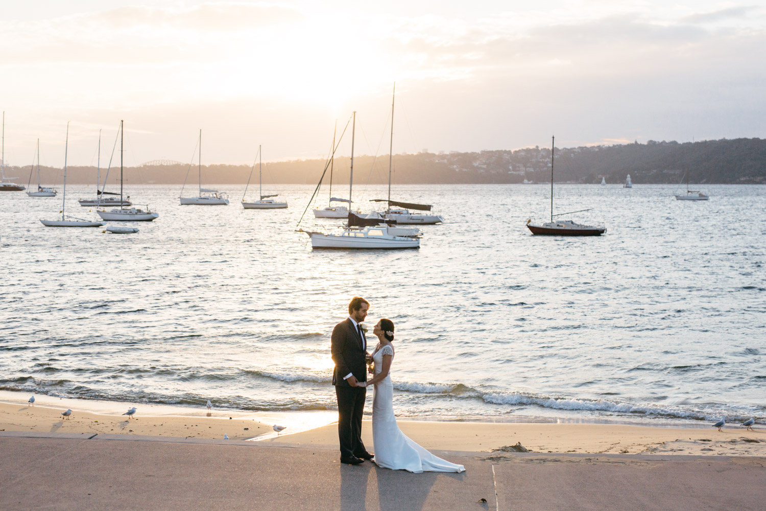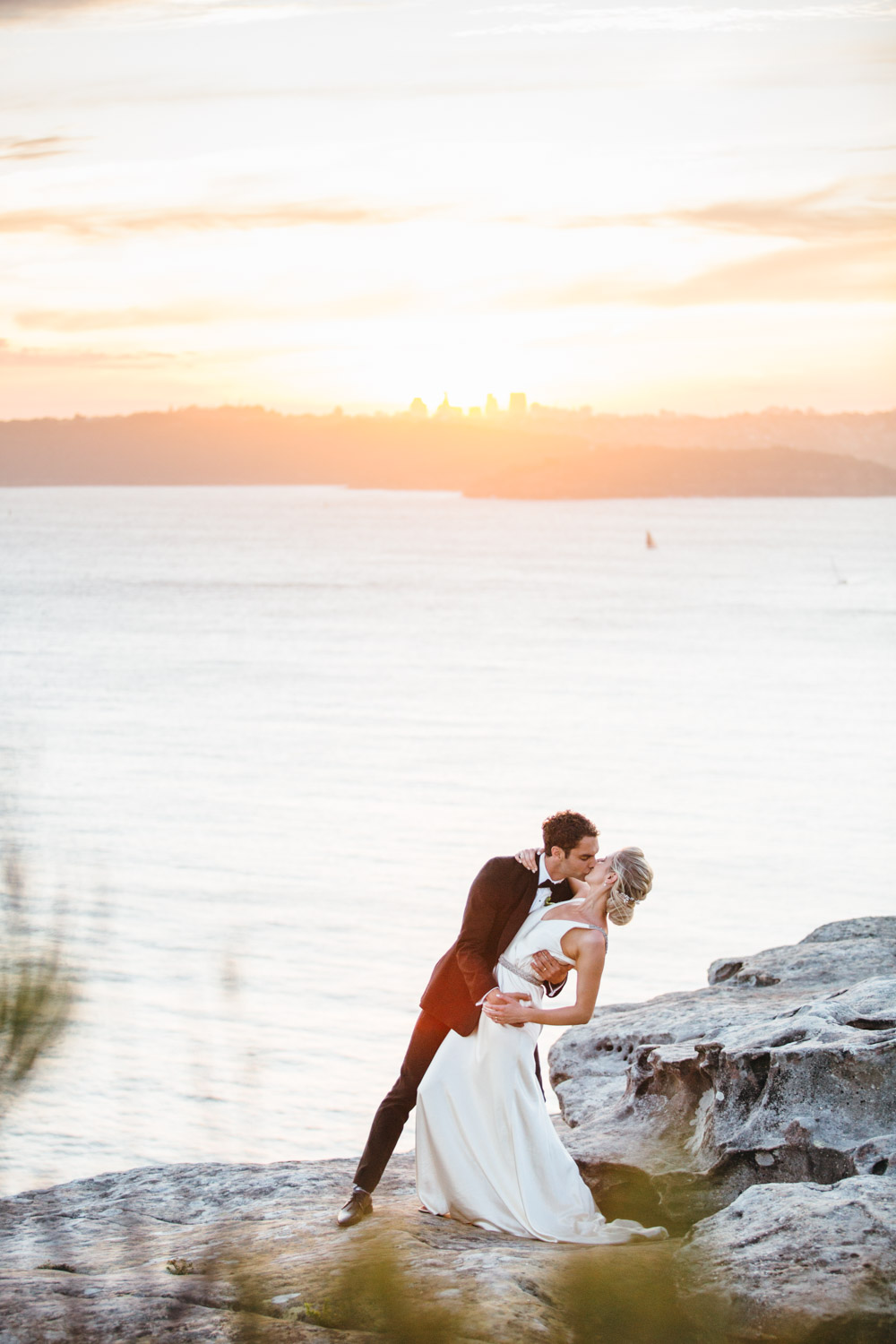 3. Make time to take some wedding photos at sunset. When I talk with my clients, I ALWAYS obtain the estimated sunset time for their wedding day. This is useful because it helps my clients to plan for some sunset wedding photos. Light is way more flattering either early in the morning or later in the afternoon, and we aim to capture some of this light in your wedding photographs. Combine this lovely light with point #2 above, and you can get some great wedding photos at Dunbar House. Here’s another hint: The Watson’s Bay Peninsula has a view back to the city, which is a westerly aspect, with the sun setting behind the city.