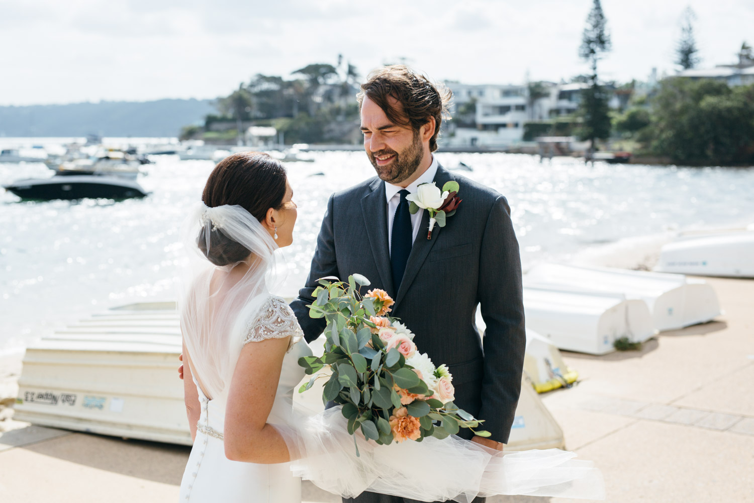2. Use the surroundings and go for a walk. There are some really lovely places to take wedding photos near Dunbar House. There are some obvious choices, including the Macquarie Lighthouse on Old South Head Road (but please refer to point #1 above), and also some cute little houses of all different pastel colours right in front of Watson’s Bay Boutique Hotel (which is where we photographed Alex and Sarah’s first look). Some of the below frames were captured along the waterfront, and also to the south of Dunbar House’s Fig tree (around a 5-minute walk along the water’s edge). There are some other places around, which are awesome, but I’ll save those for later discussions!