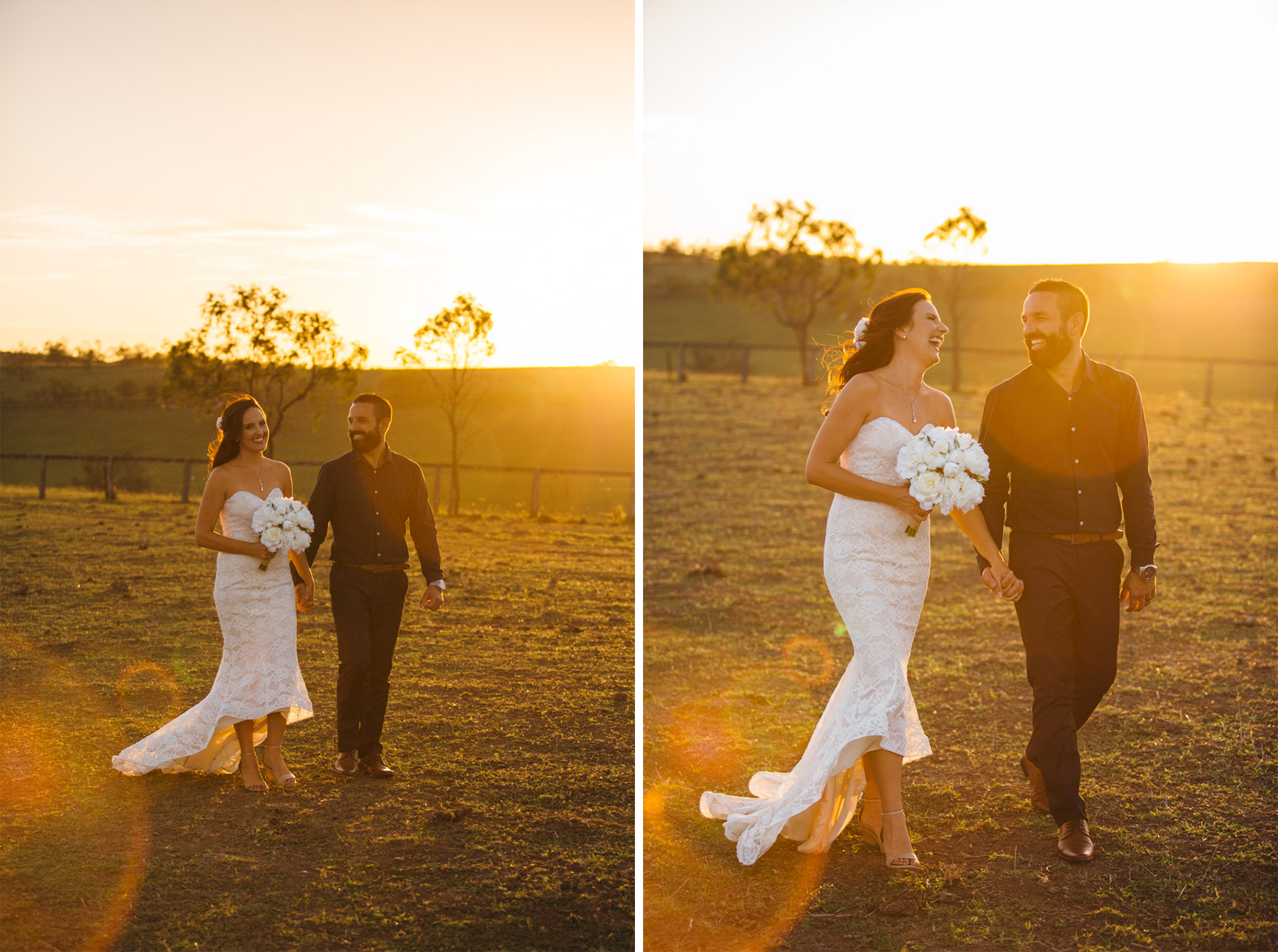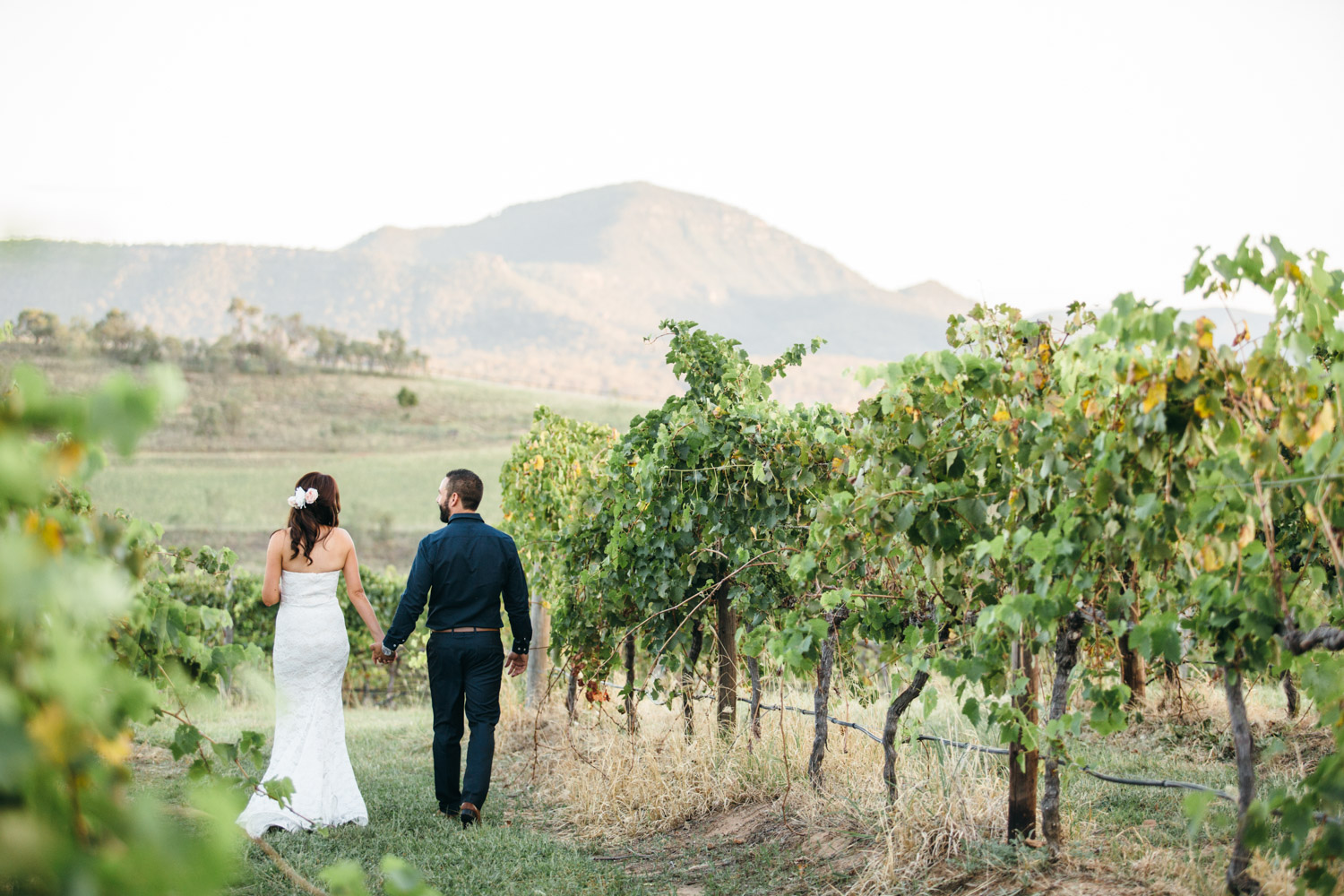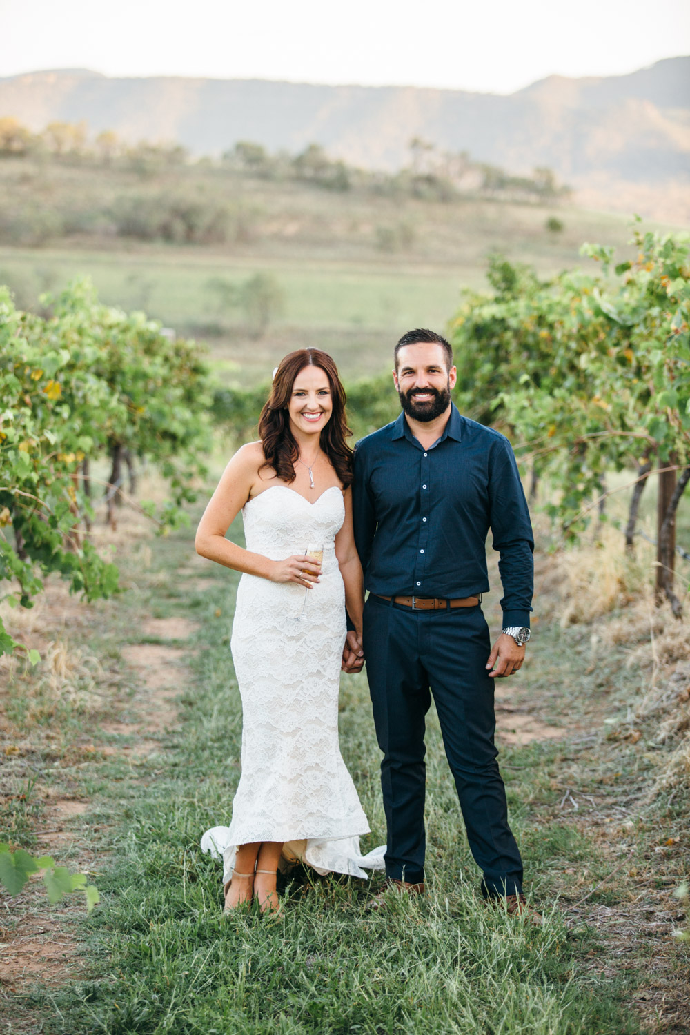 After the ceremony, Steph, Kurt and I jumped back in Kurt’s ute and once again ventured through the vineyard and equipment storage sheds, up to the northern end of the estate. We captured some awesome orange sunset wedding photos whilst enjoying a beer. The session was super enjoyable because Steph and Kurt were so easy going. We told some jokes and took in the view. I can’t think of a better way to enjoy a wedding photography session.