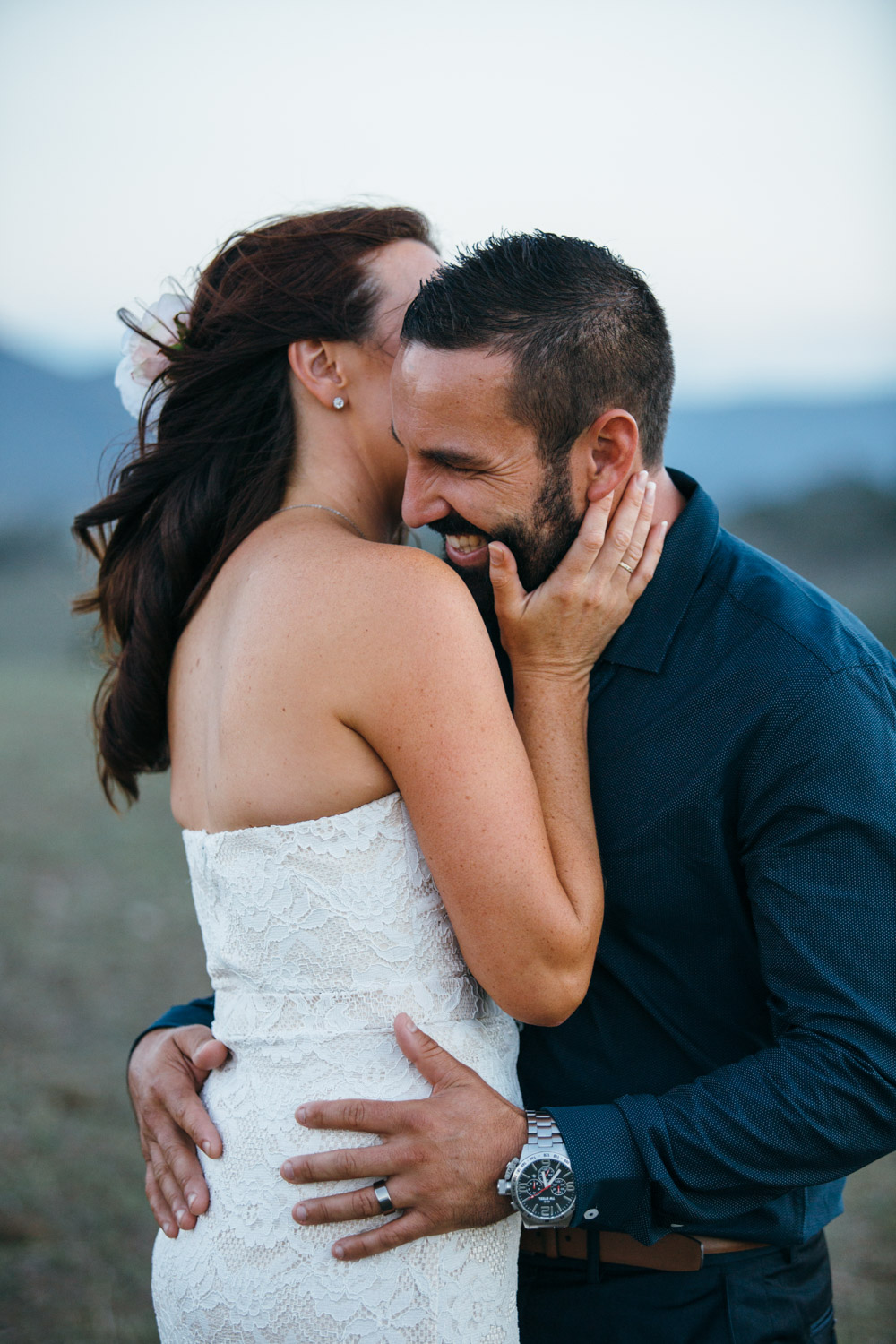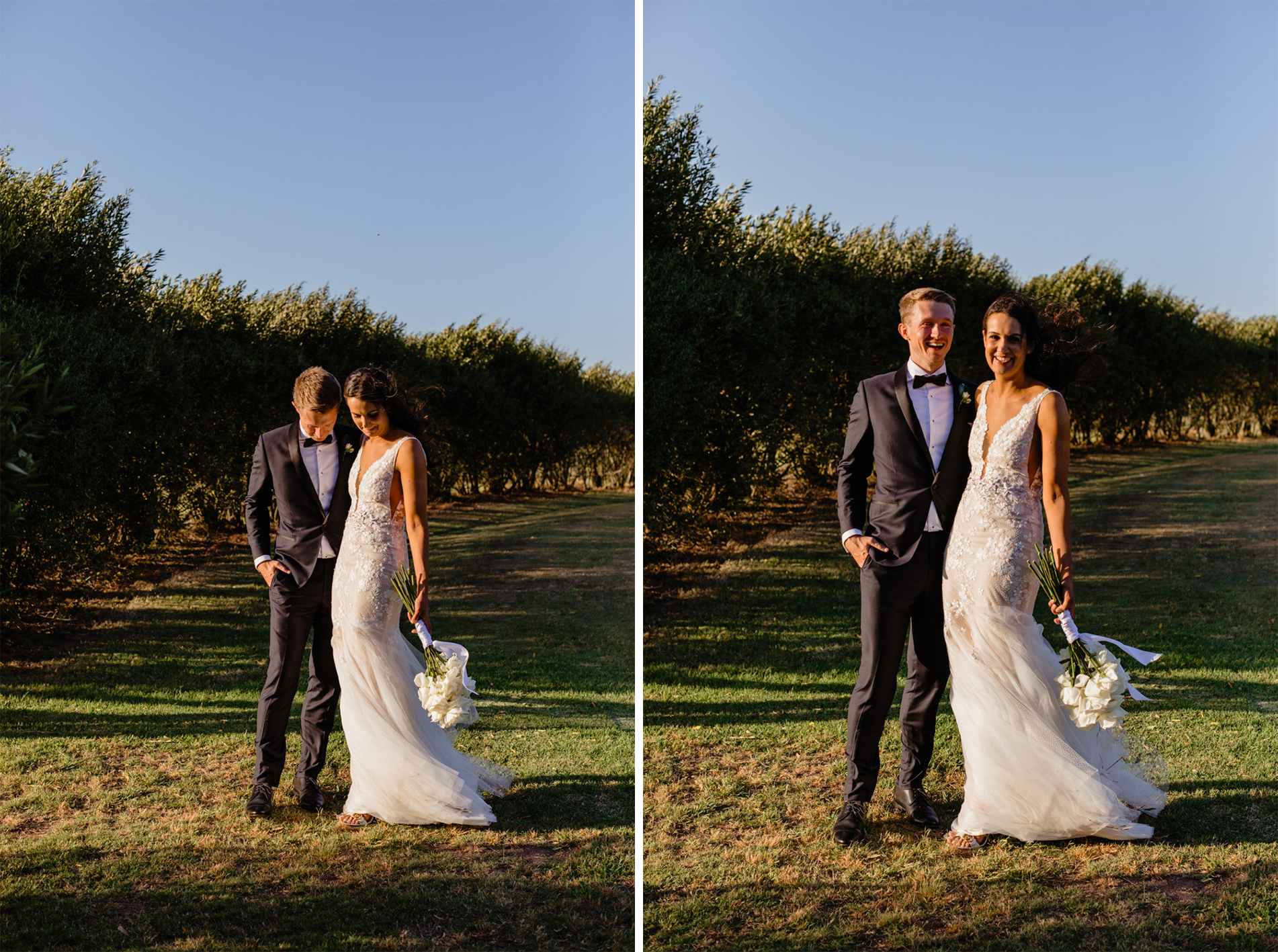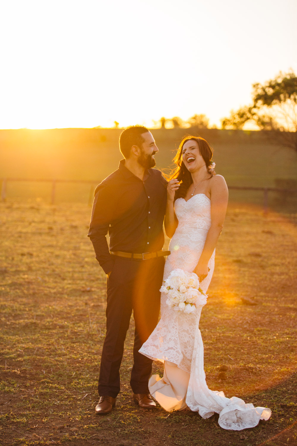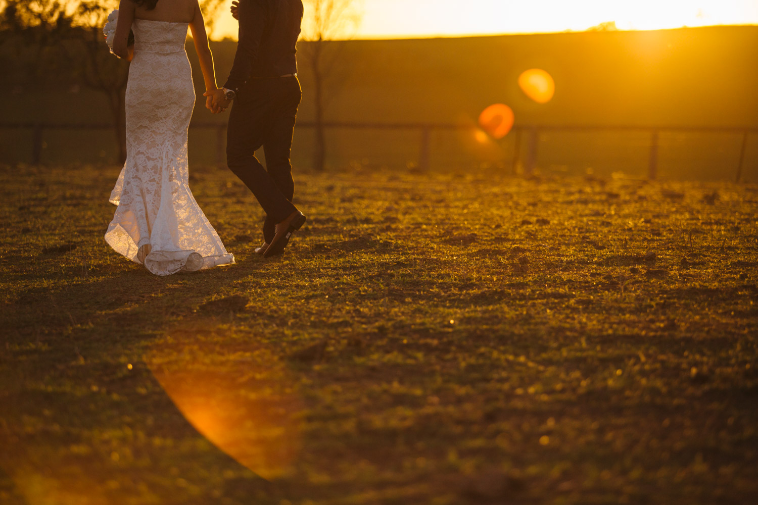 After the ceremony, Steph, Kurt and I jumped back in Kurt’s ute and once again ventured through the vineyard and equipment storage sheds, up to the northern end of the estate. We captured some awesome orange sunset wedding photos whilst enjoying a beer. The session was super enjoyable because Steph and Kurt were so easy going. We told some jokes and took in the view. I can’t think of a better way to enjoy a wedding photography session.
