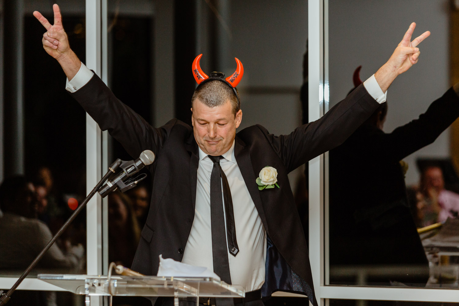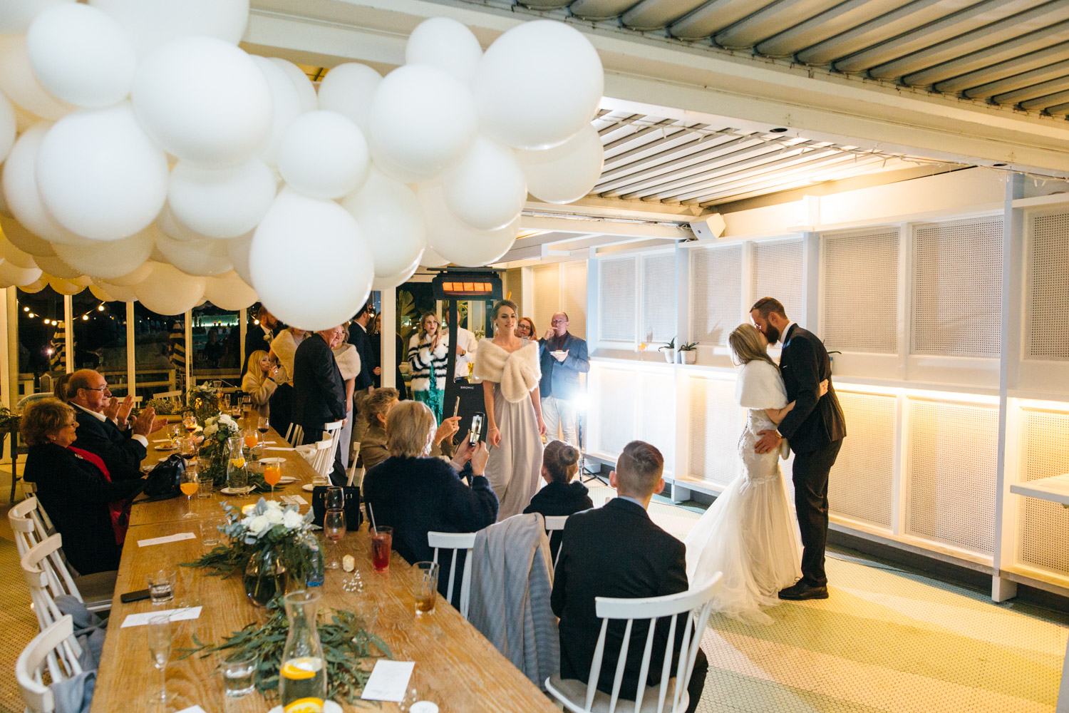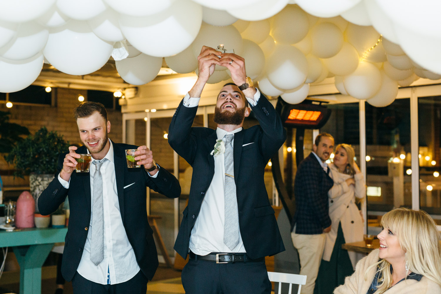 Casee and Harley held the reception for their wedding at the Watsons Bay Boutique Hotel. The Hotel gives nice relaxed vibes on the water’s edge. Casee and Harly had an awesome balloon installation on the ceiling – an addition that I’d never personally seen before – check out the shots towards the end of this blog post.