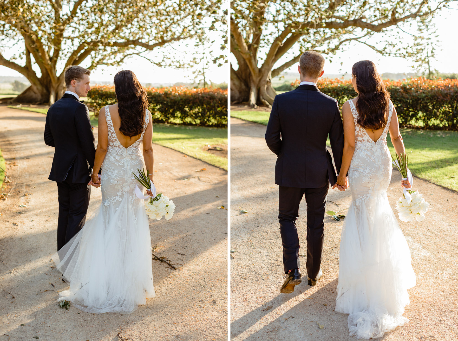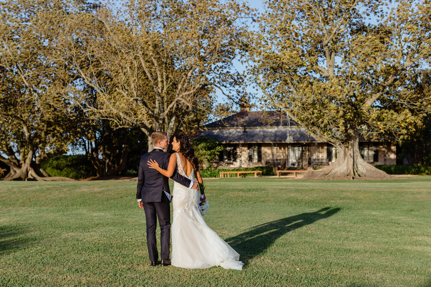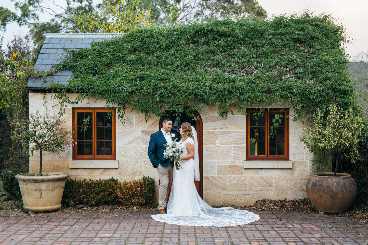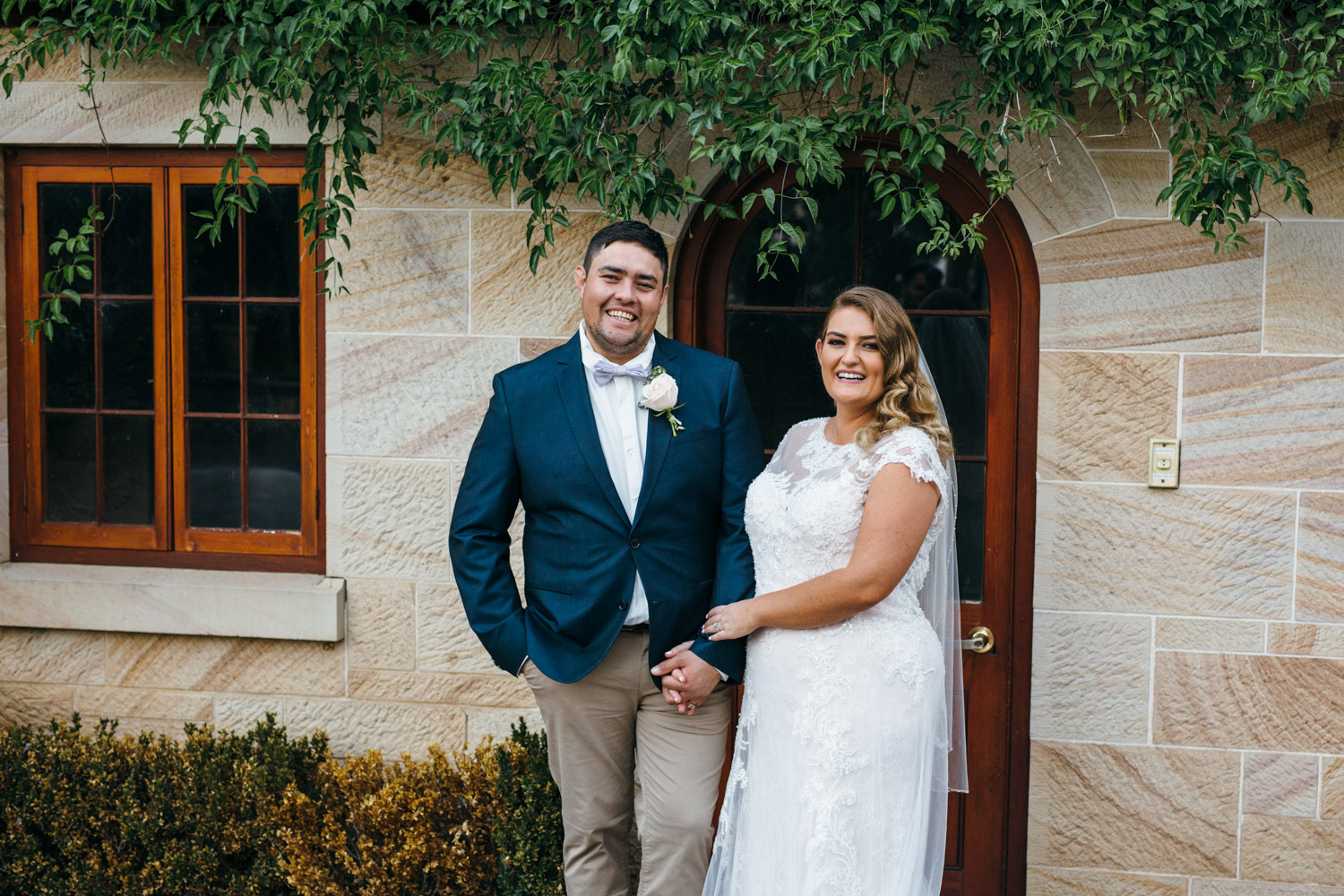 After the ceremony, we didn’t need to venture too far for some Fernhill Estate wedding photos – we roamed around the Manor gardens to capture some portraits. Fernhill Estate is full of photographic variety – including the old sandstone outhouses and cottages, large trees, and a super old rose bush out the back (which was massive!). Honestly, it was difficult to not get carried away in the surrounding locations and instead, focus on a few key areas for these Fernhill Estate wedding photos.