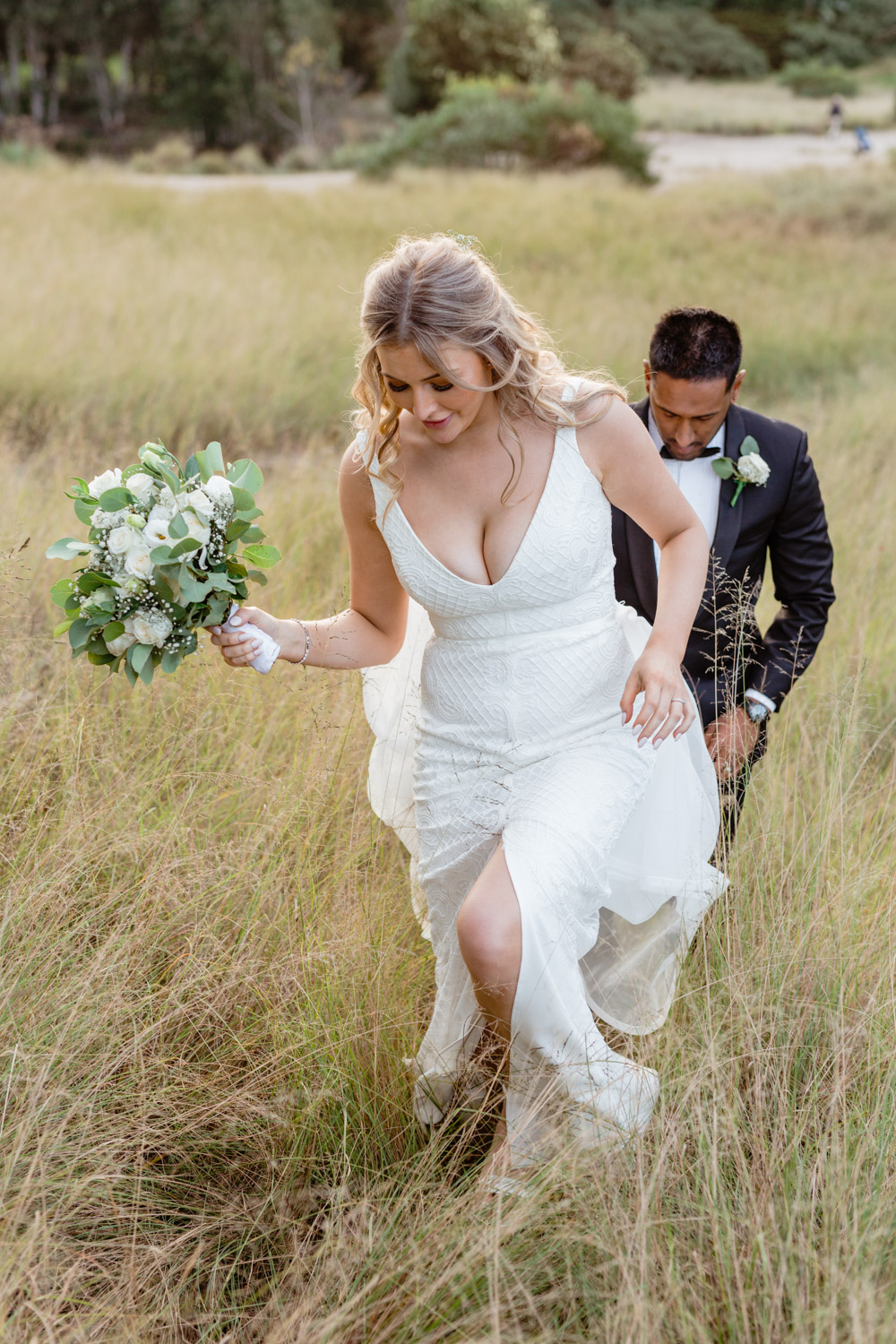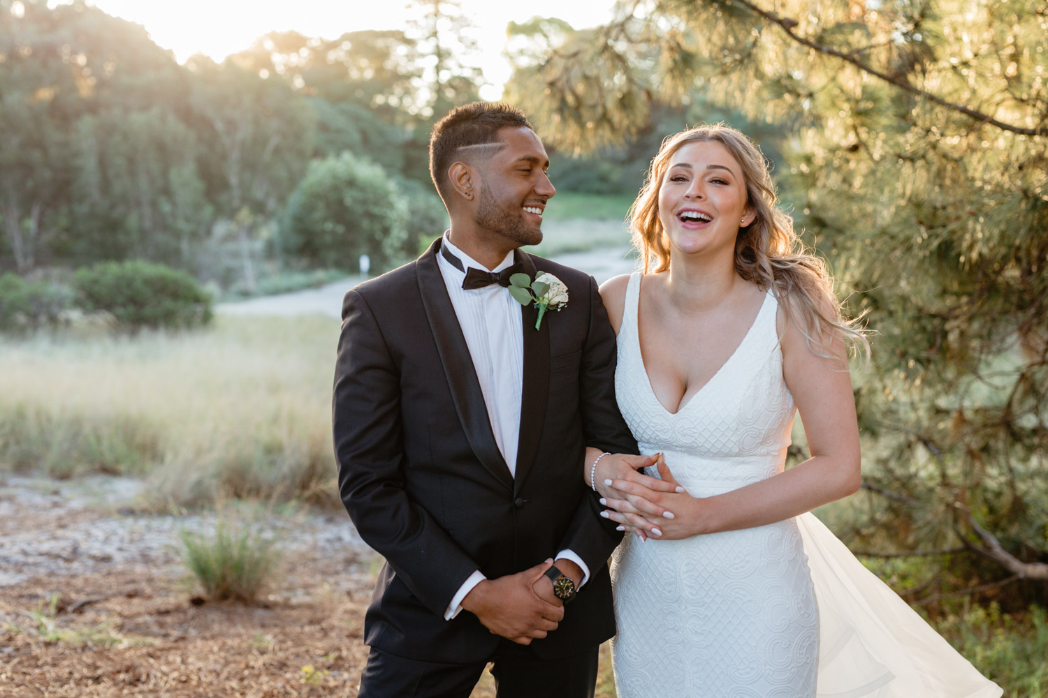 At sunset, Bridget and Tom ducked out for a sunset shoot. We raced to the cliff edges along Manly’s North Head and made it just in time for a glowing orange sunset. If you can, make some time in the evening on your wedding day for a sunset session. It gives you some added variety to your wedding photographs, and more importantly, it allows you and your new life partner time to stop and enjoy some together on an otherwise busy schedule.