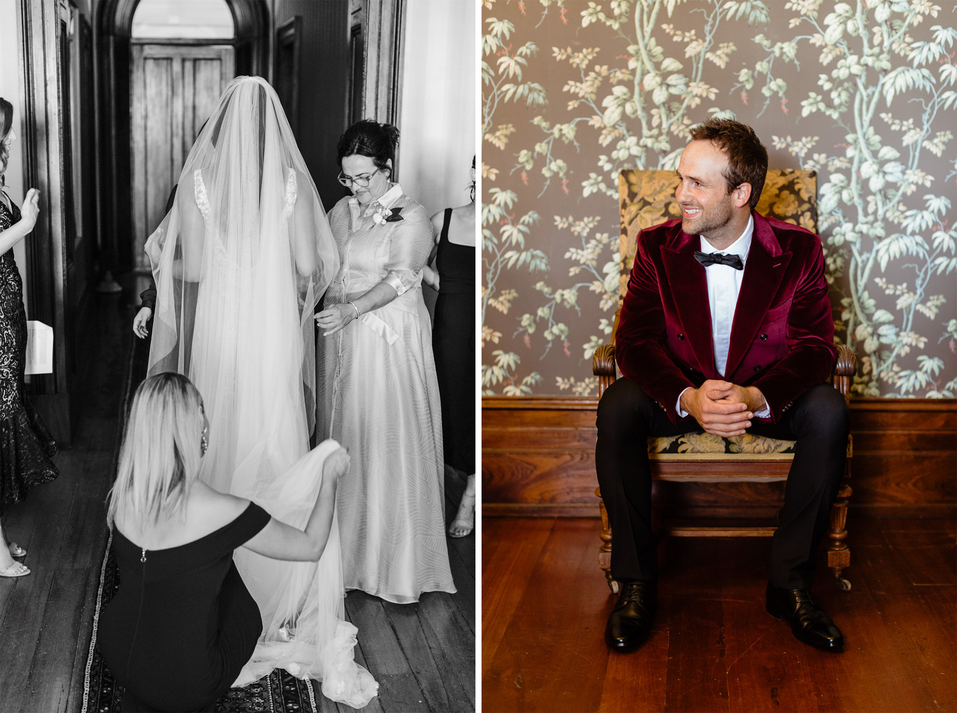 Edith and her bridesmaids prepared for the day in the main building whilst Lochlan and his groomsmen dressed in a lodge that was on the property, just down the driveway behind the main building.