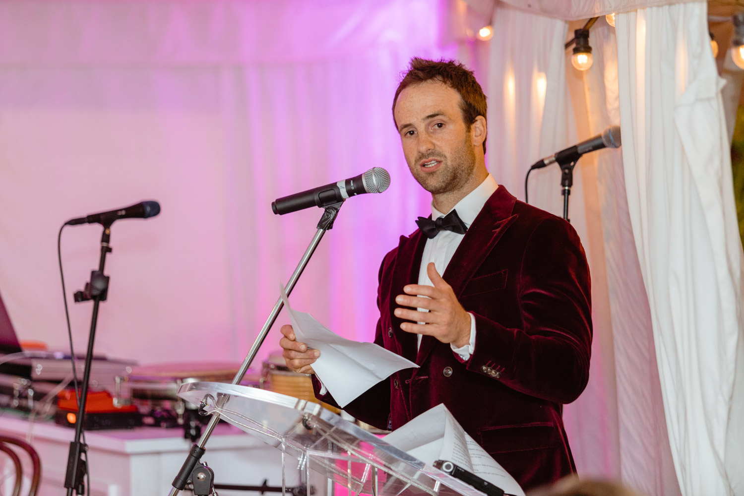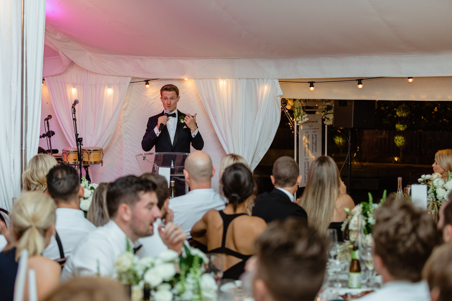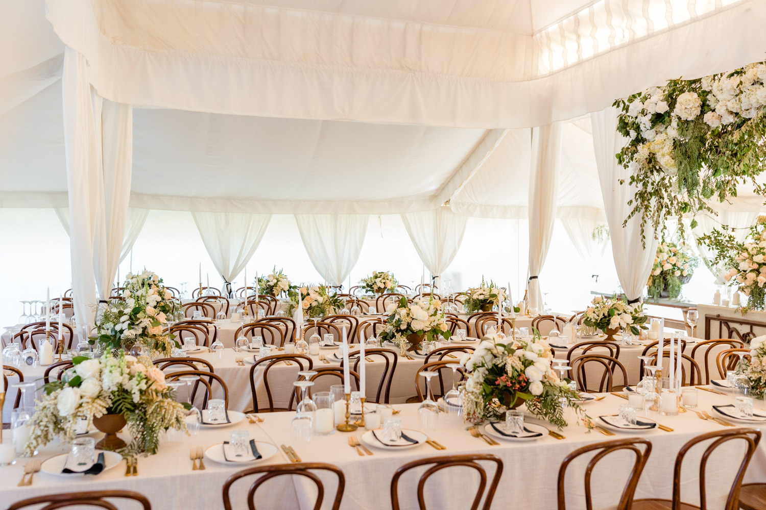 The reception in the Marquee was fantastic. Emma’s team put together a lavish arrangement of details. The floral arrangements together with the long tables and height of the marquee had a great guest experience.