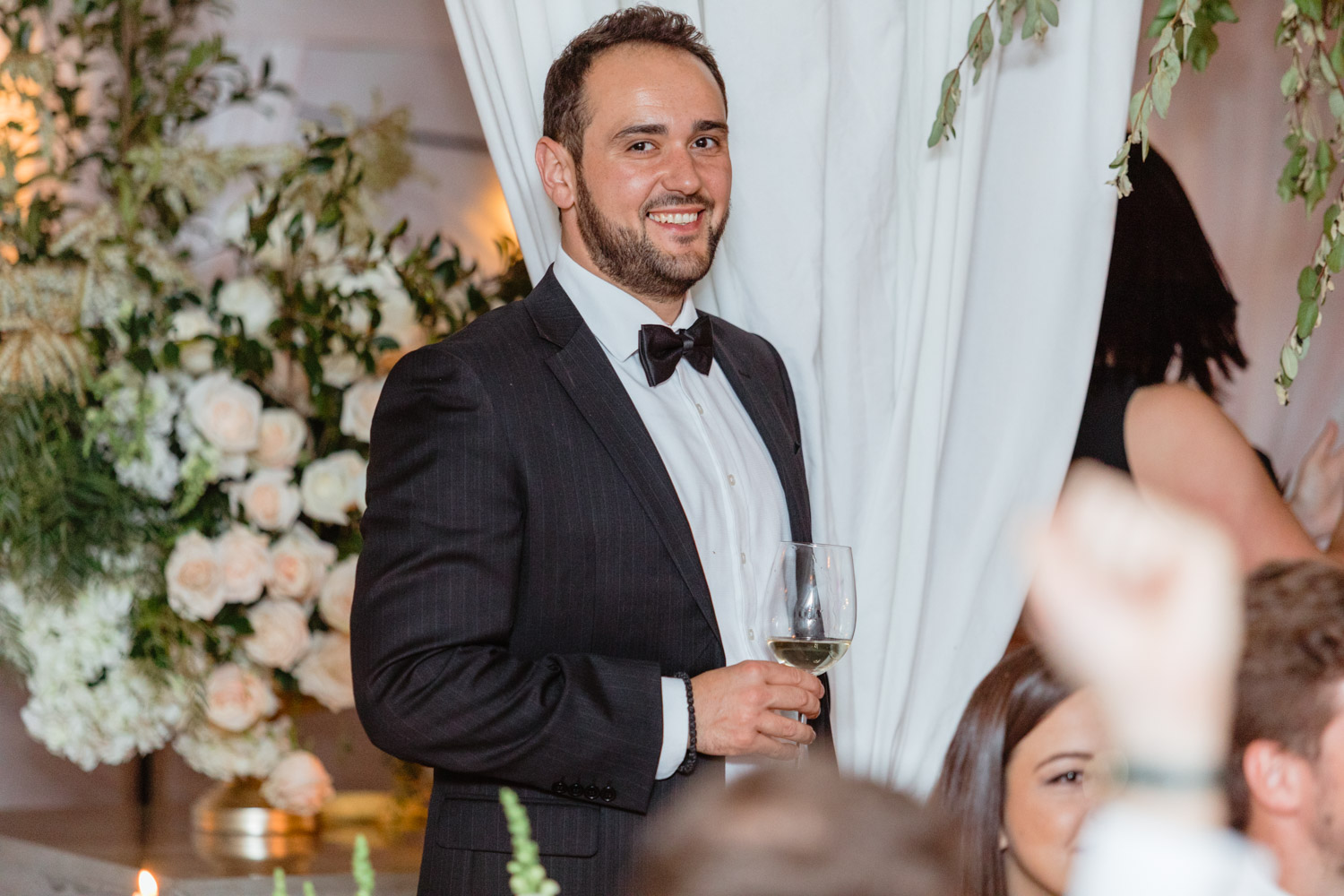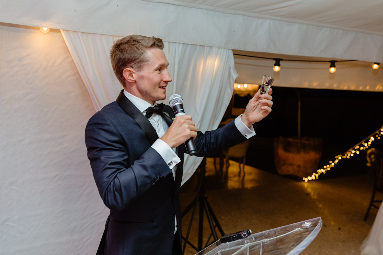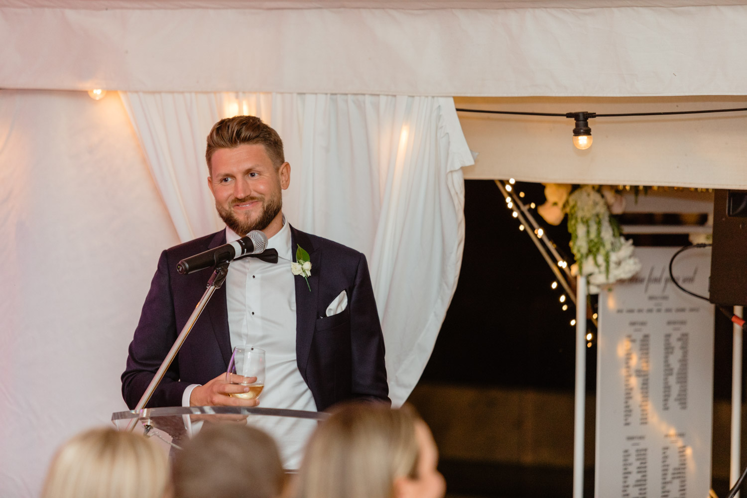 The reception in the Marquee was fantastic. Emma’s team put together a lavish arrangement of details. The floral arrangements together with the long tables and height of the marquee had a great guest experience.