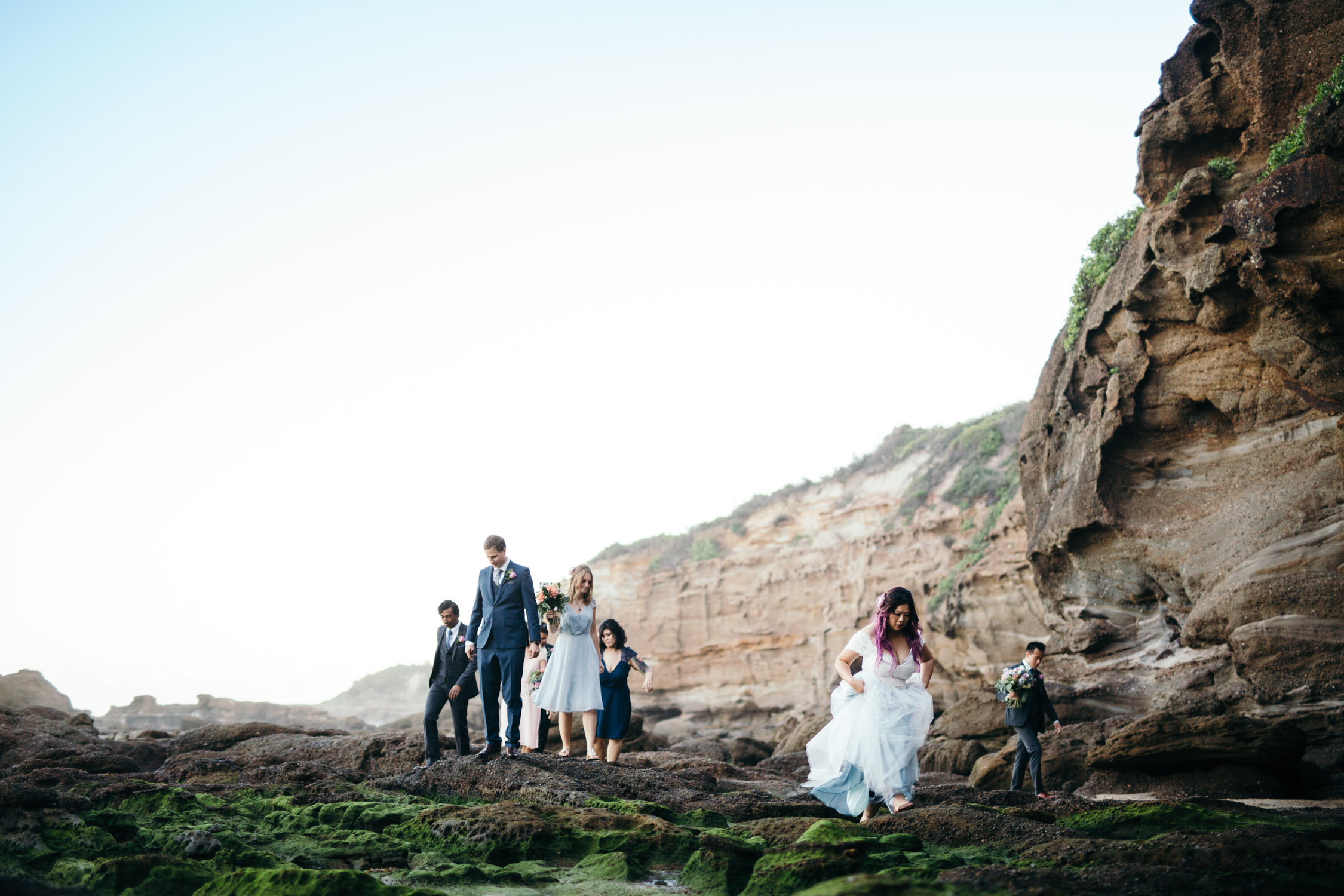 Skip forward about 5 months, and the backyard was amazing! These guys built a three-tiered yard that put you up amongst the Cockatoos in the Sydney Red Gums. Being on the edge of the National Park, we didn’t need to venture far for some photographs either – just down the road. In fact, this first photograph, which was my last frame for the day, really encapsulates a sense of place for this wedding. We were shooting at dusk when this fella just swooped down and perched atop my Speedlite.