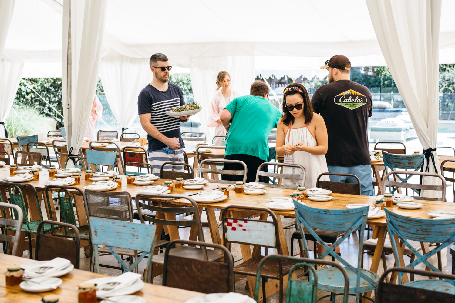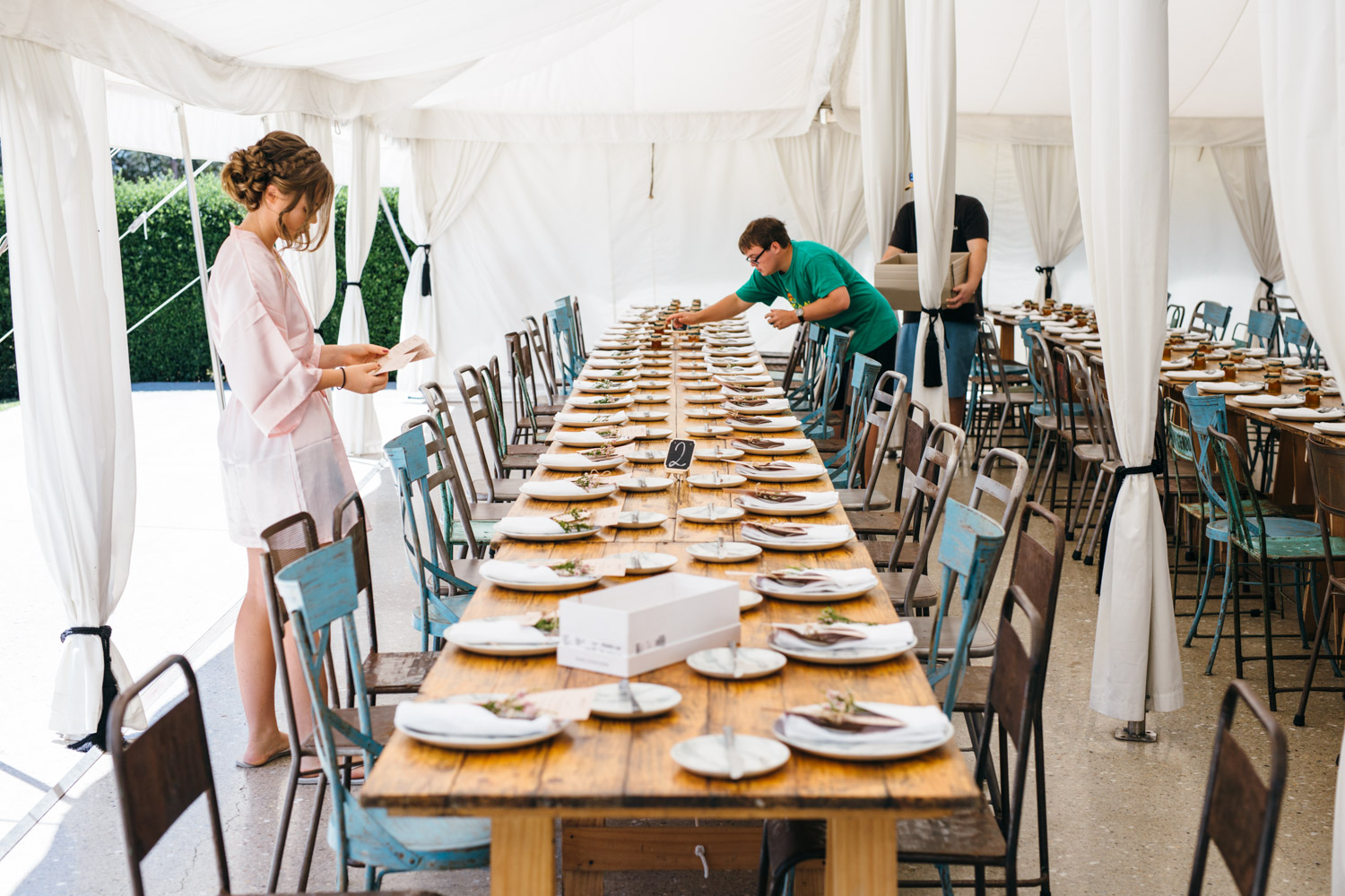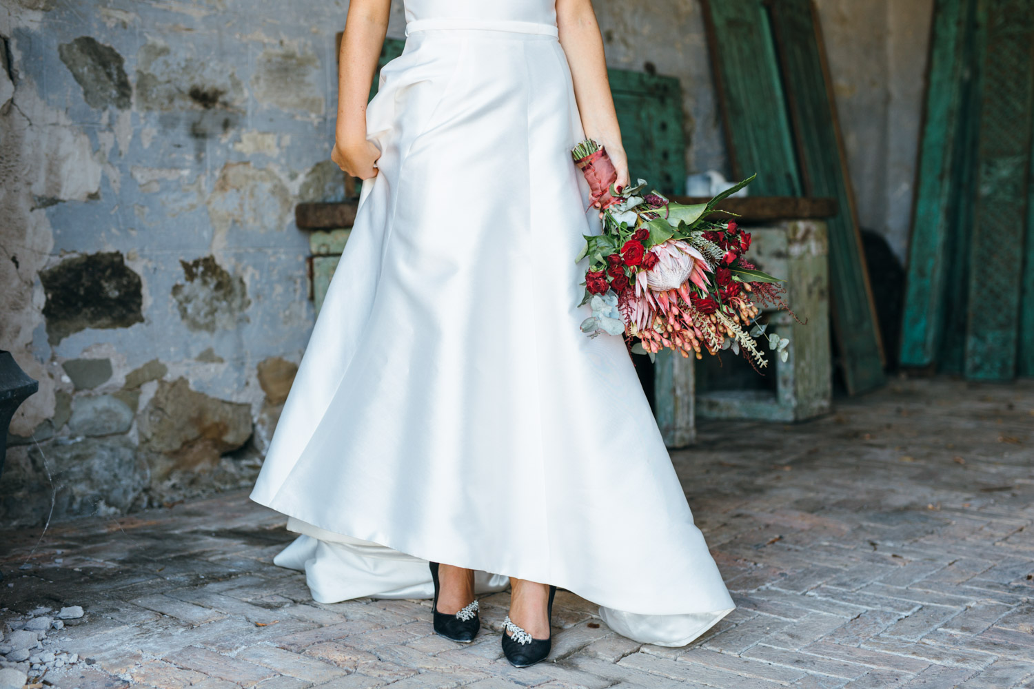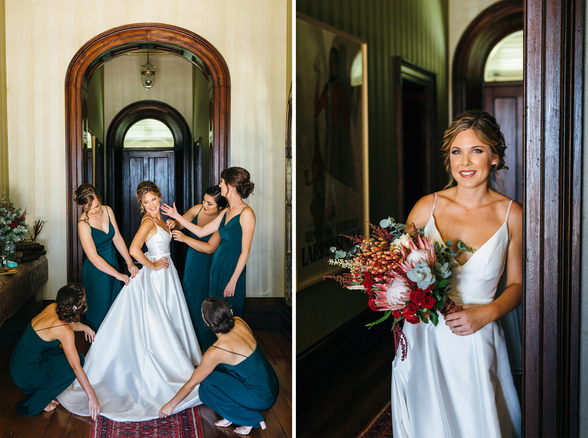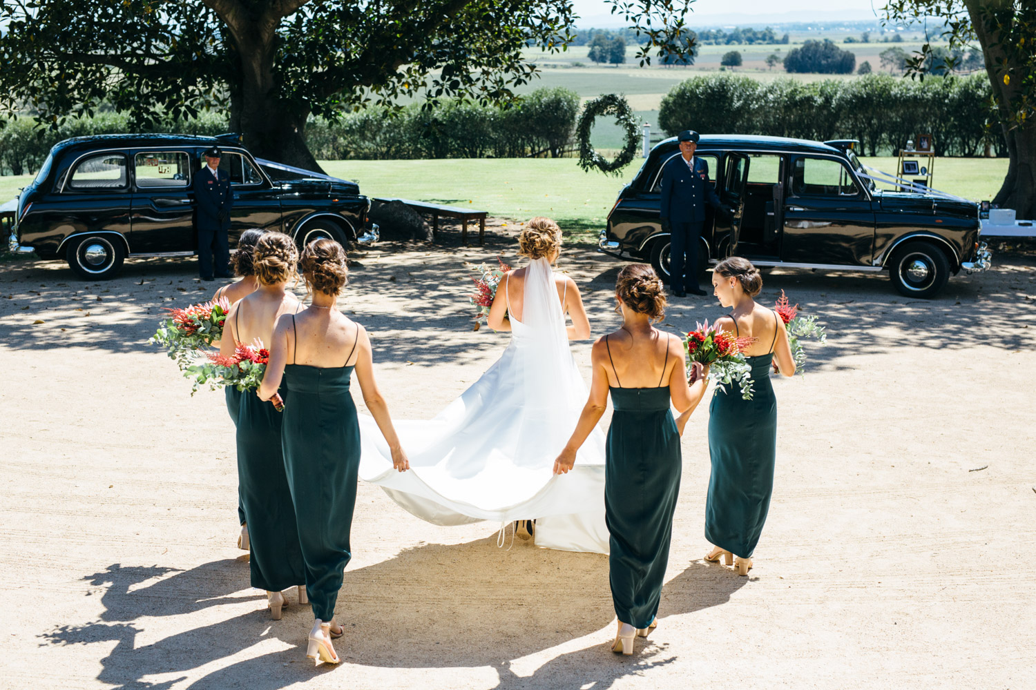My day started at Wallalong House with Emma and her bridesmaids. Inside the homestead I captured a range of details (including Emma’s beautiful dress in the front living room) and then ventured out to the marque to see Emma’s florist finishing the floral arrangements. Emma’s wedding was always going to be on point – she’s a professional events planner, so the day was never going to disappoint.