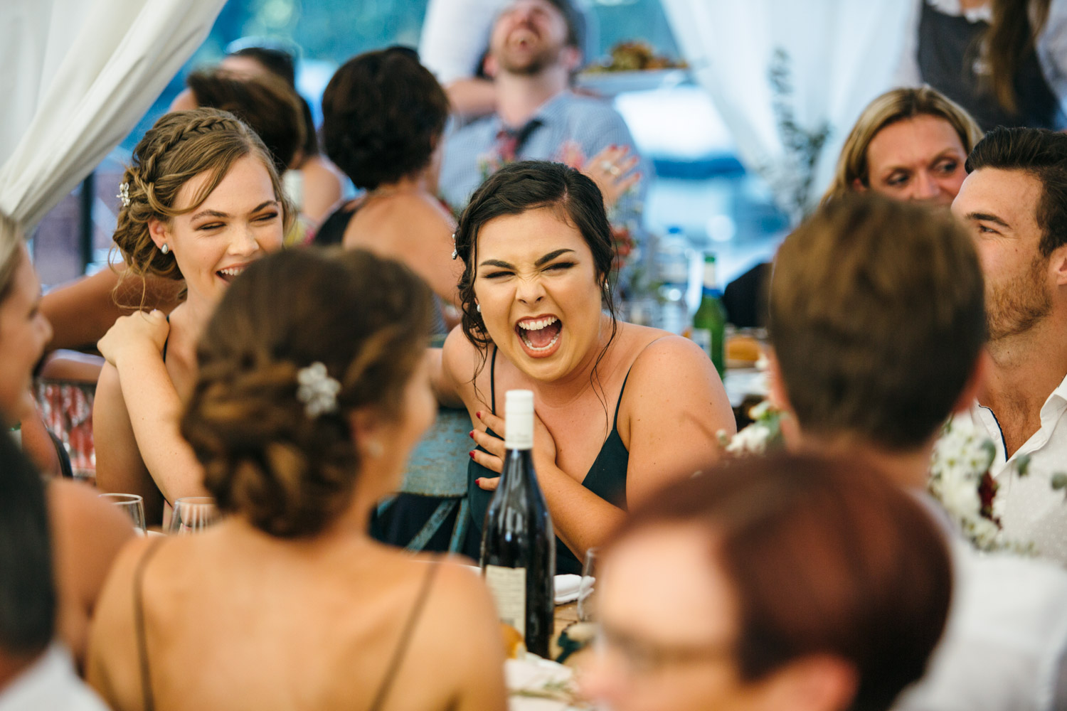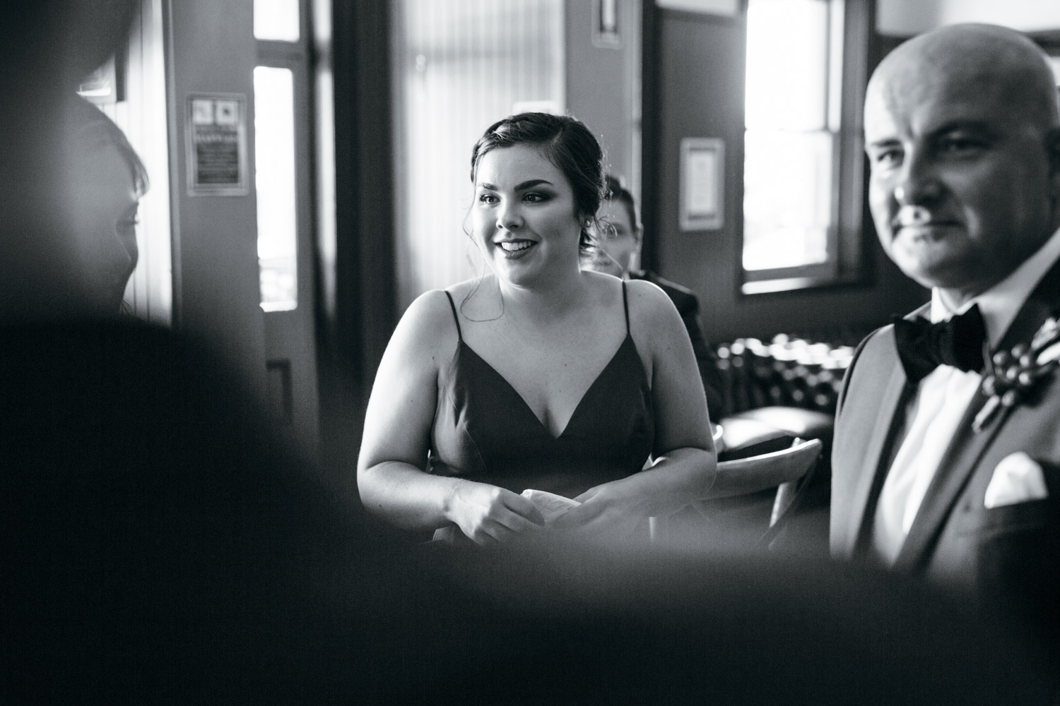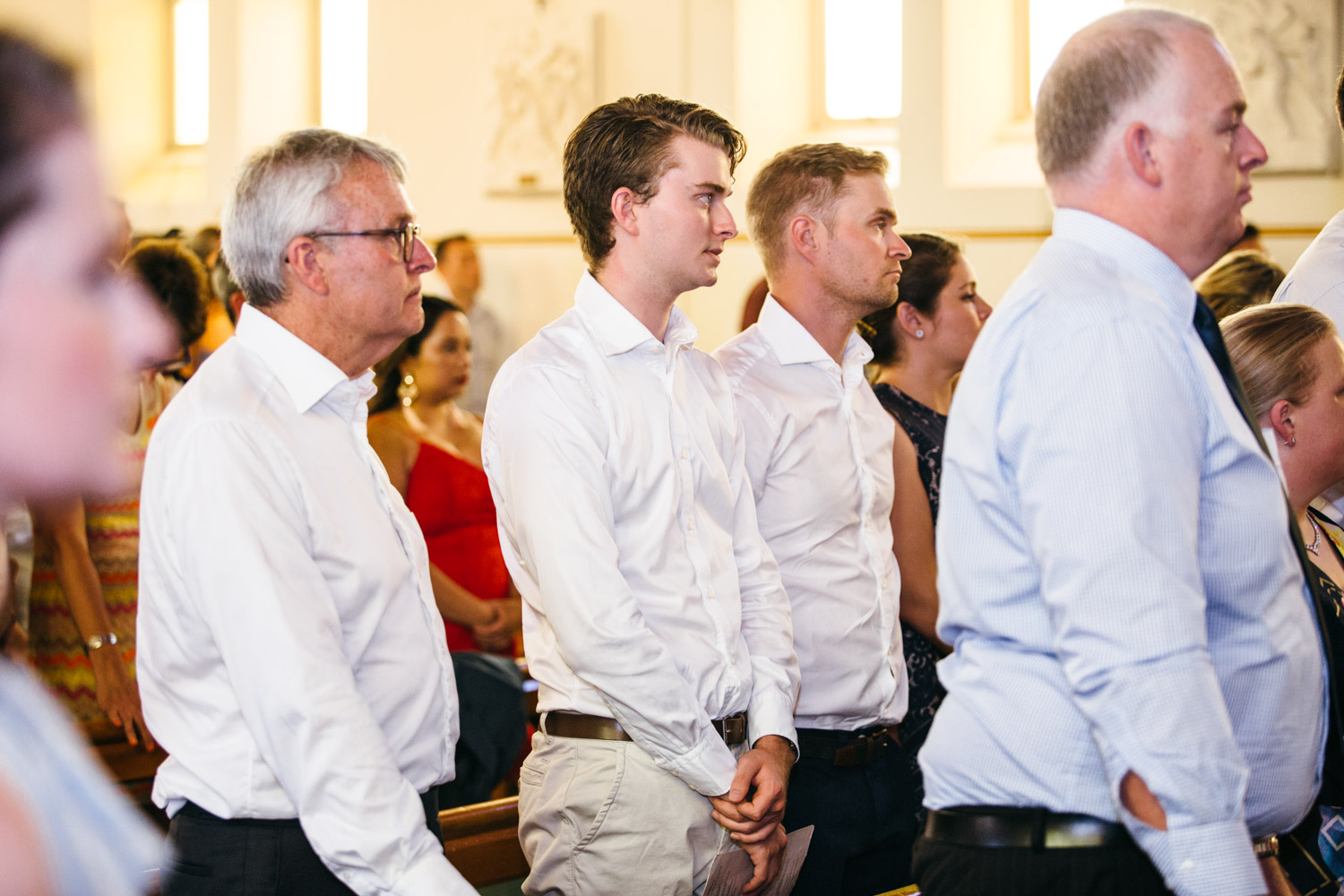Secretly, I was looking forward to Bridget and Tom’s wedding because their ceremony was at Bradley’s Head – probably my favourite location in Sydney to shoot (note, if you’d like to see some other sessions at Bradley’s Head, check out this page). The view is simply the best! Bridget and her father walked down the staircase into the Bradley’s Head Amphitheatre. Tom and the boys were lined up with their backs to the CDB – an awesome backdrop for their guests to watch as their ceremony proceeded. We captured some family group portraits after their ceremony, and then some portraits of Bridget, Tom and their bridal party, before heading back to Milestone Events for the reception.