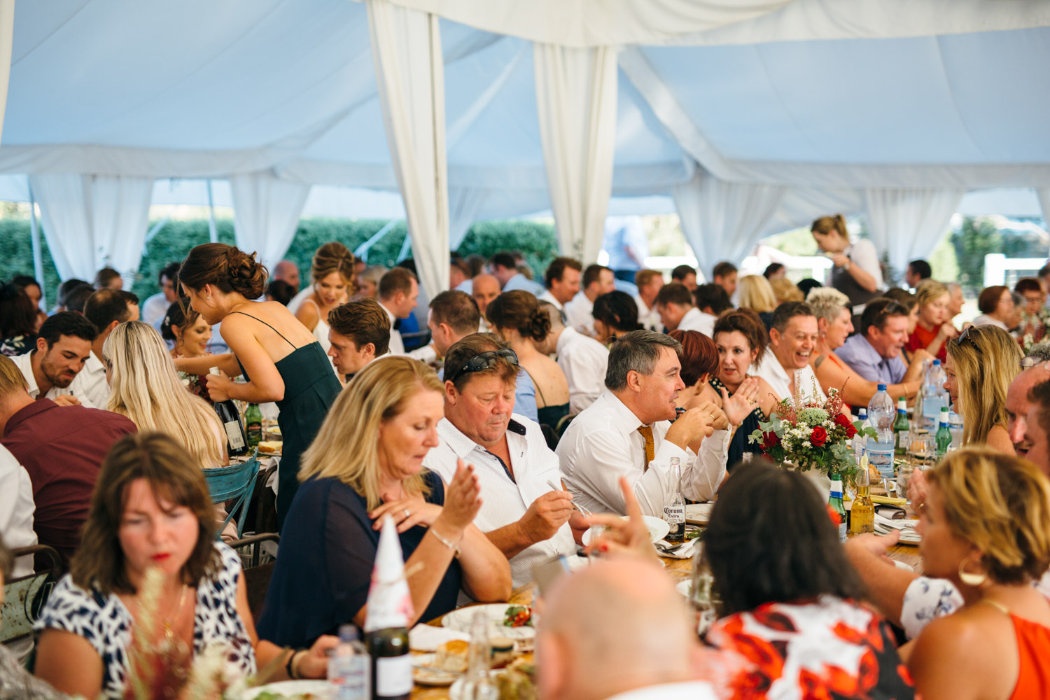 The reception in the Marquee was fantastic. Emma’s team put together a lavish arrangement of details. The floral arrangements together with the long tables and height of the marquee had a great guest experience.