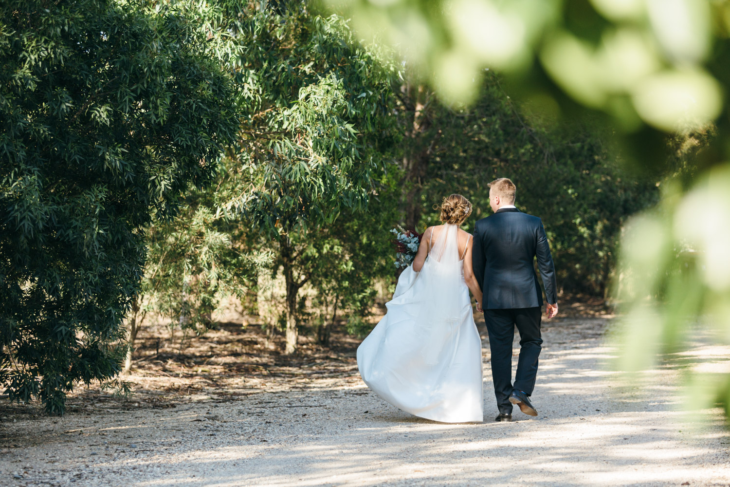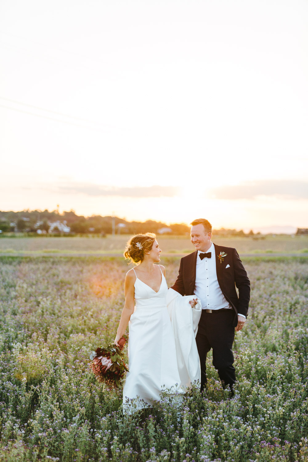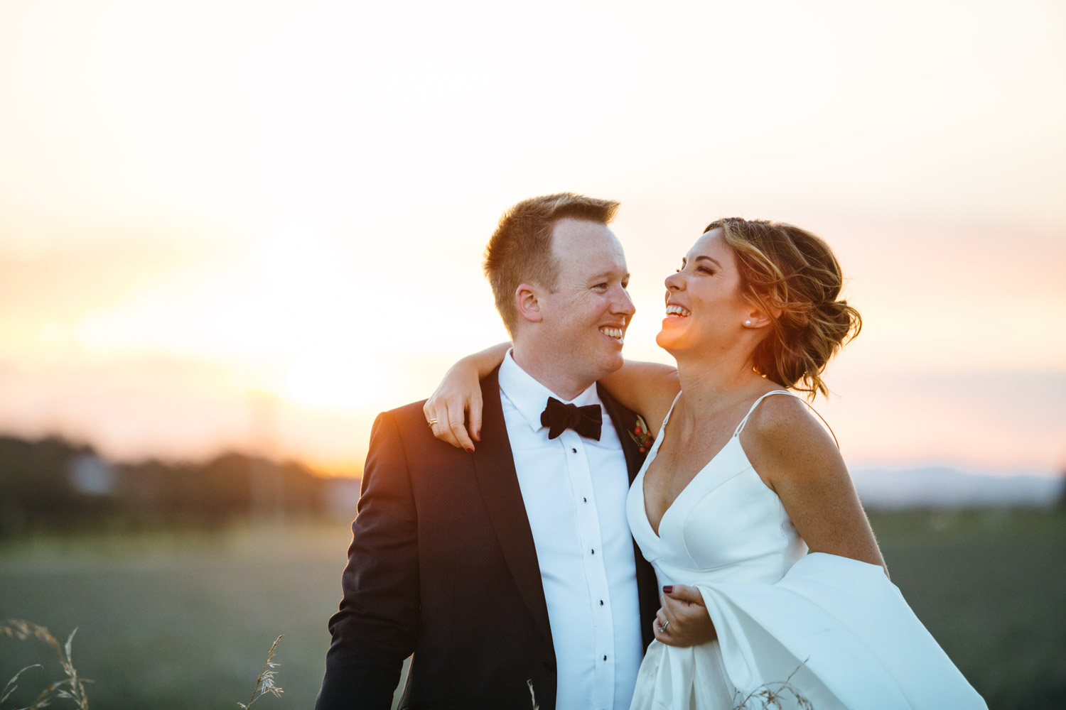 After the ceremony, Steph, Kurt and I jumped back in Kurt’s ute and once again ventured through the vineyard and equipment storage sheds, up to the northern end of the estate. We captured some awesome orange sunset wedding photos whilst enjoying a beer. The session was super enjoyable because Steph and Kurt were so easy going. We told some jokes and took in the view. I can’t think of a better way to enjoy a wedding photography session.