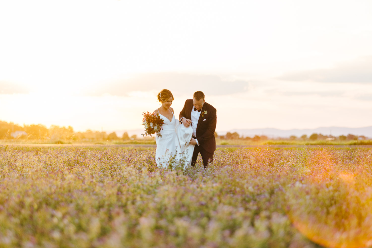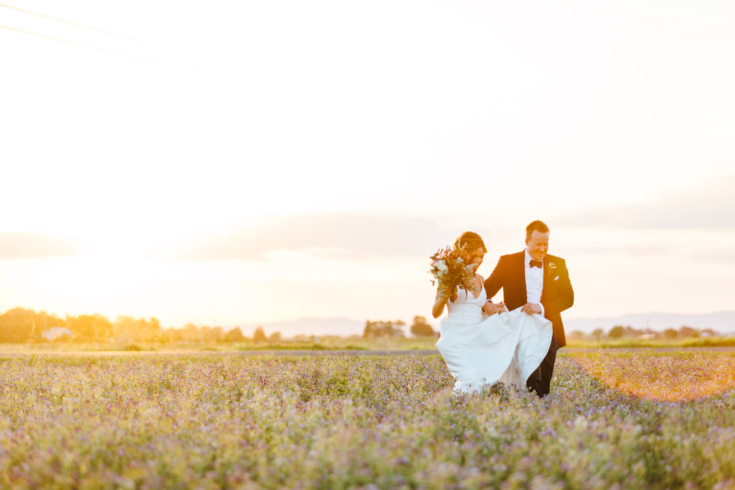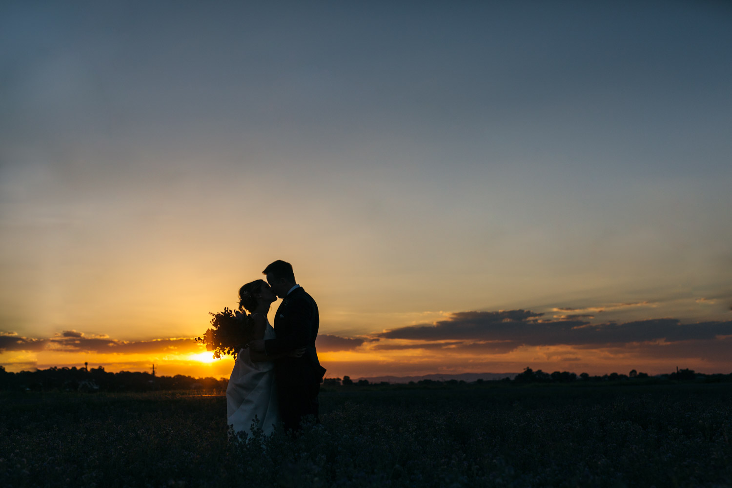 After the ceremony, Steph, Kurt and I jumped back in Kurt’s ute and once again ventured through the vineyard and equipment storage sheds, up to the northern end of the estate. We captured some awesome orange sunset wedding photos whilst enjoying a beer. The session was super enjoyable because Steph and Kurt were so easy going. We told some jokes and took in the view. I can’t think of a better way to enjoy a wedding photography session.