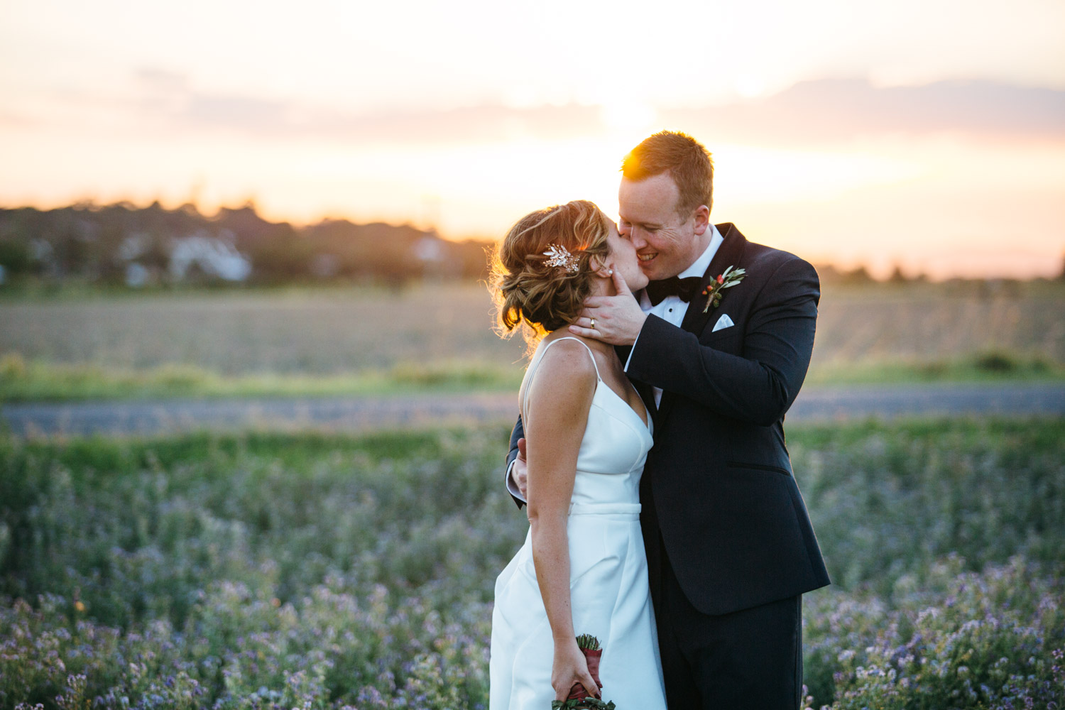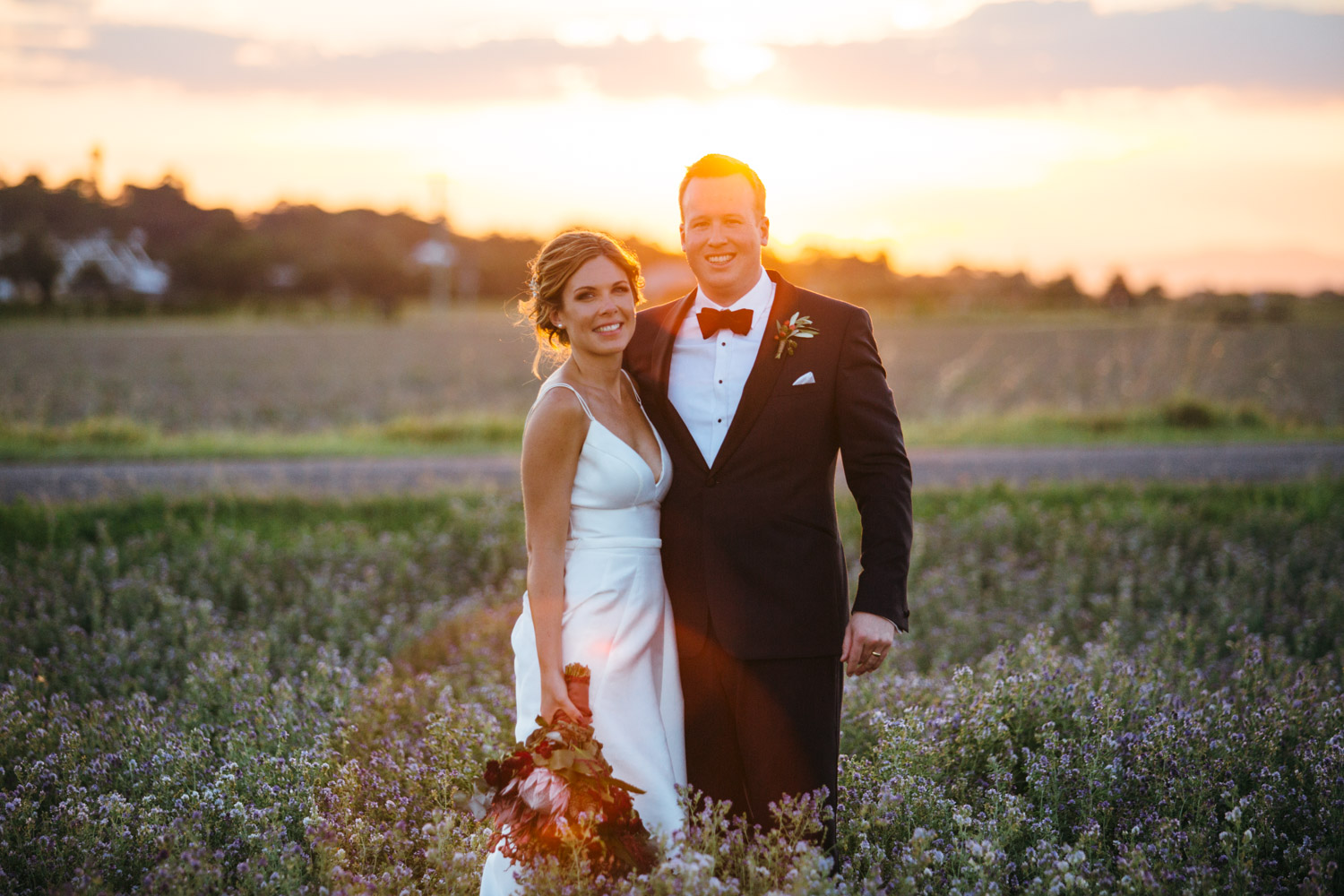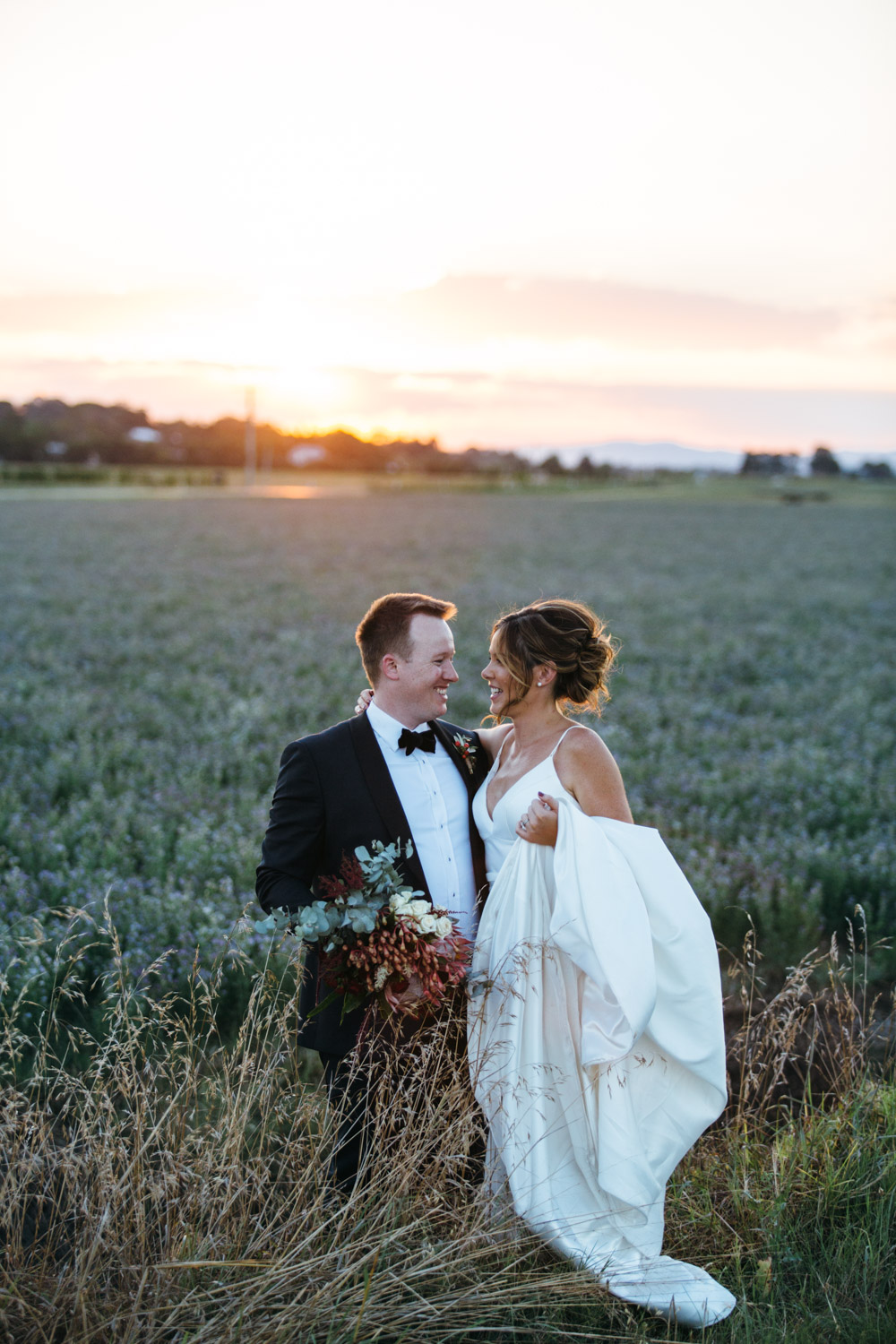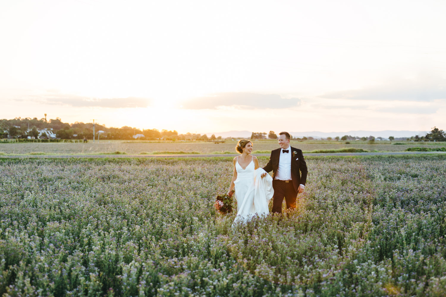 Once ready, the bridal party made their way to Immaculate Conception Church in the nearby town of Morpeth for Danielle and Ben’s nuptials. Following some family photographs, we stopped by the local pub for a cool beverage, and then returned for some wedding photographs at Wallalong House. During the evening meal, Danielle, Ben and I ducked off for a quick sunset shoot in the lavender field I found earlier in the day, and I’m delighted that we did – the setting sun was beautiful.