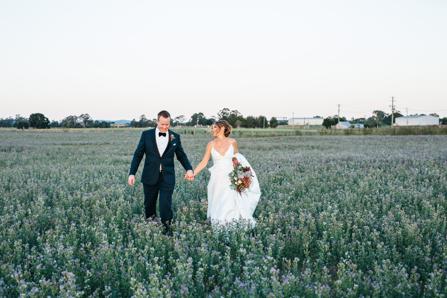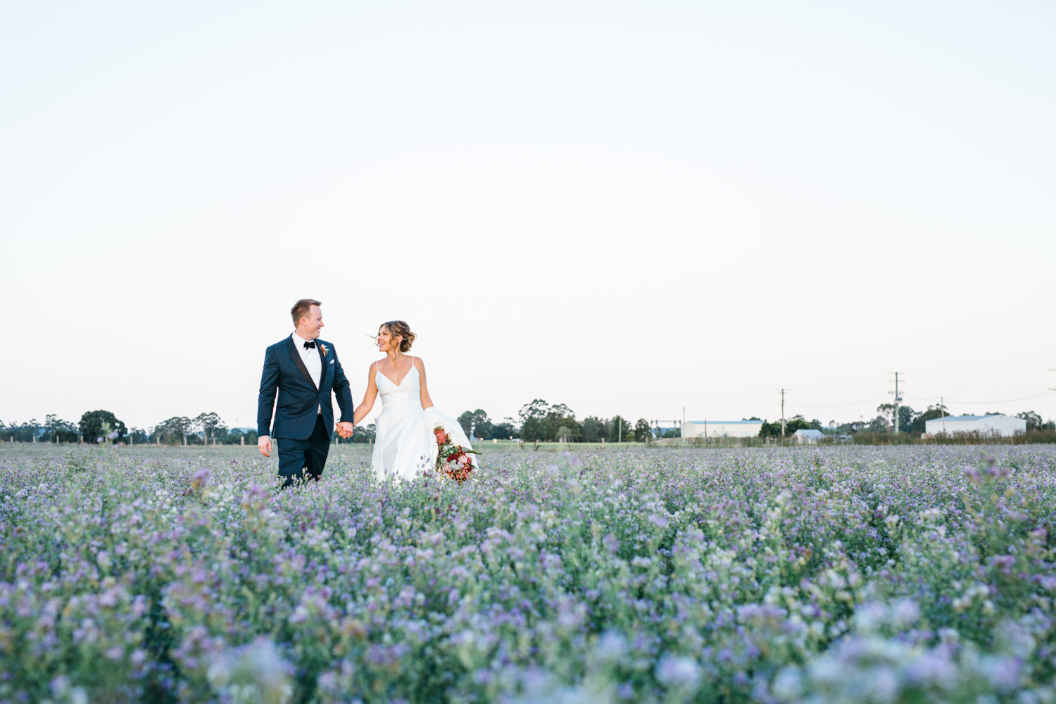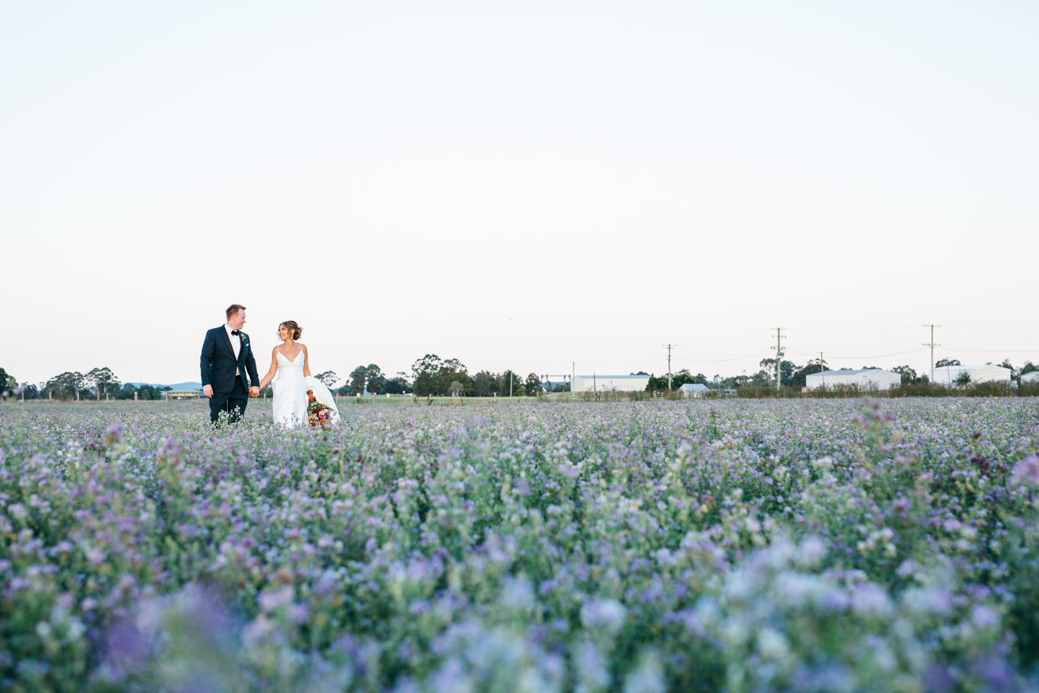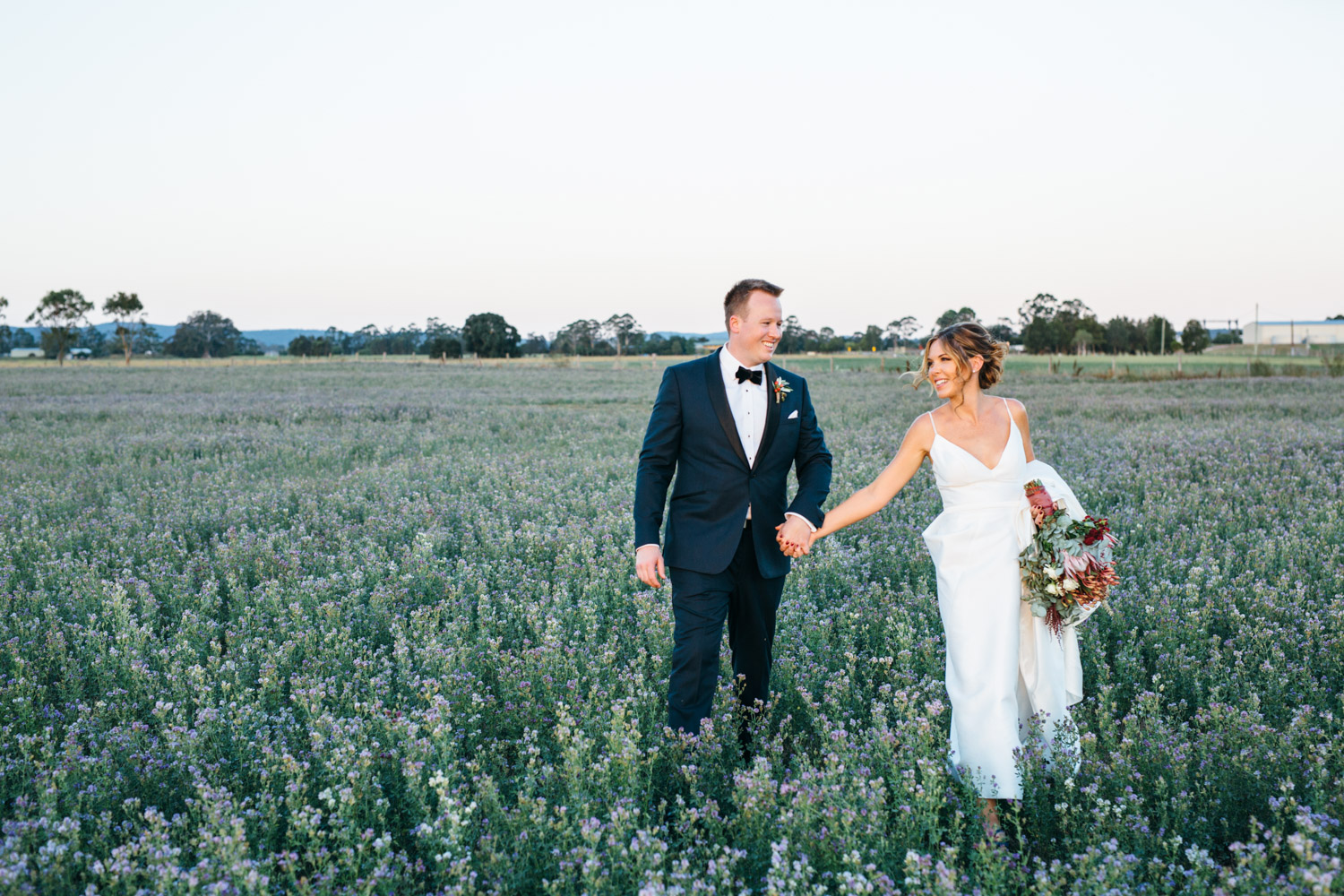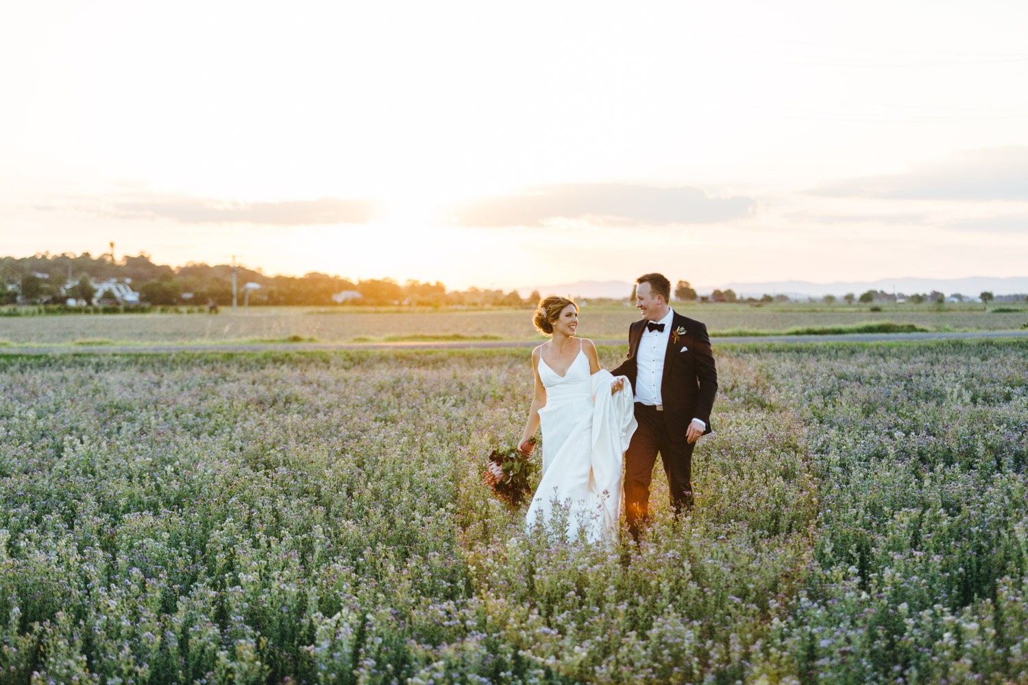 Once ready, the bridal party made their way to Immaculate Conception Church in the nearby town of Morpeth for Danielle and Ben’s nuptials. Following some family photographs, we stopped by the local pub for a cool beverage, and then returned for some wedding photographs at Wallalong House. During the evening meal, Danielle, Ben and I ducked off for a quick sunset shoot in the lavender field I found earlier in the day, and I’m delighted that we did – the setting sun was beautiful.