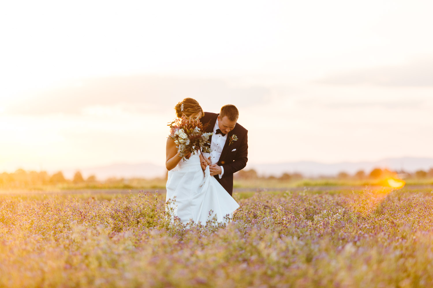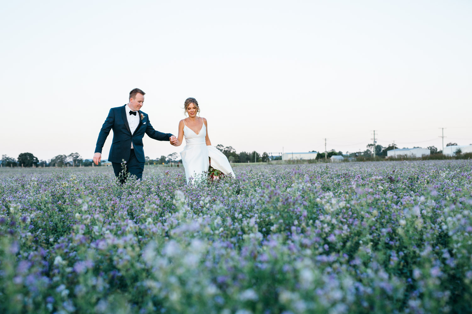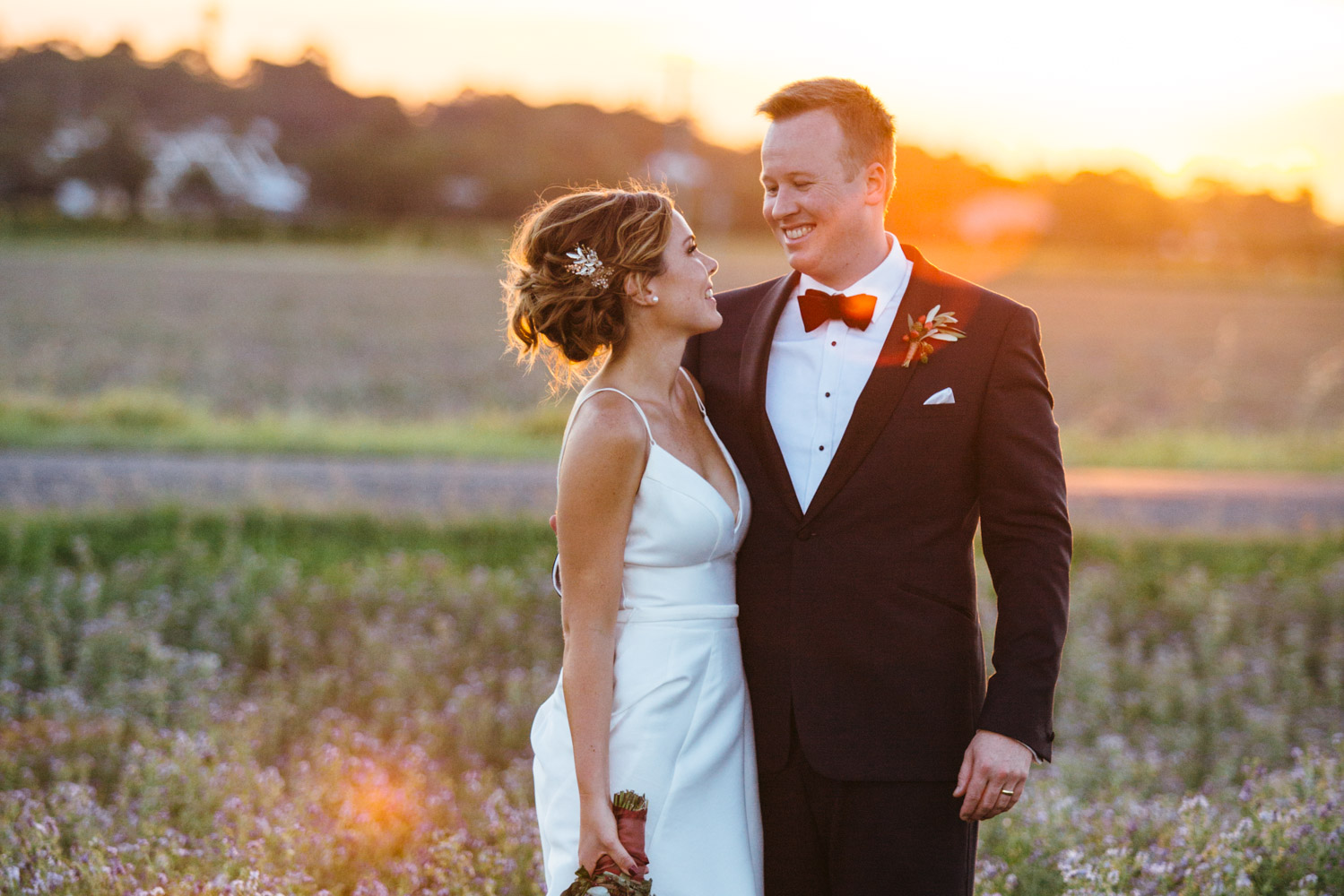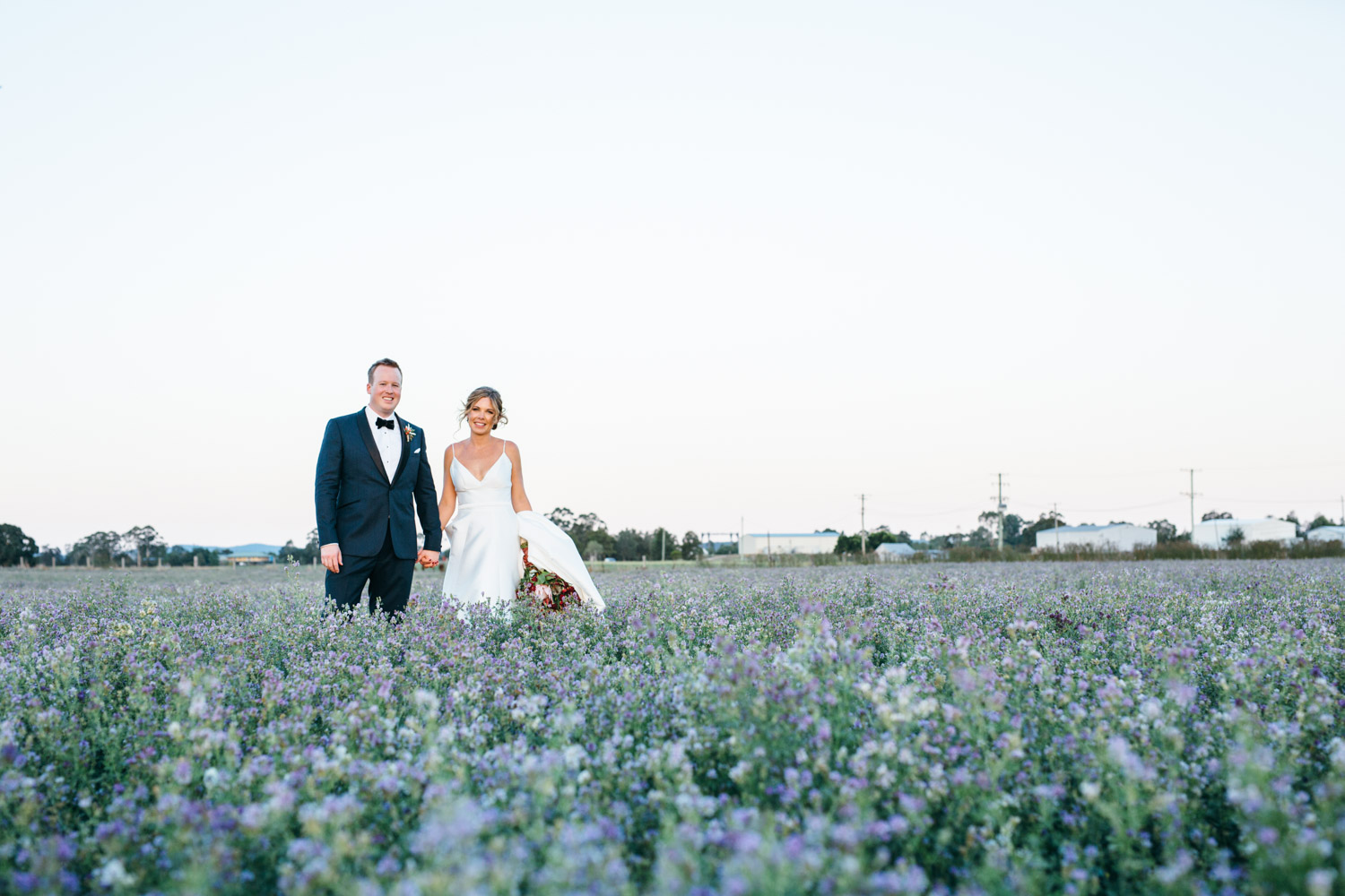 Once ready, the bridal party made their way to Immaculate Conception Church in the nearby town of Morpeth for Danielle and Ben’s nuptials. Following some family photographs, we stopped by the local pub for a cool beverage, and then returned for some wedding photographs at Wallalong House. During the evening meal, Danielle, Ben and I ducked off for a quick sunset shoot in the lavender field I found earlier in the day, and I’m delighted that we did – the setting sun was beautiful.