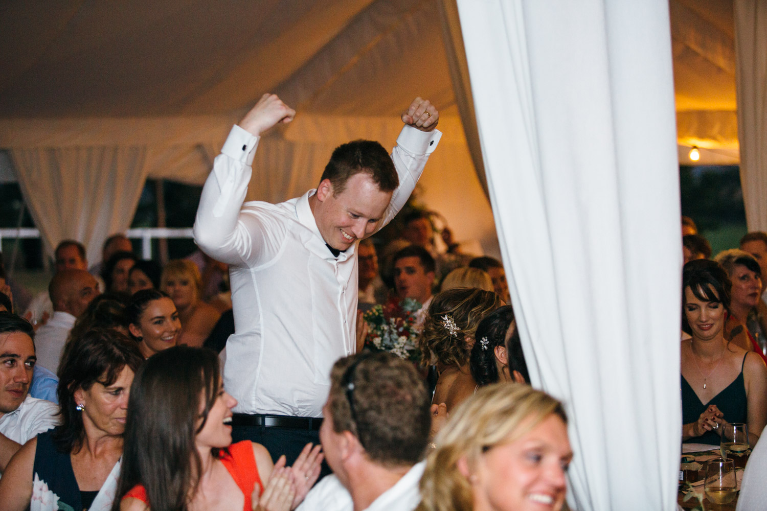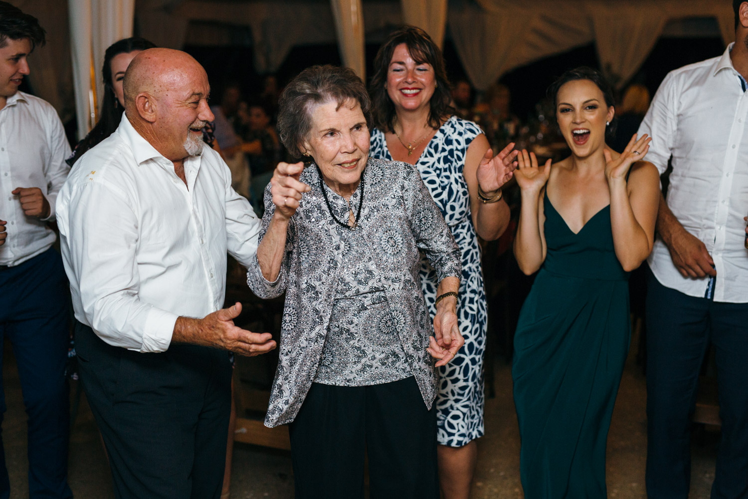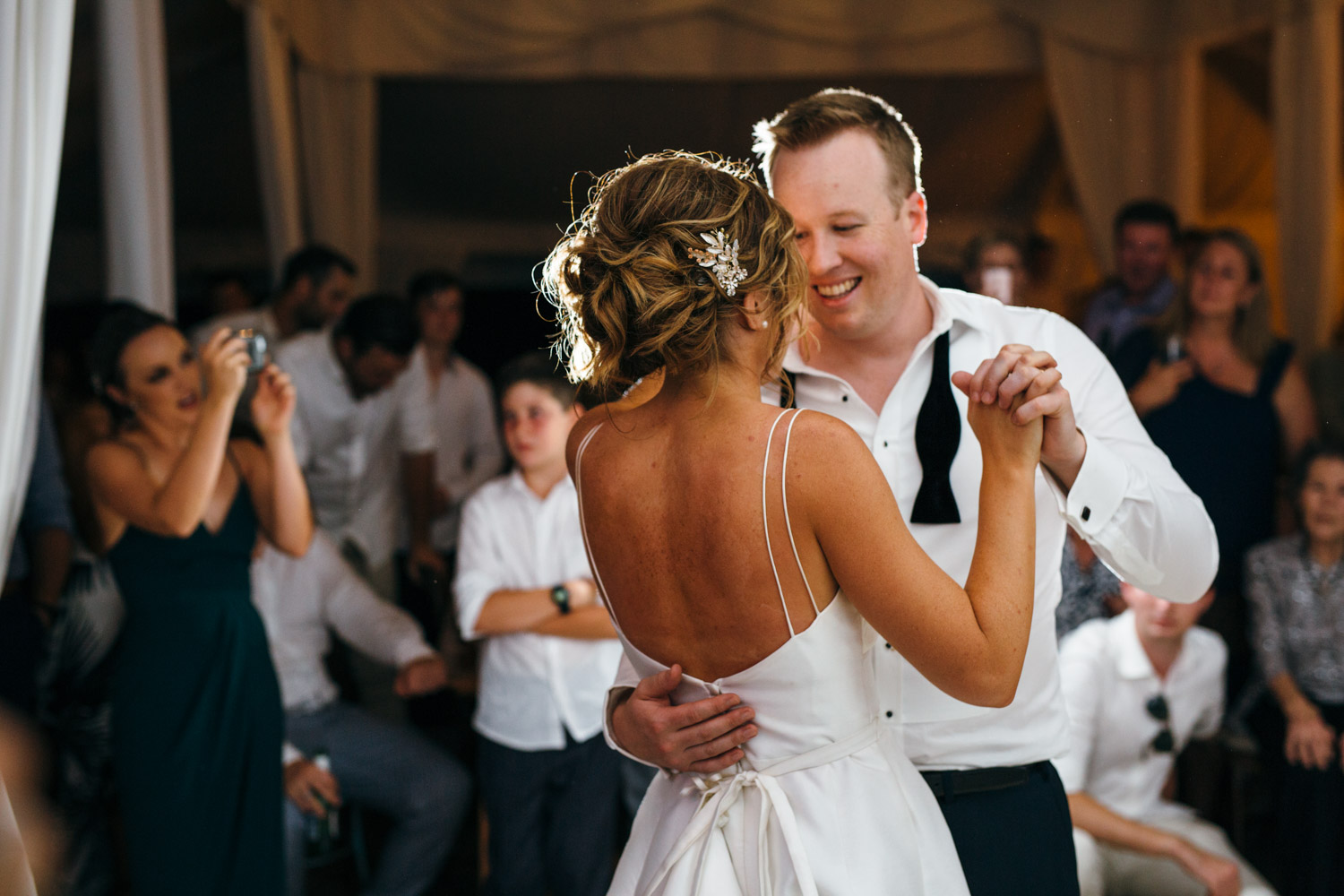 Aimee and JF’s Hunter Valley wedding ended with the couple’s first dance under festoon lights before the dancefloor opened for everyone else. Aimee and JF performed their rehearsed jive featuring a great lift (see some images below).