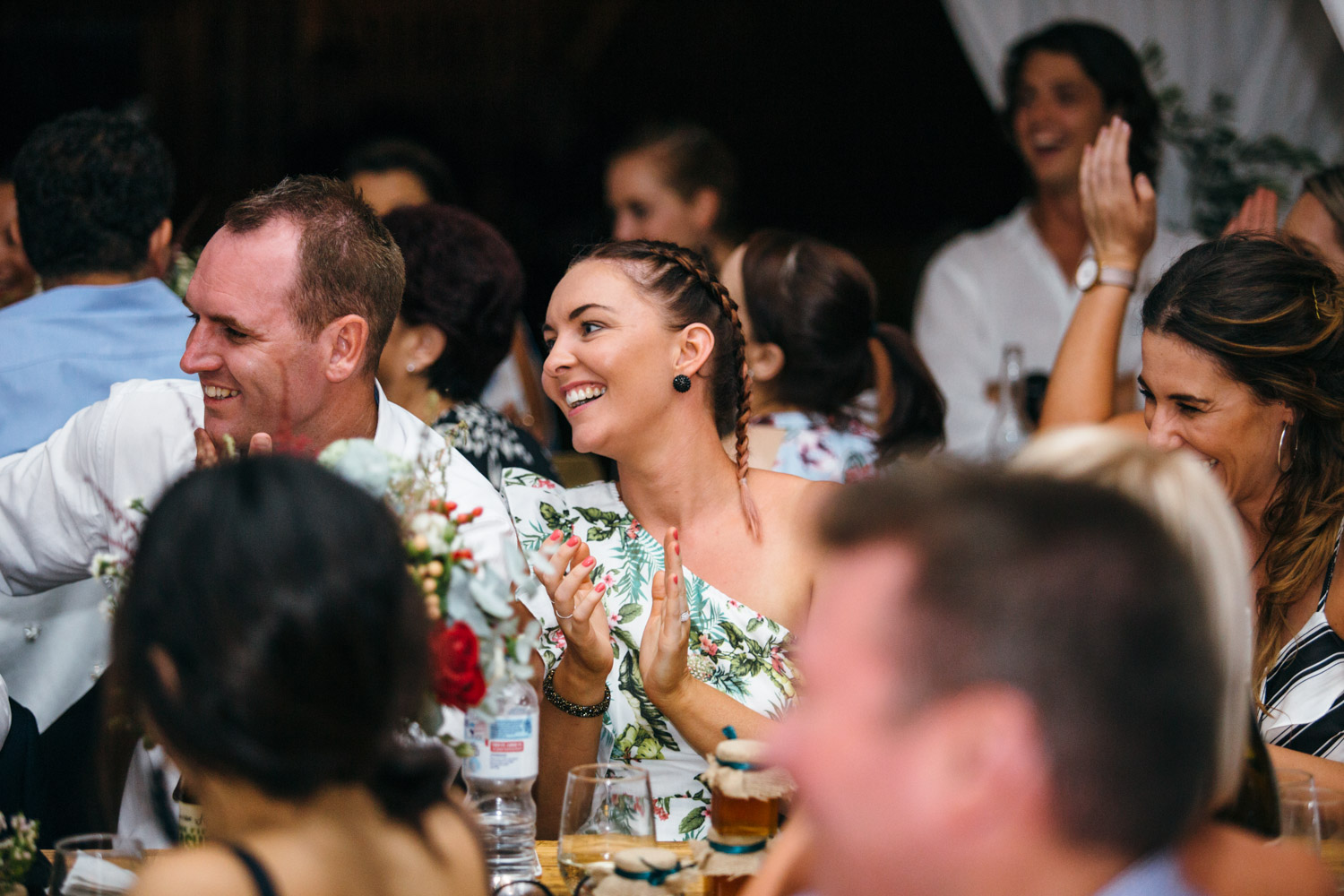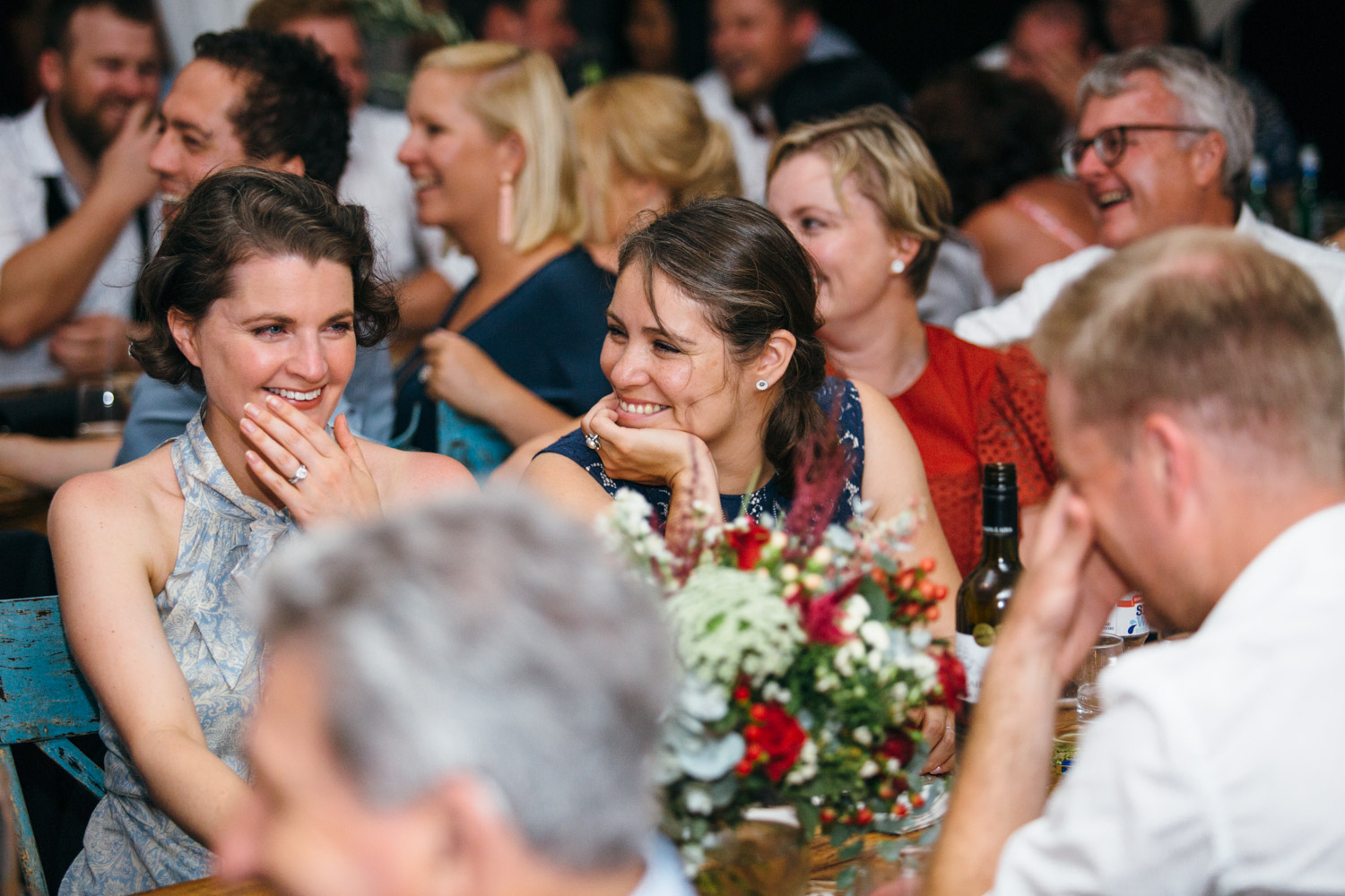 Interestingly, the reception for Jes and Ben’s Fernhill Estate wedding was held about 1.5 kilometres away – still on the property, in a converted hay shed. To keep warm there was a large fire pit out the front, and the candle-lit reception kept a romantic atmosphere.